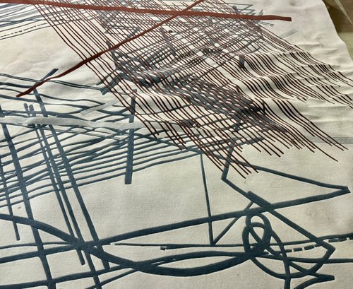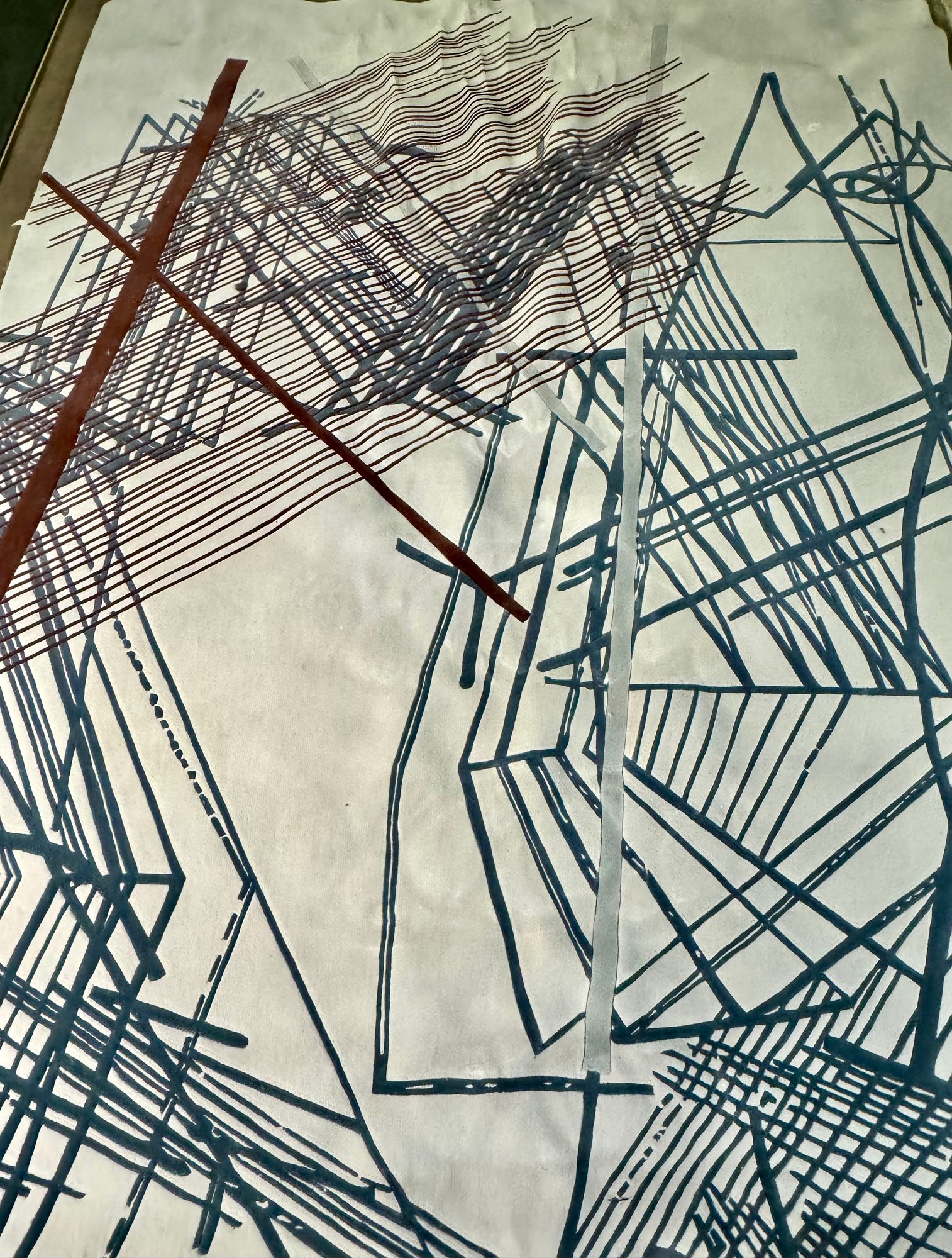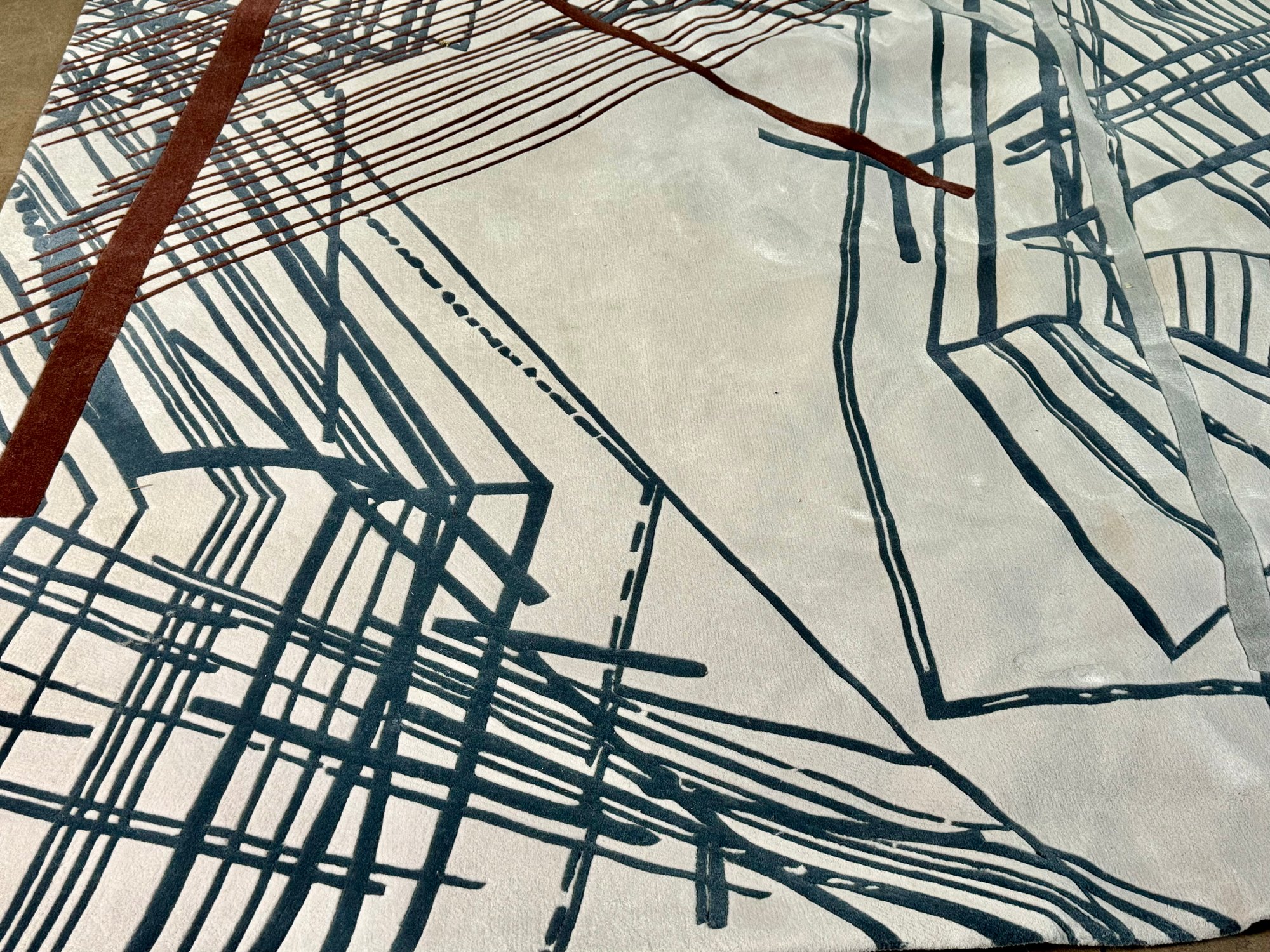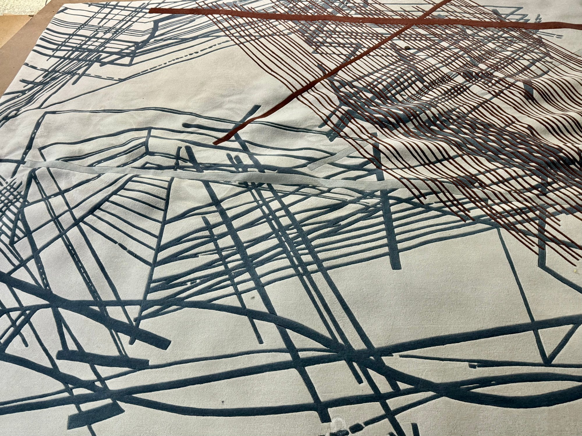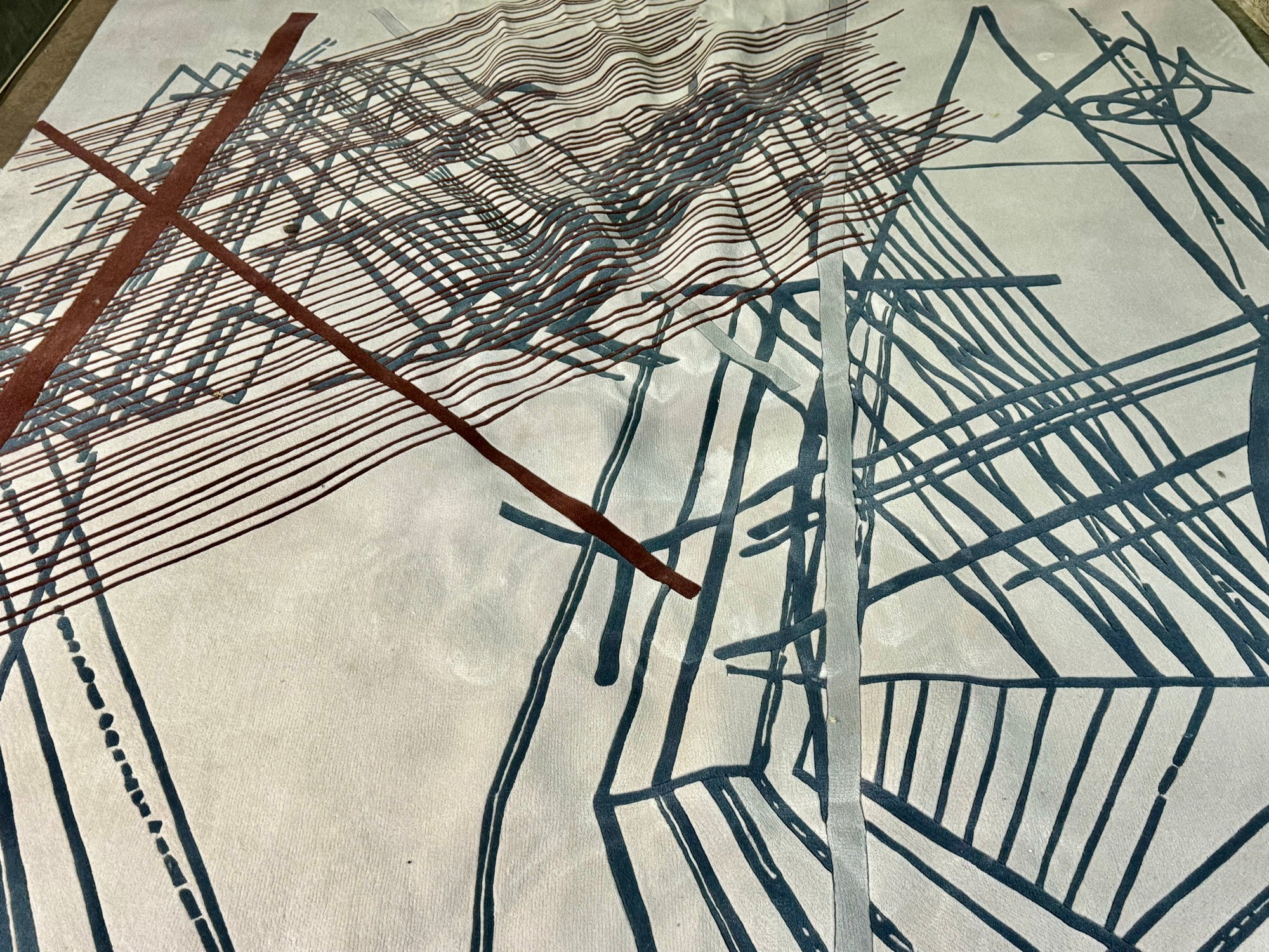 This rug is made from New Zealand Wool and measures 96”w by 120”l.