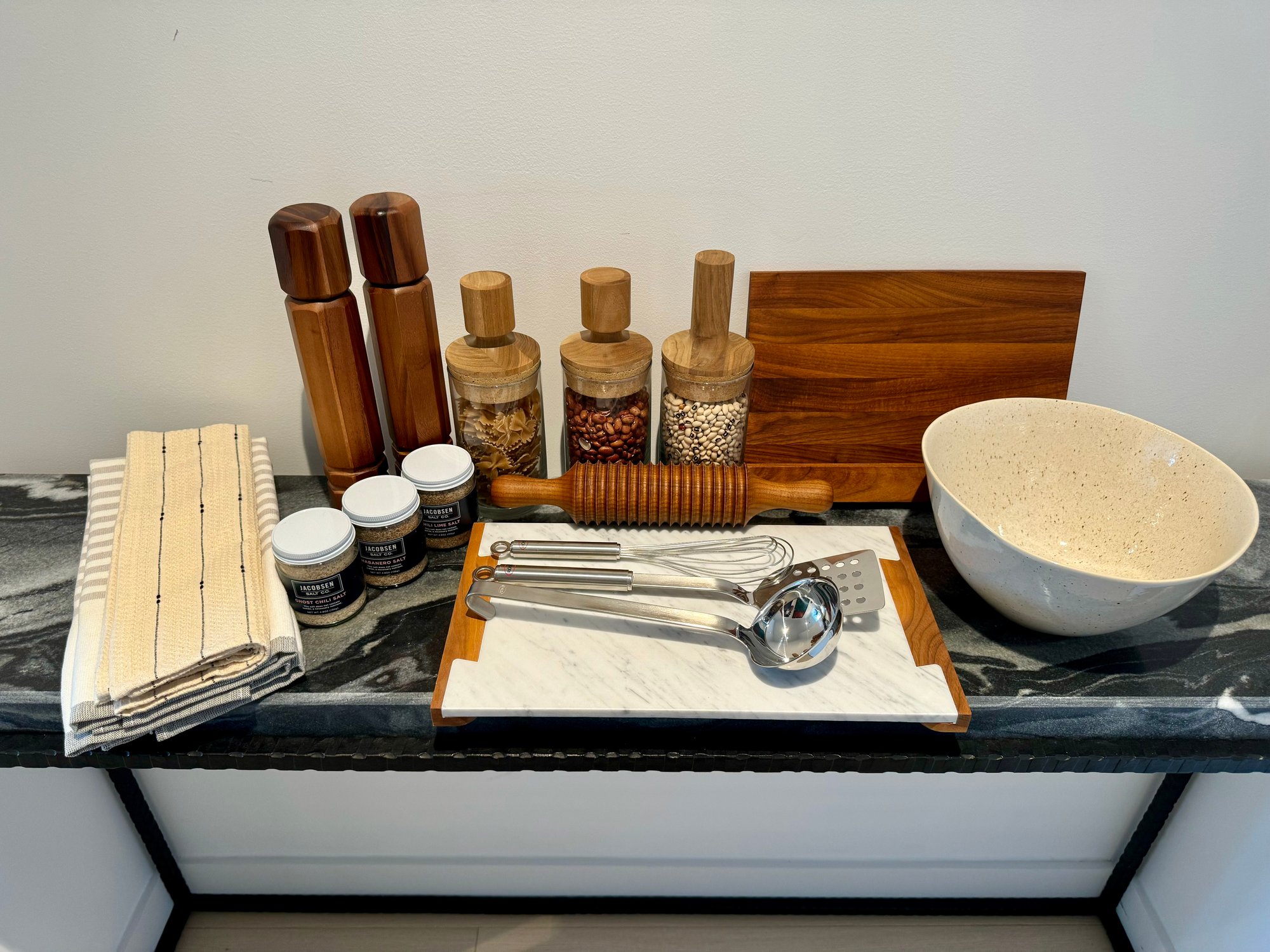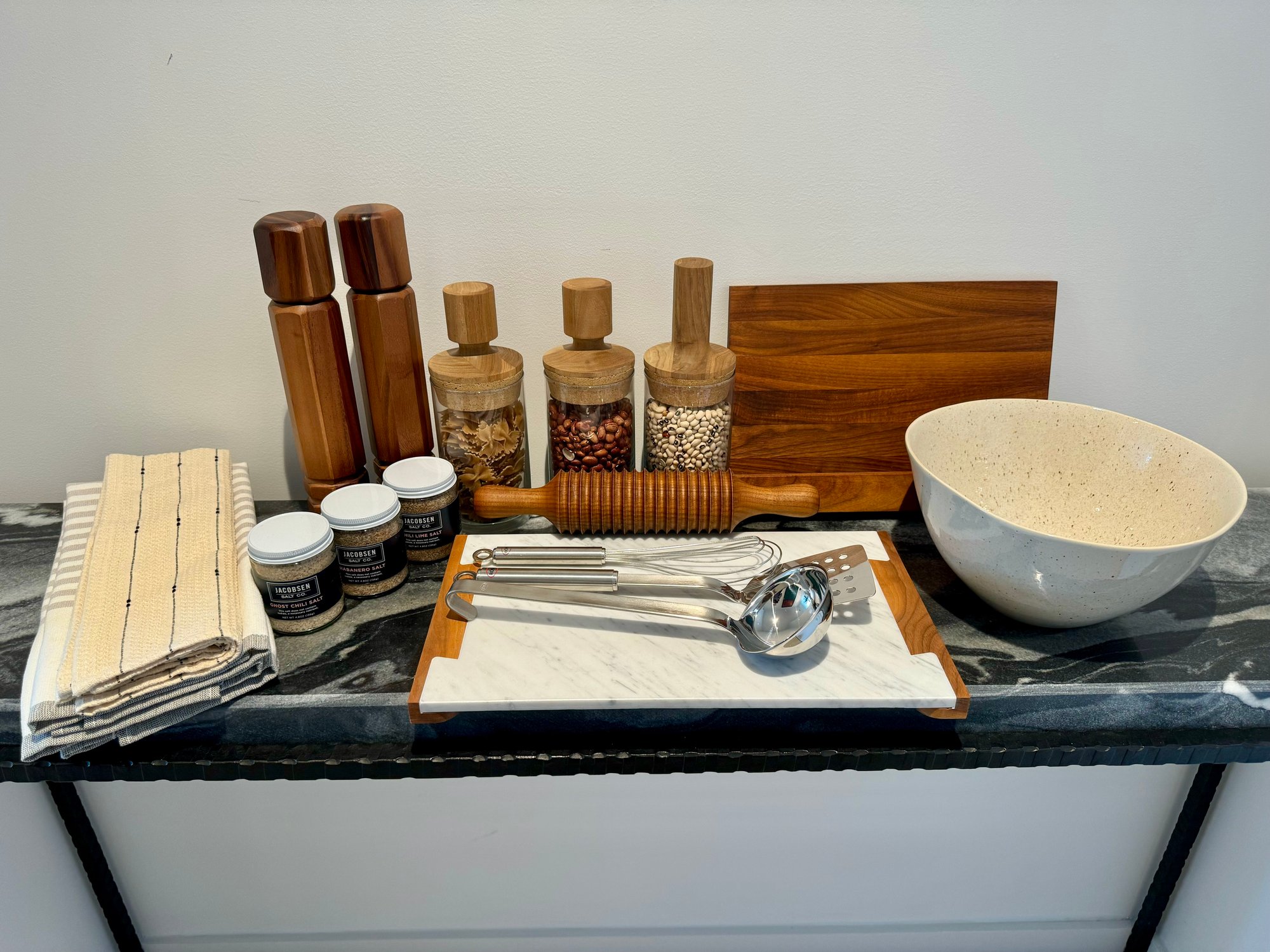 - A wood & marble cheeseboard that measures 16” x 9”