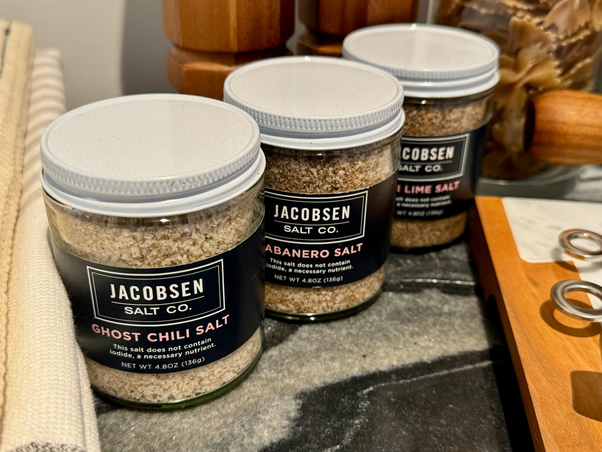 - Set of three Jacobsen flavored salts - Ghost Chili, Chile Lime, Habenaro