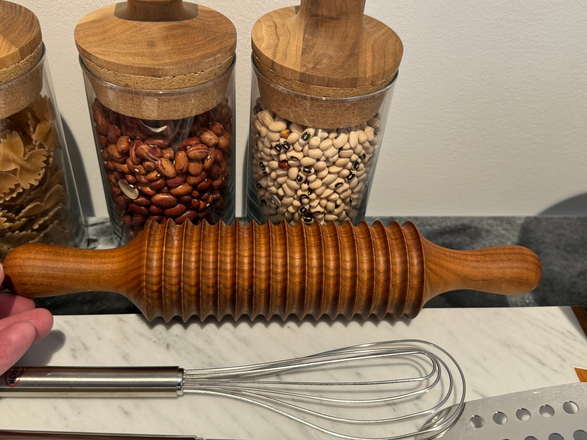 - Wooden baking roller that measures 12.5” long