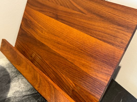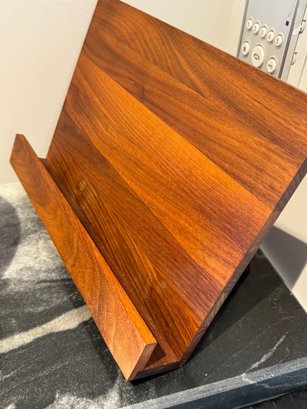 - A wood cookbook holder that measures 12.5” x 9”