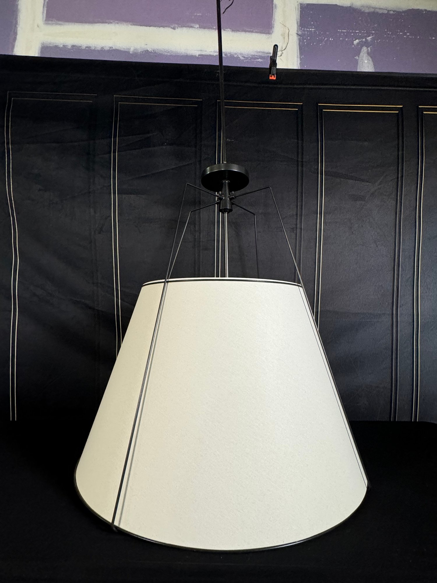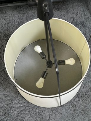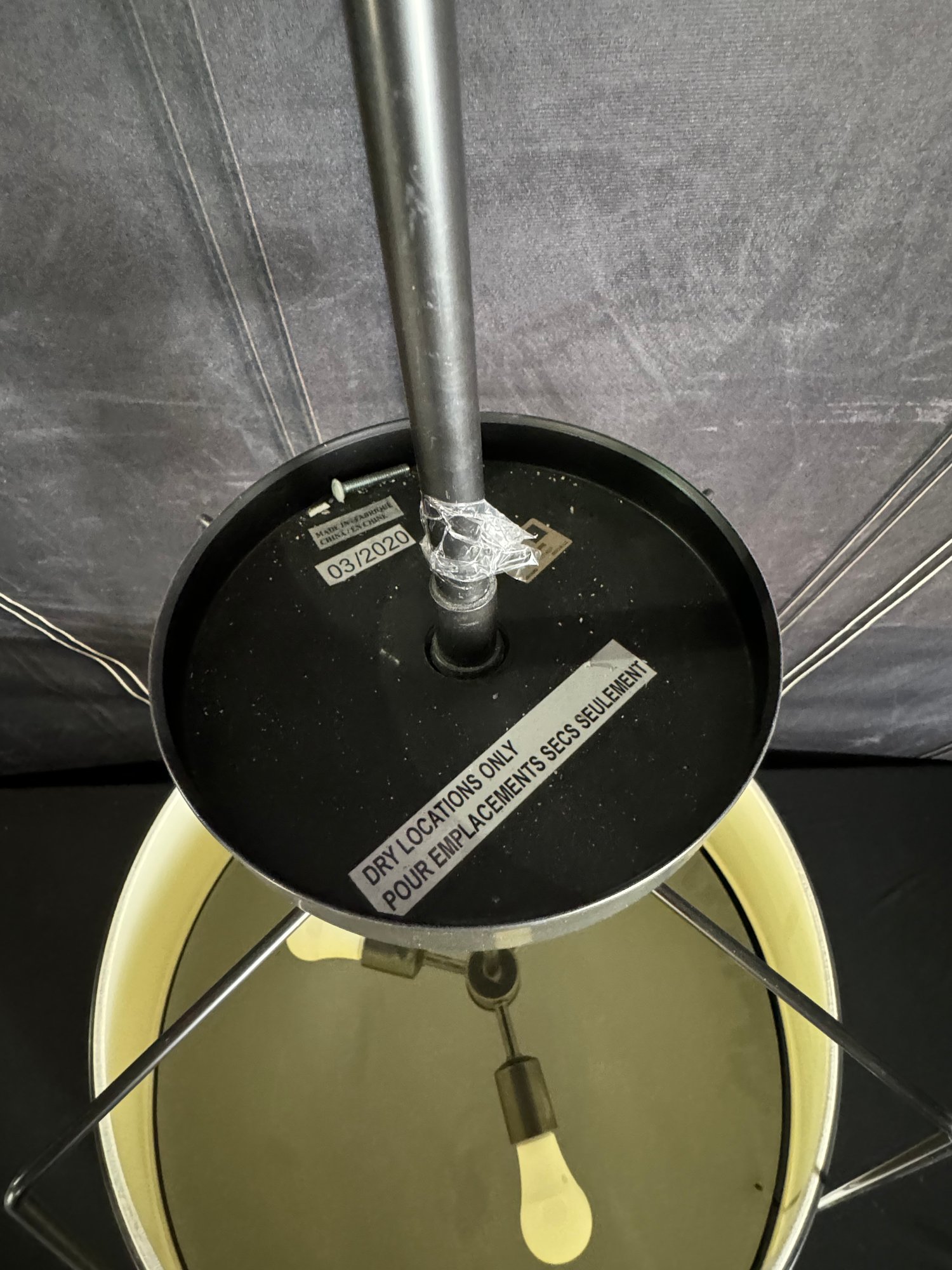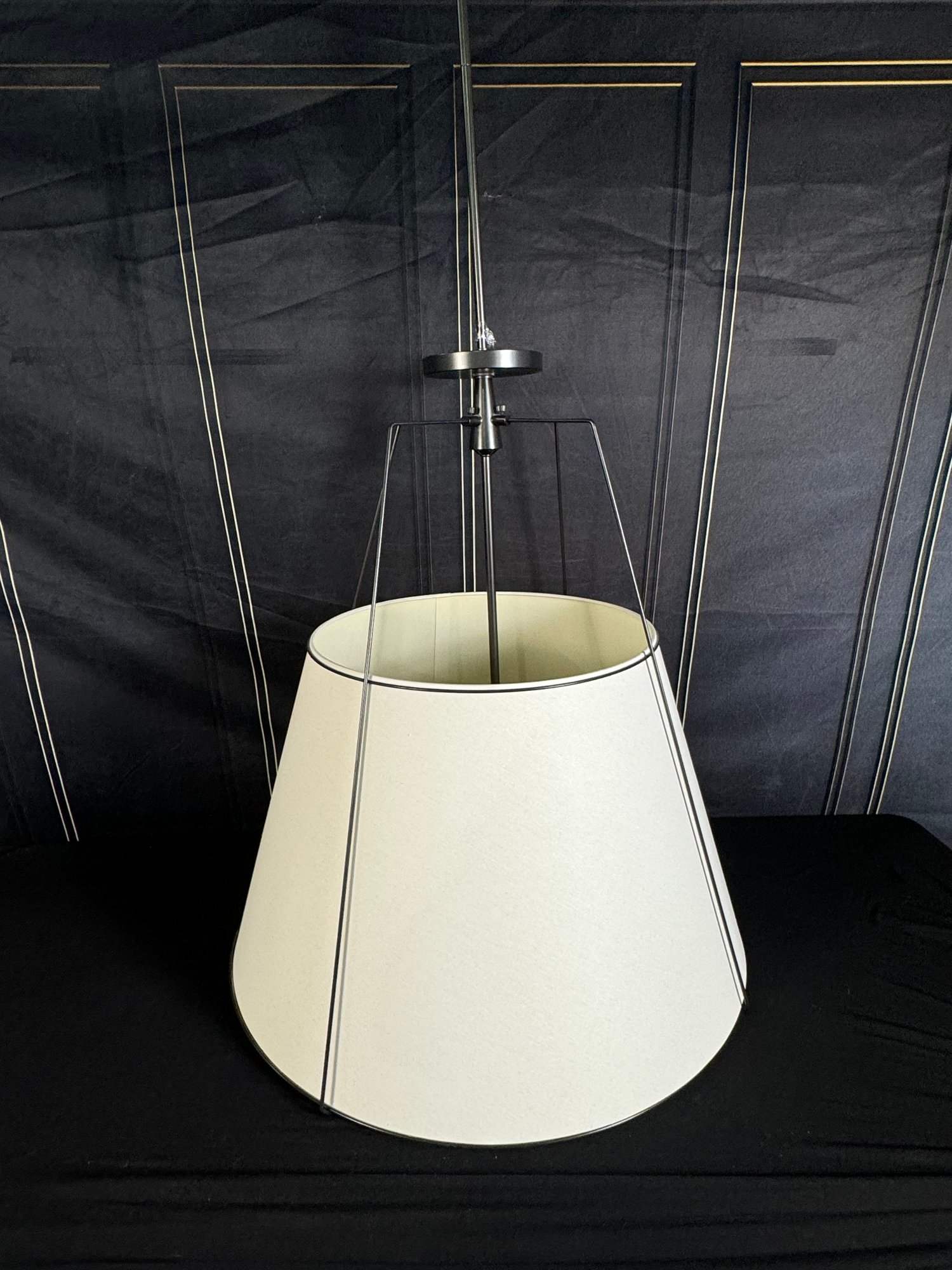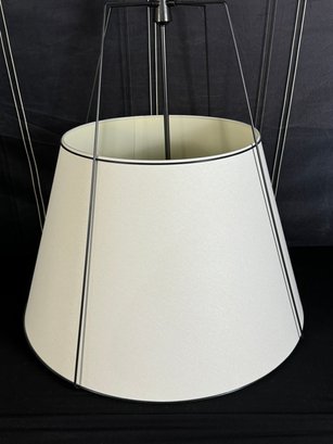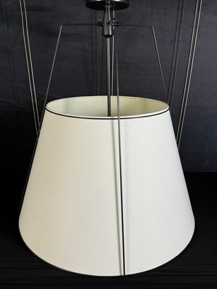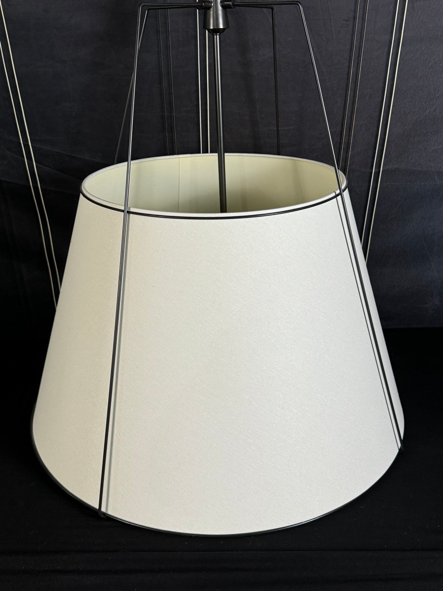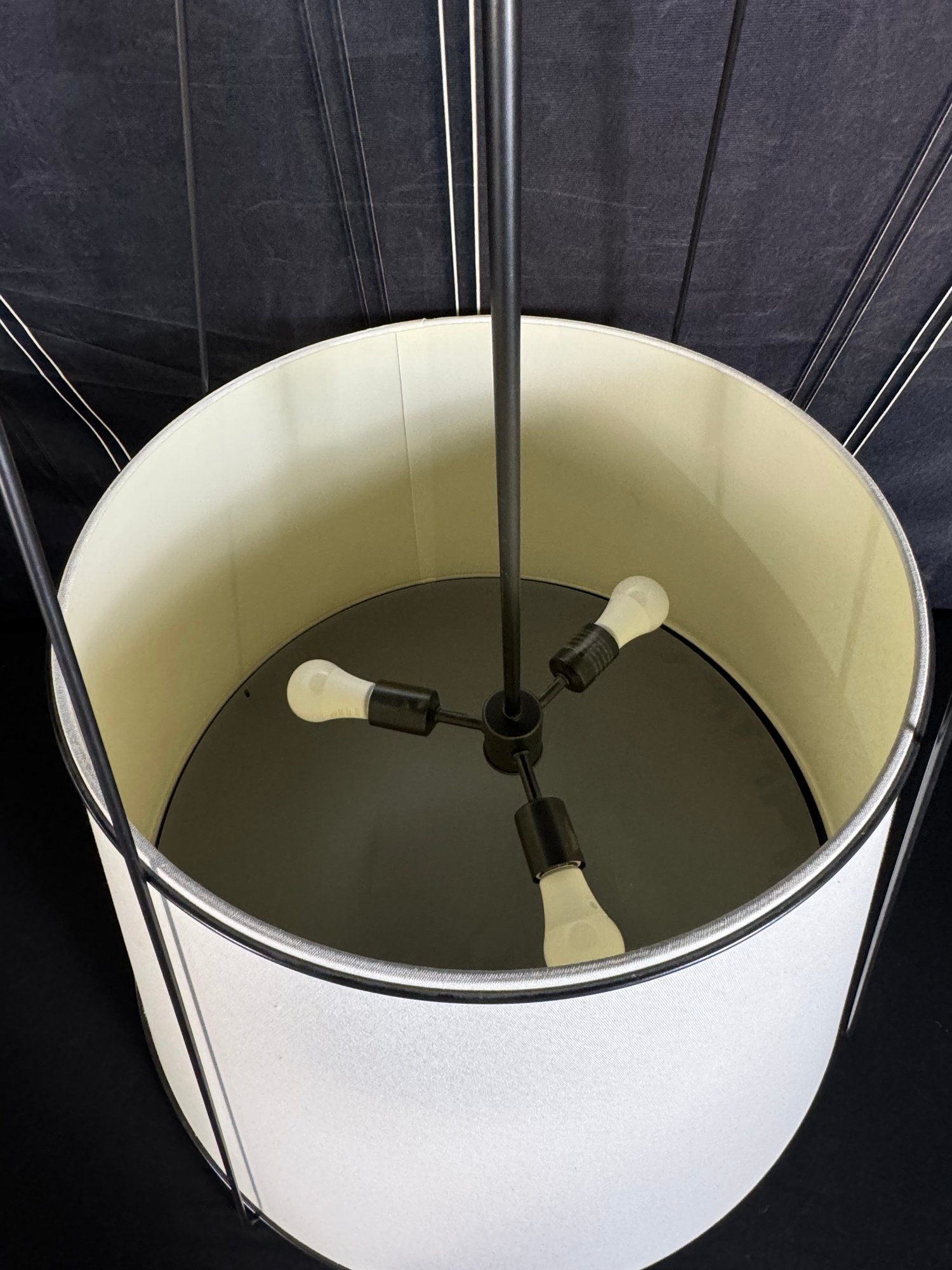 This sizable light was working when removed and measures 28” in diameter at the shade by 60” from the shroud to the bottom.