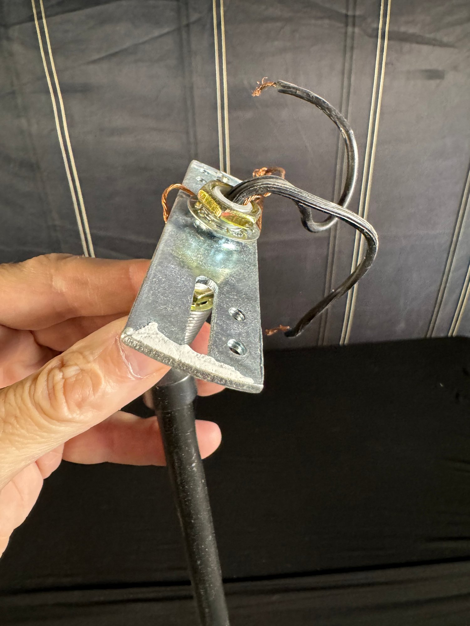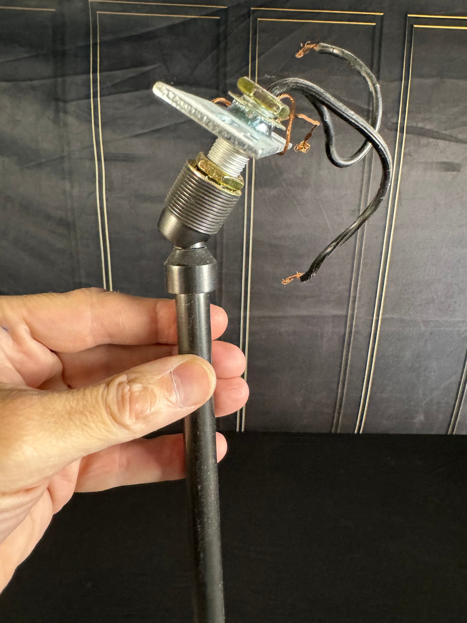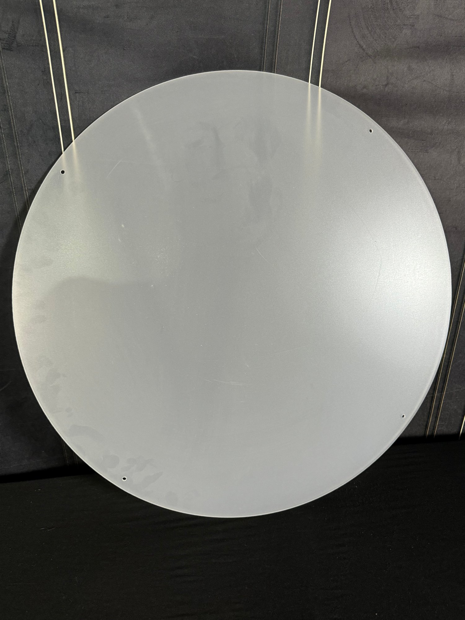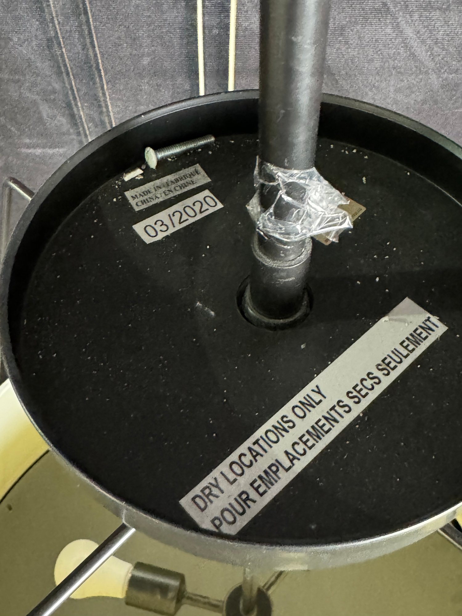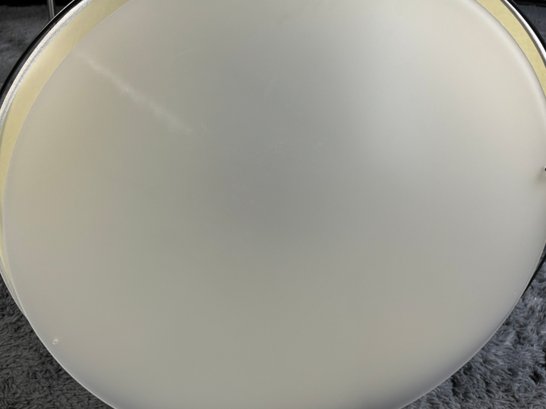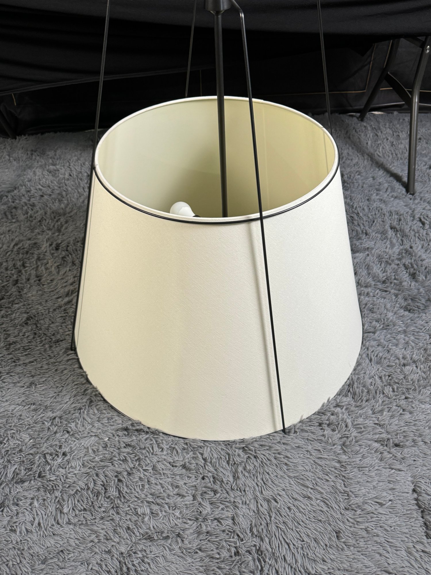 This sizable light was working when removed and measures 28” in diameter at the shade by 60” from the shroud to the bottom.