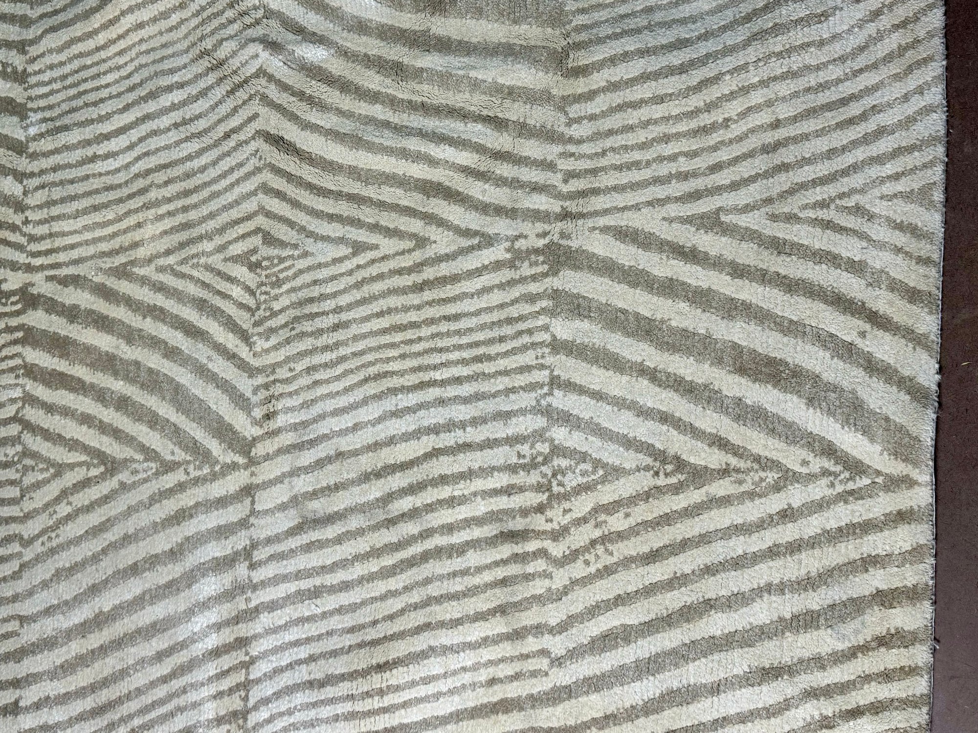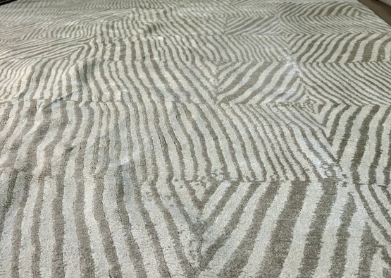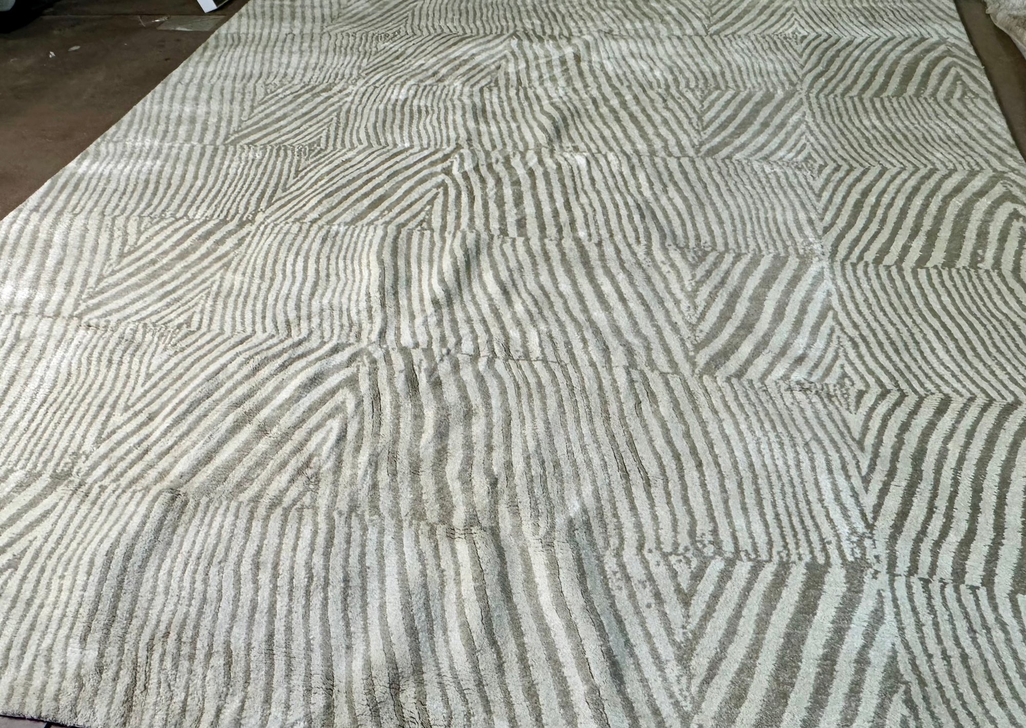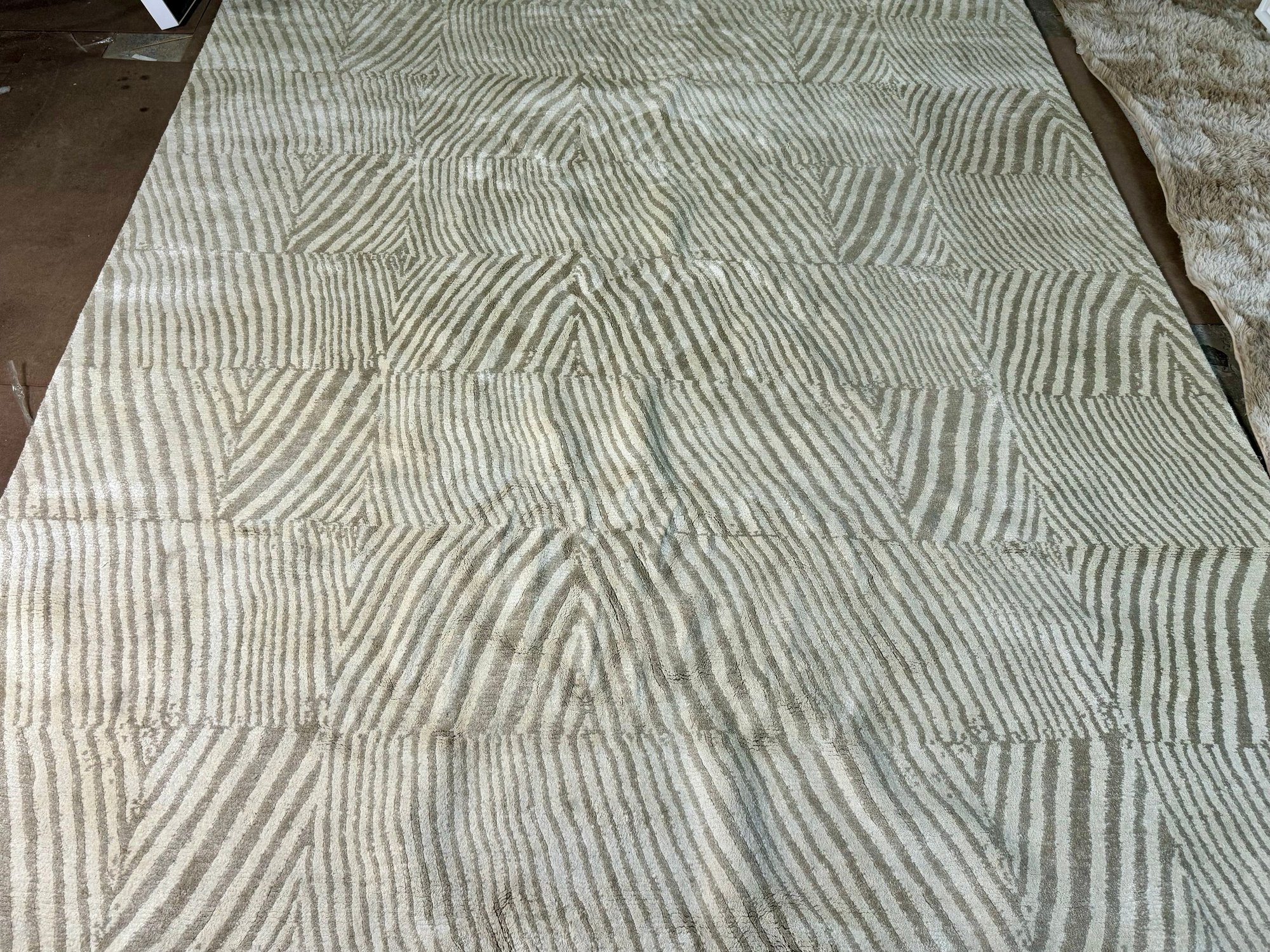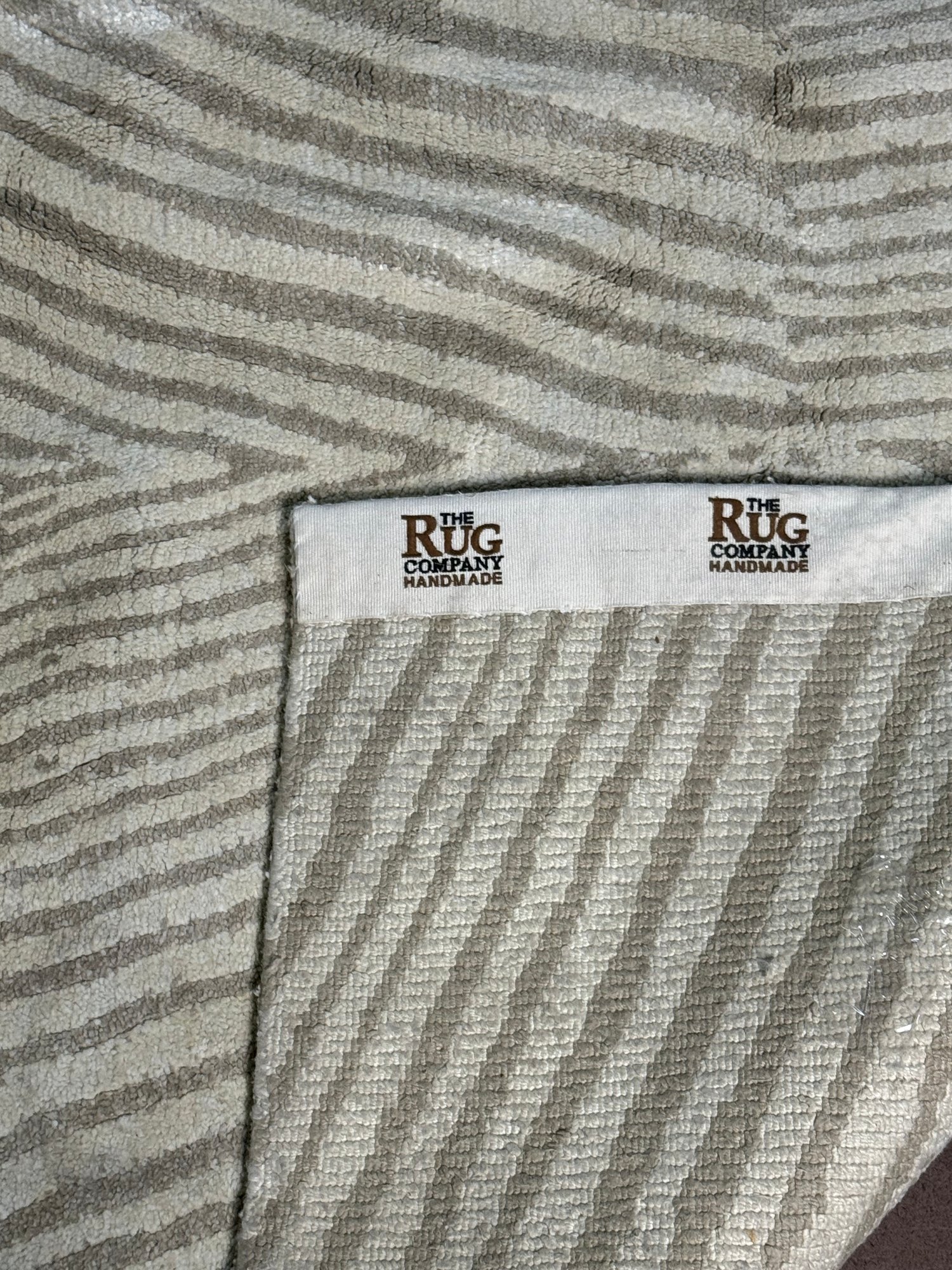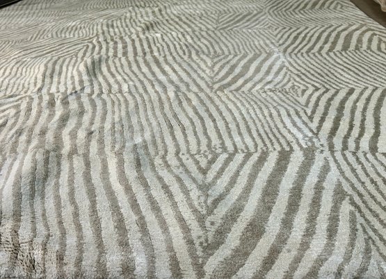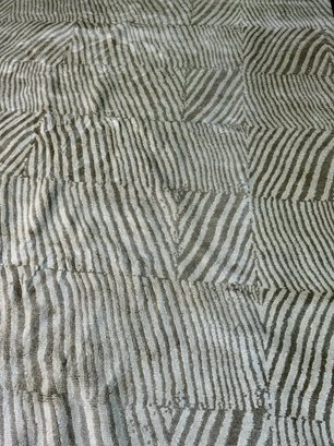 This clean rug measures 96” by 118”.