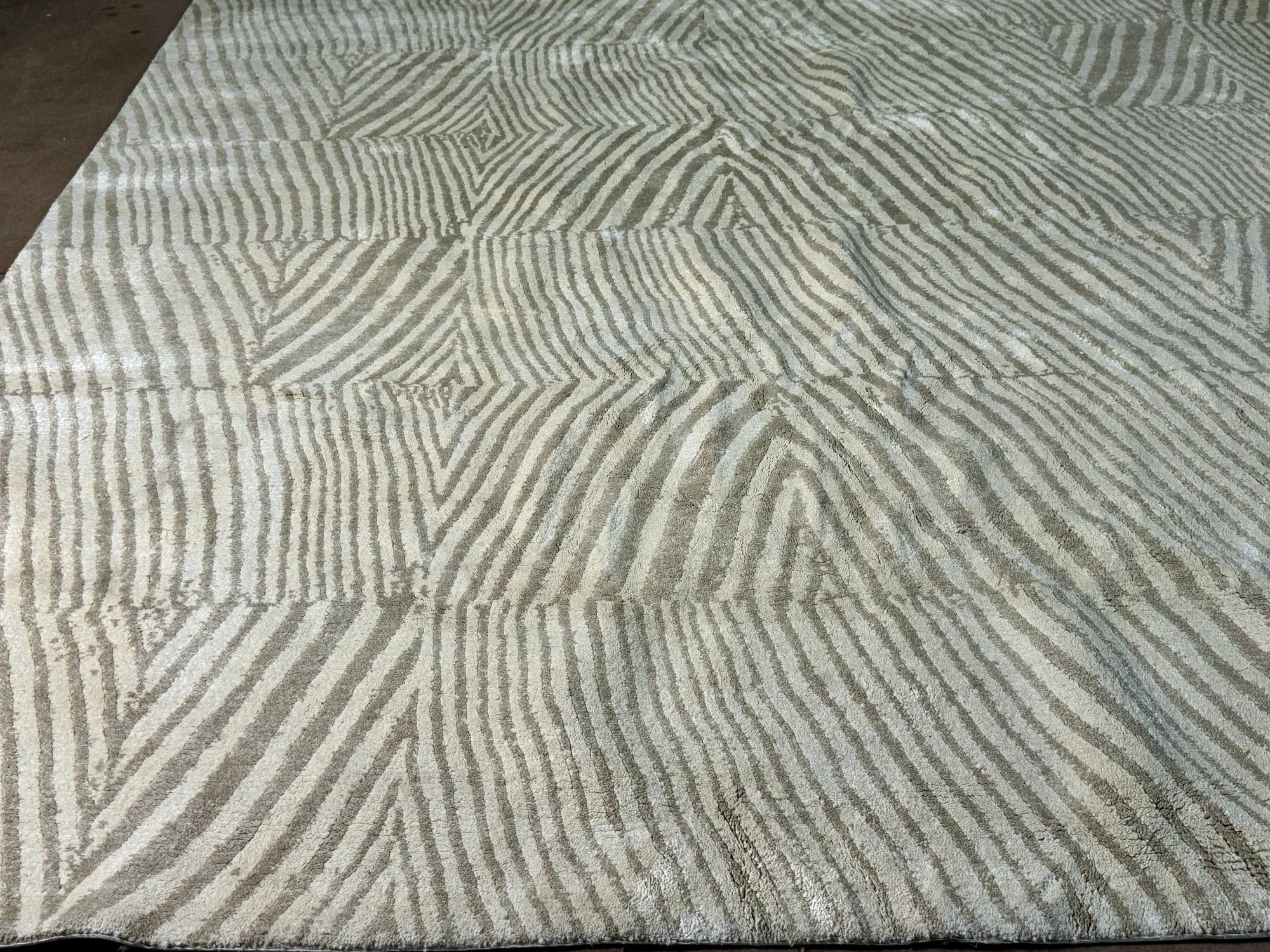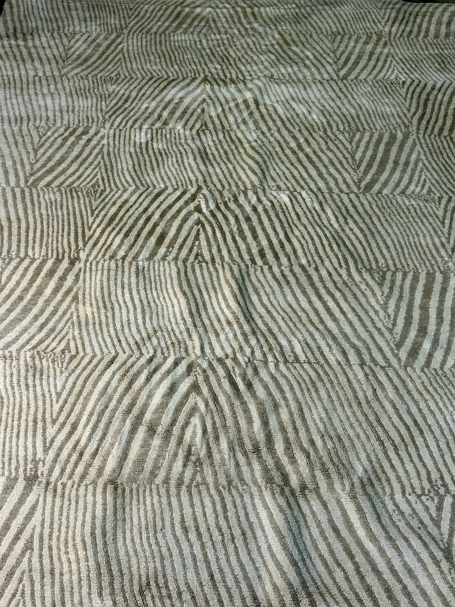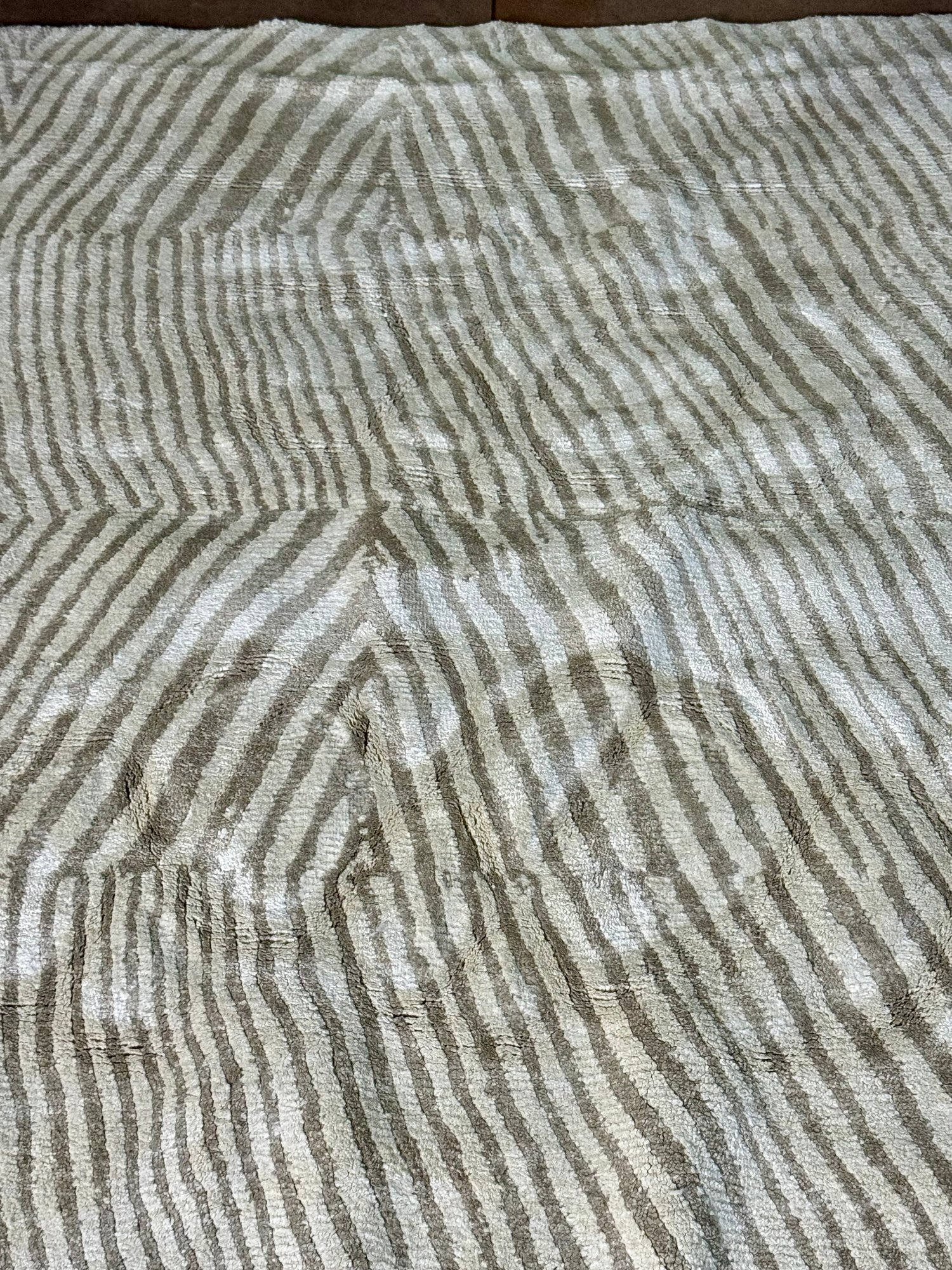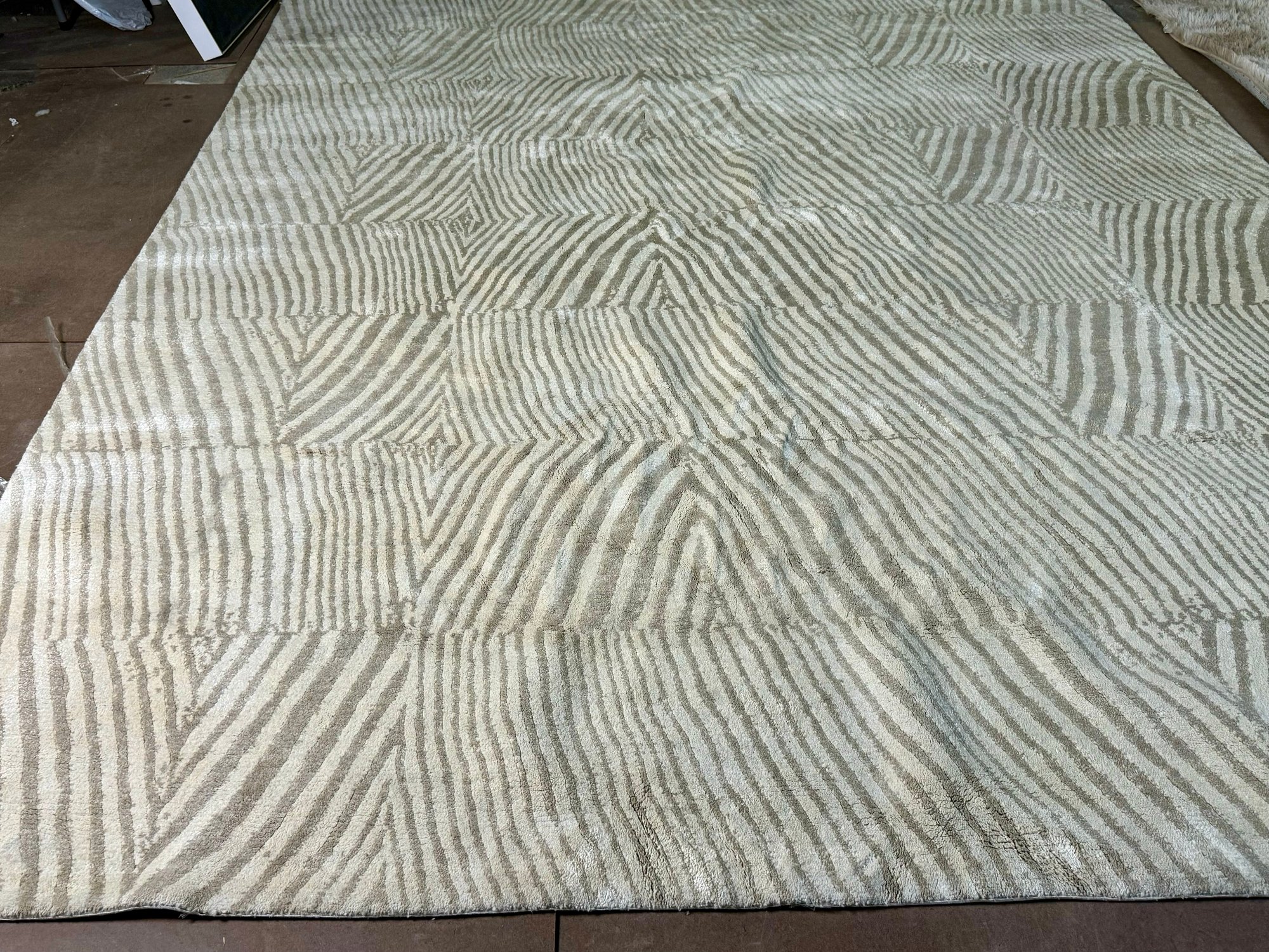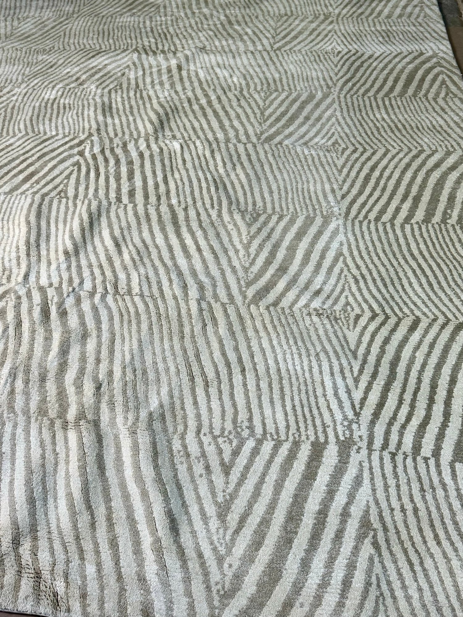 This clean rug measures 96” by 118”.