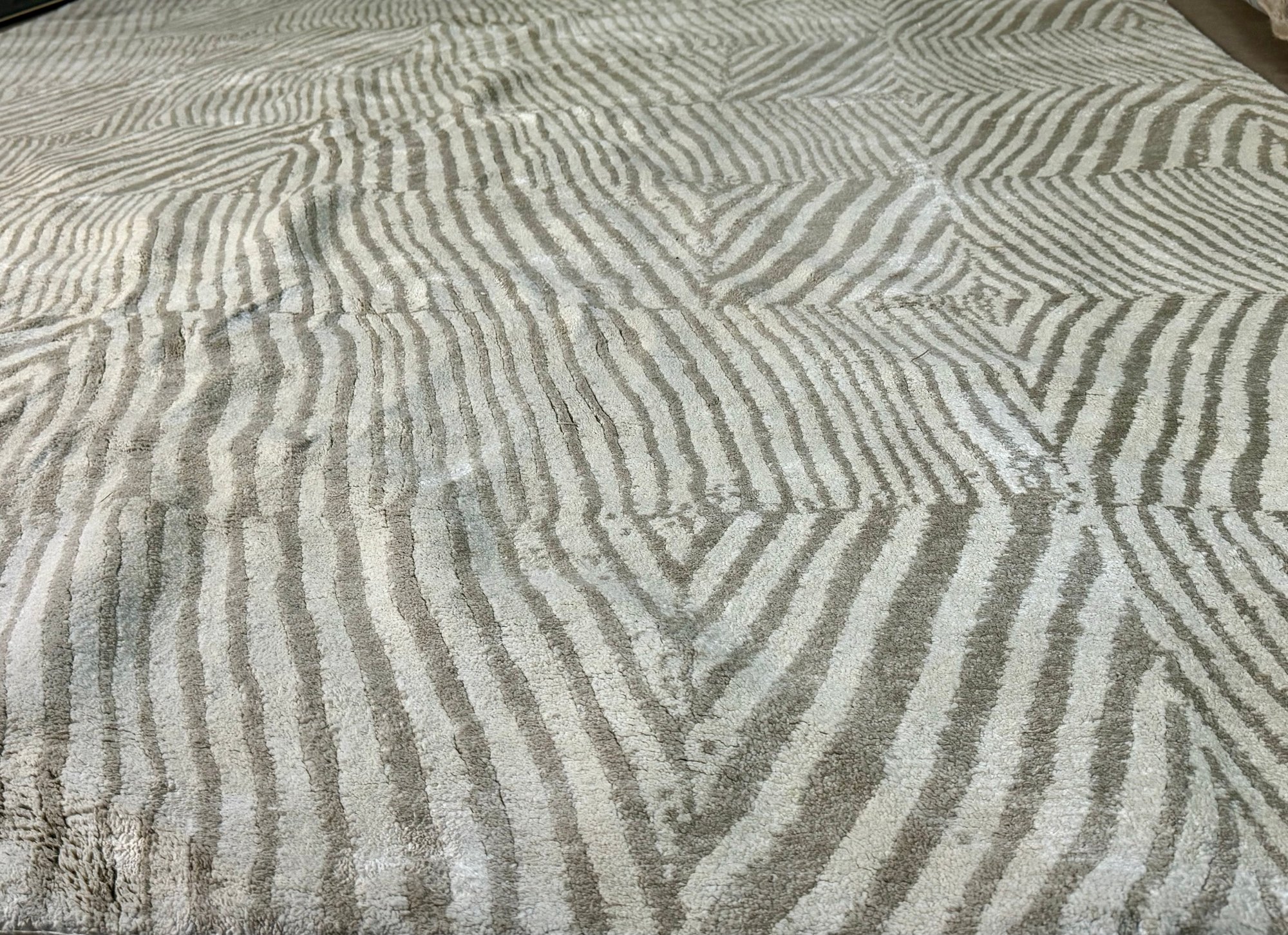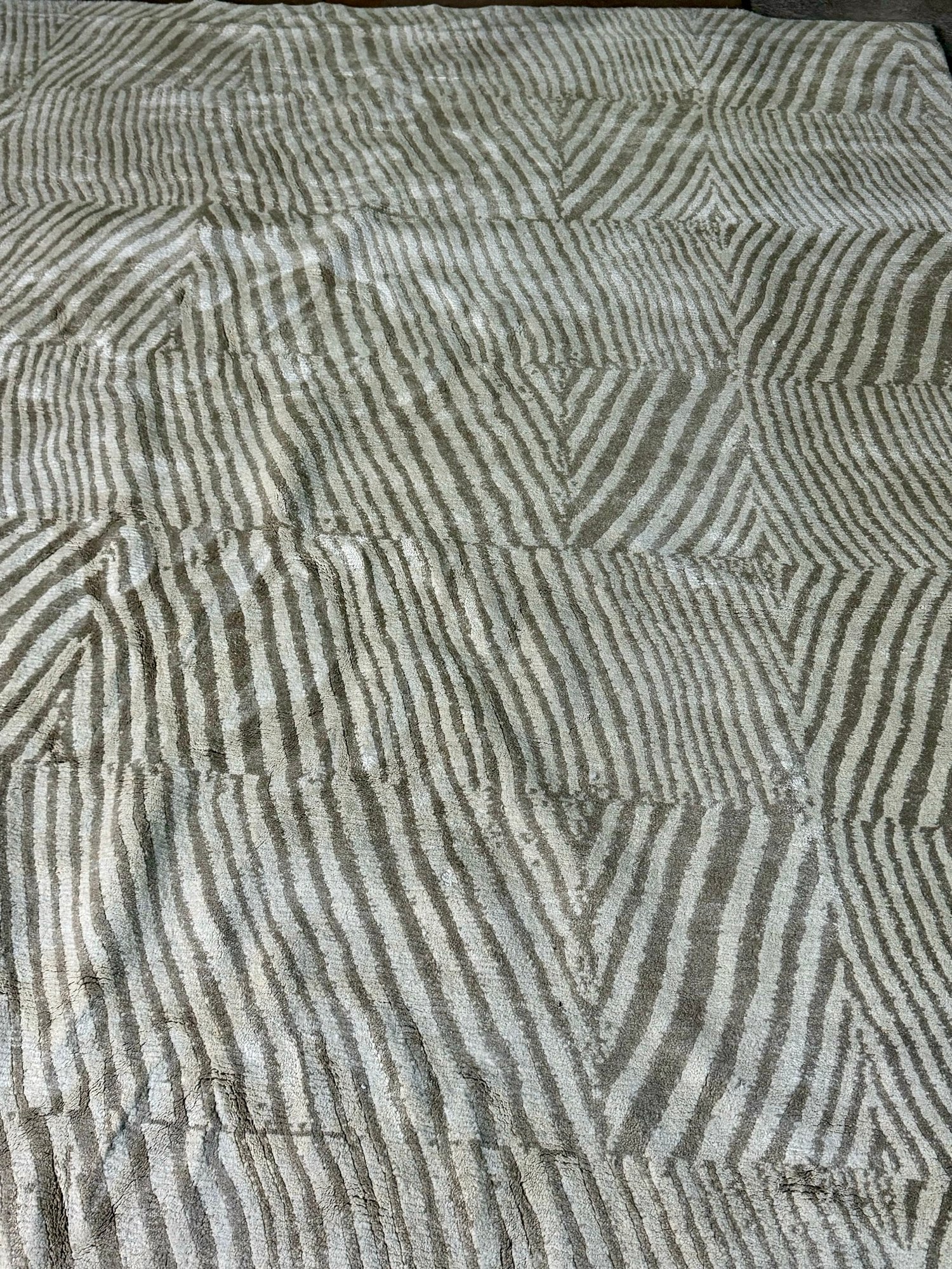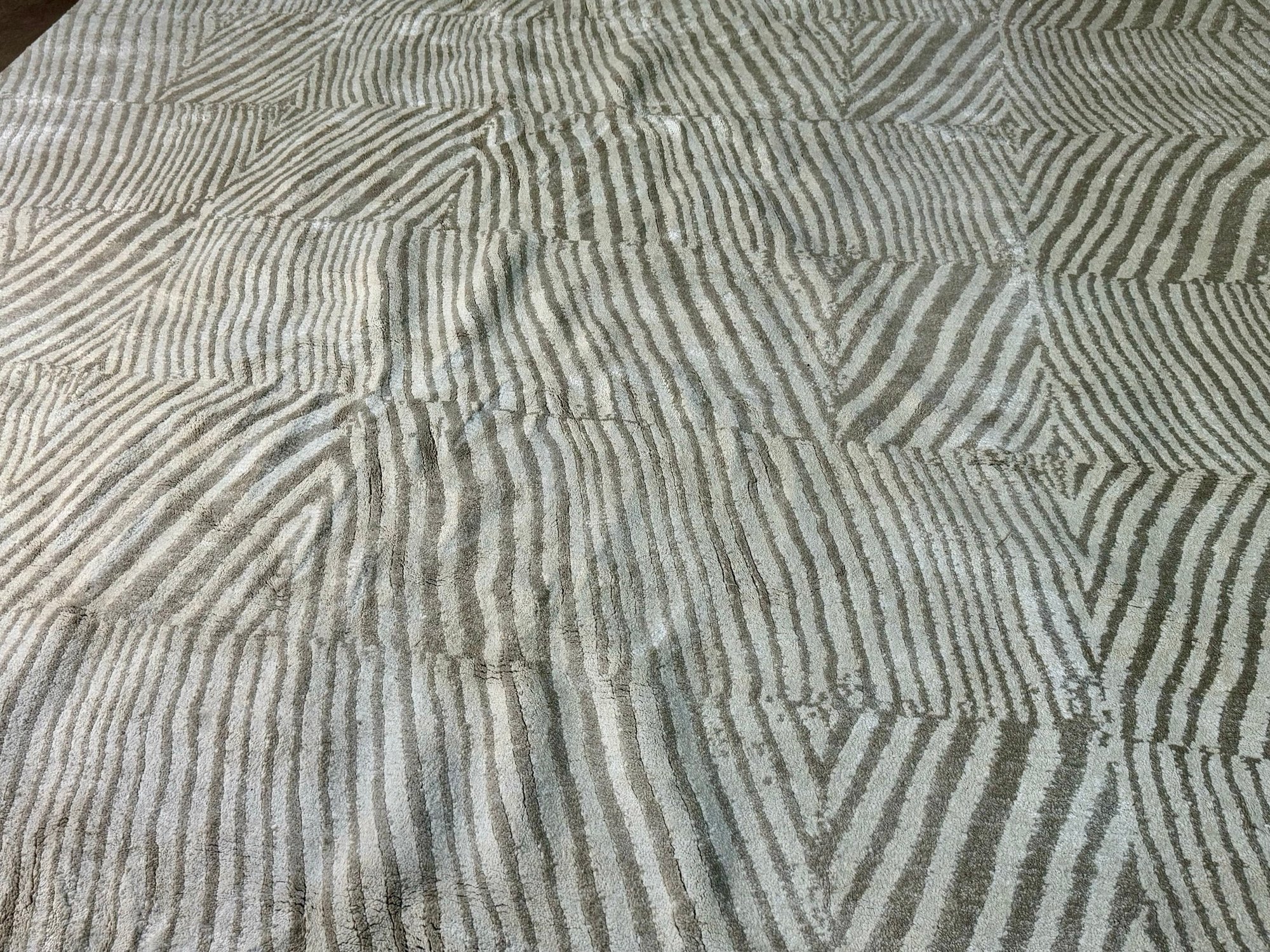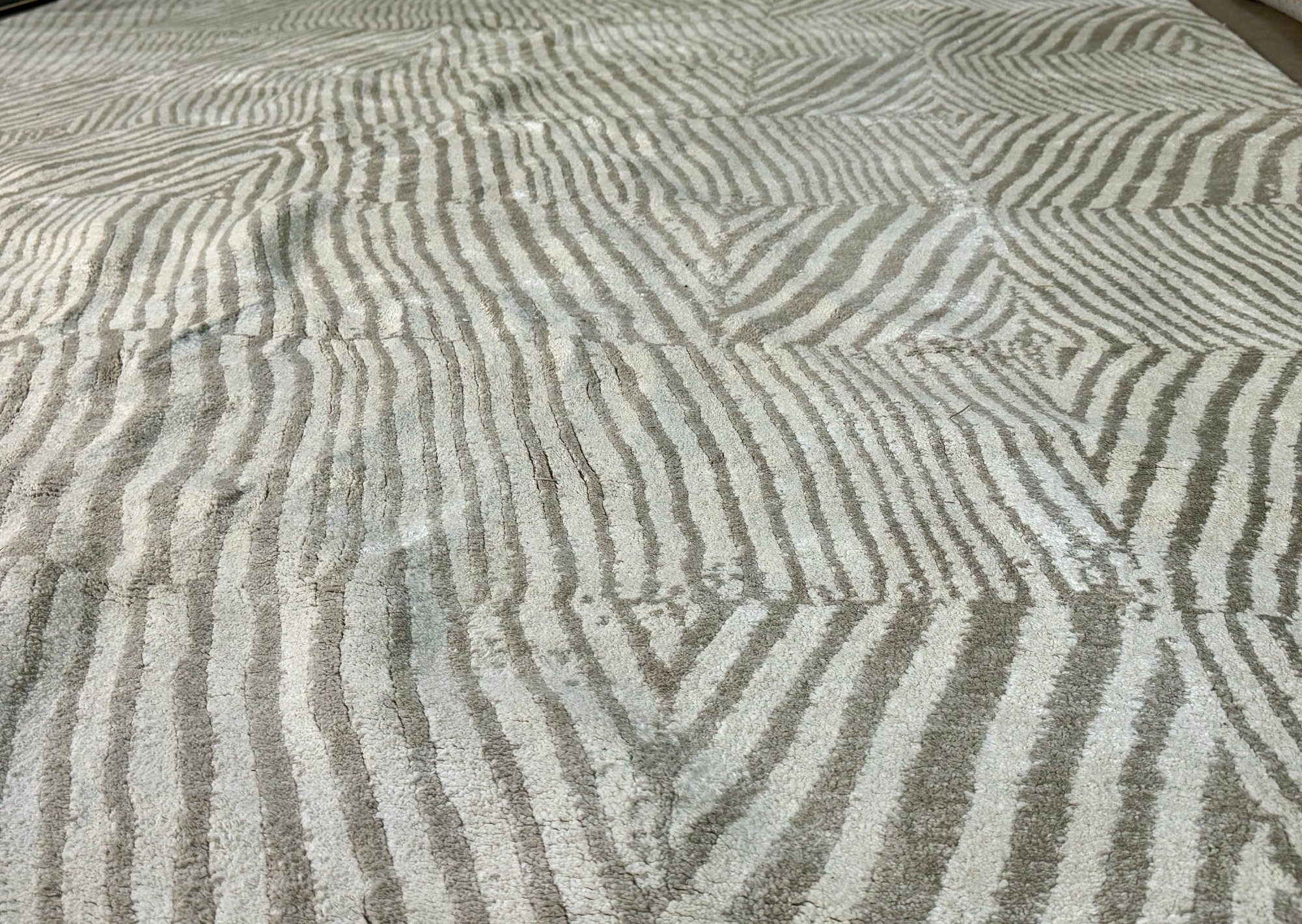 This clean rug measures 96” by 118”.
