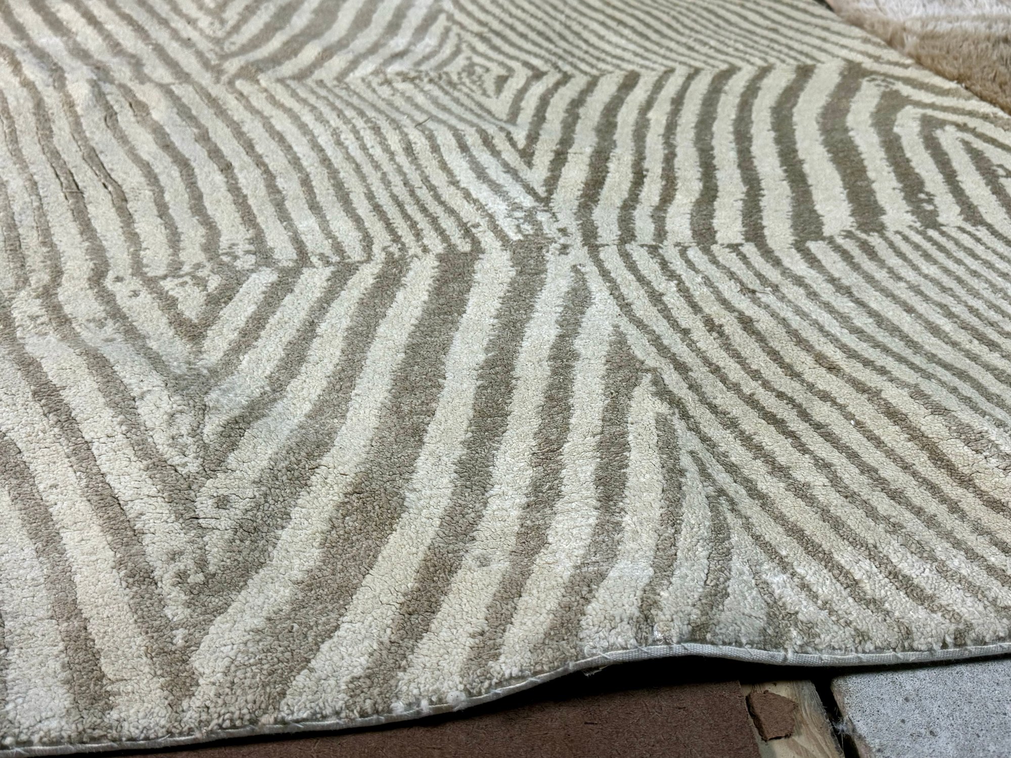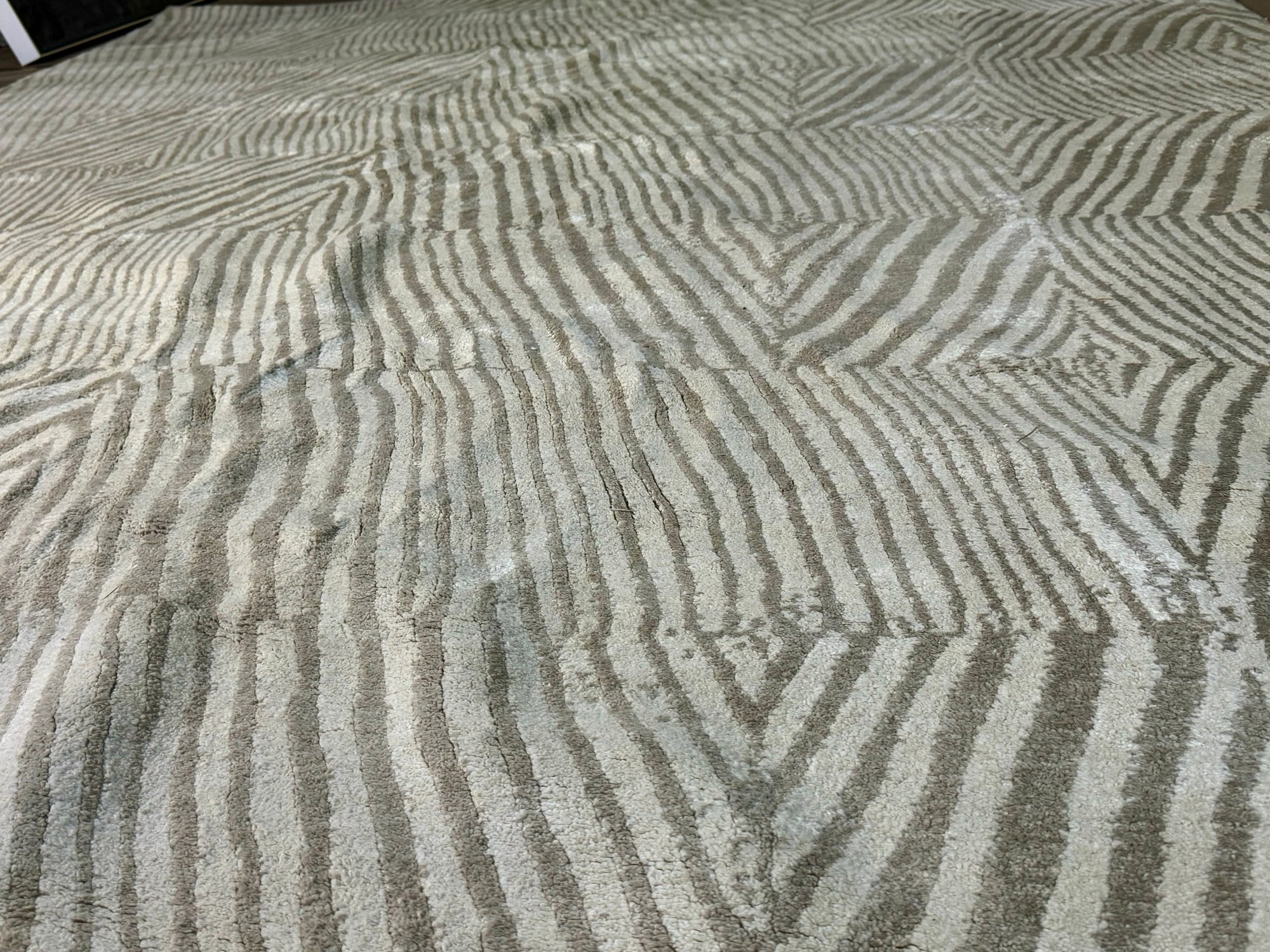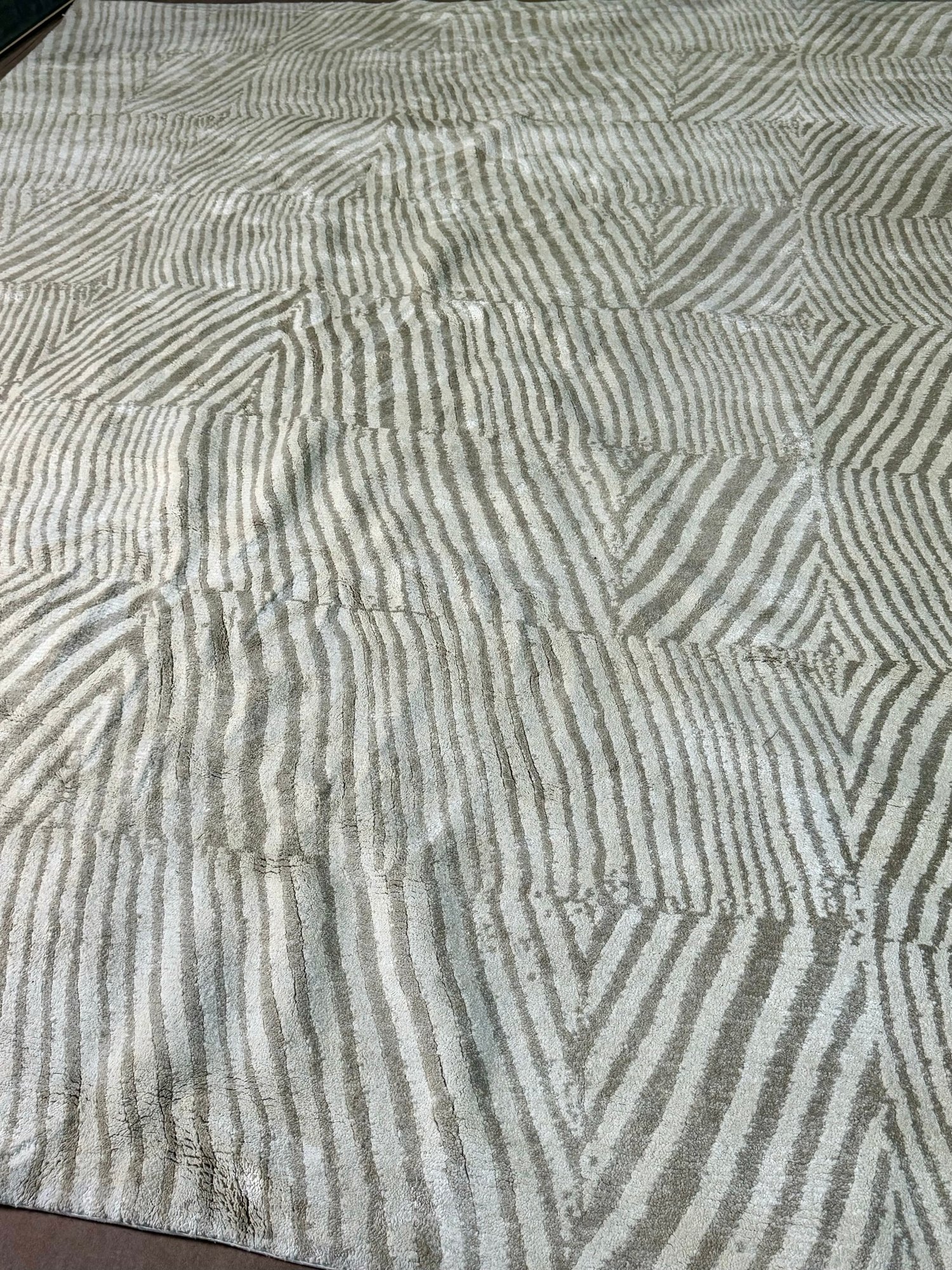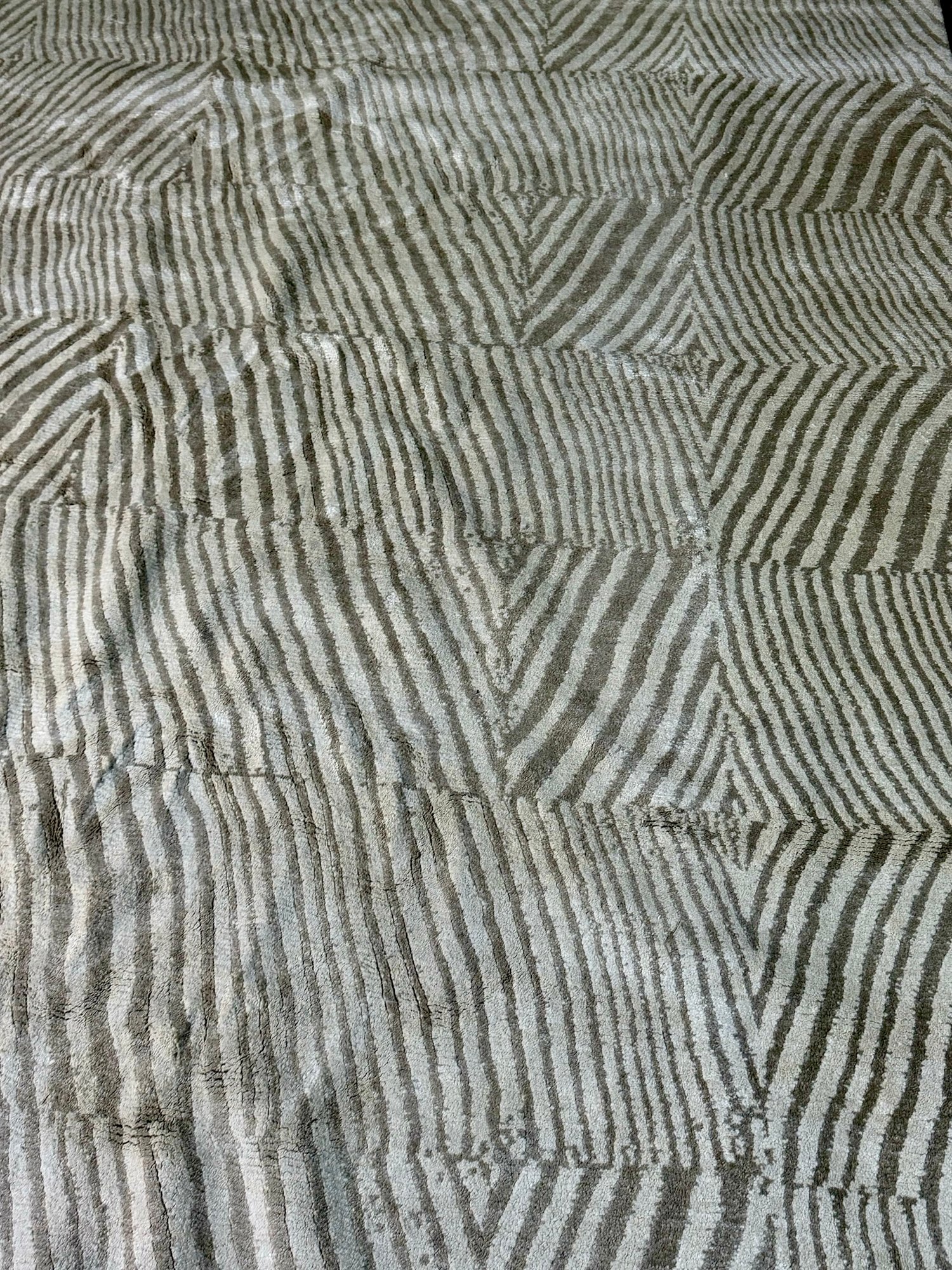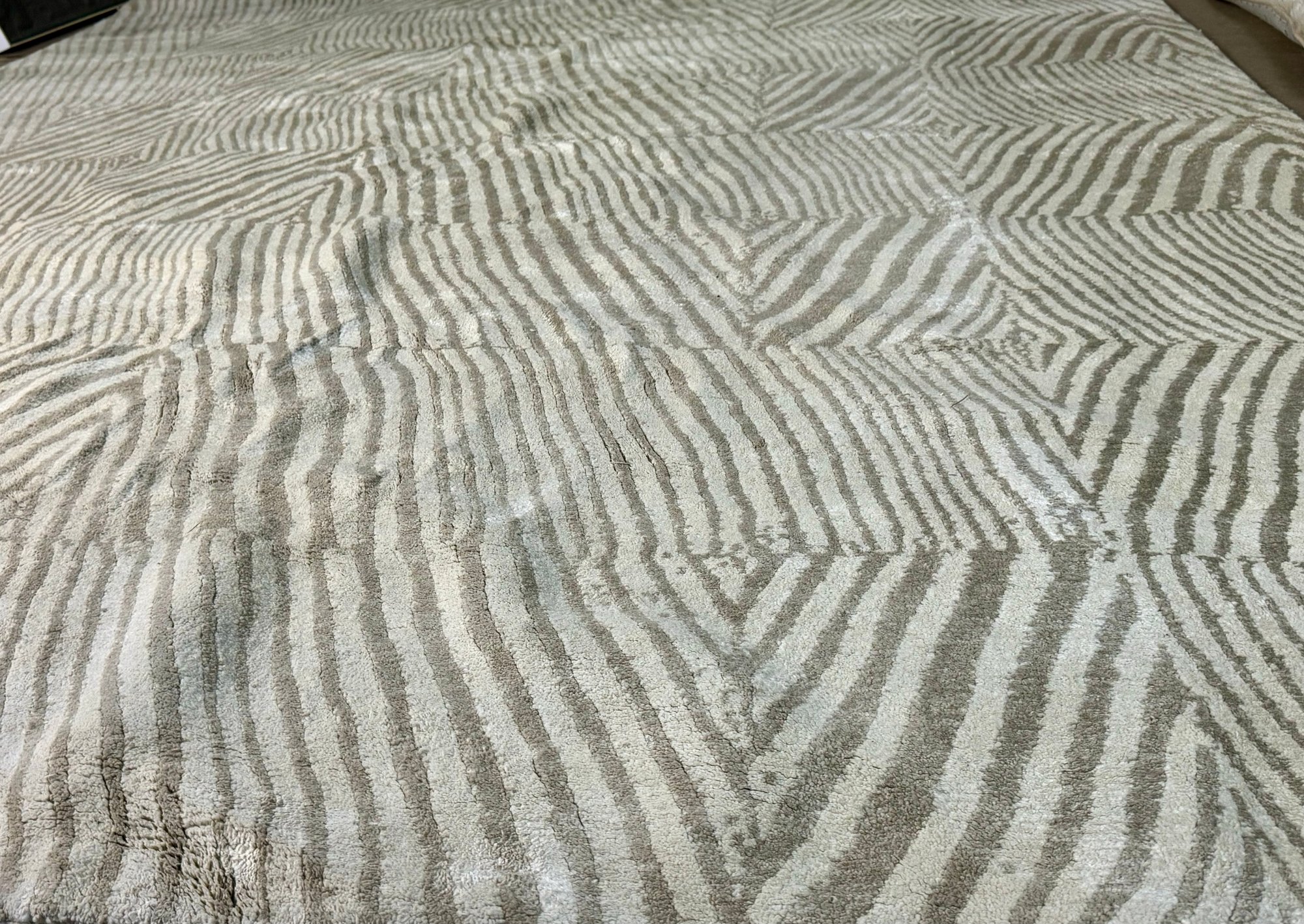 This clean rug measures 96” by 118”.