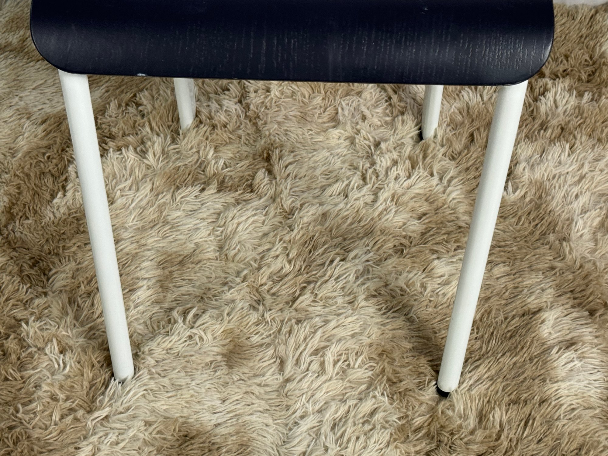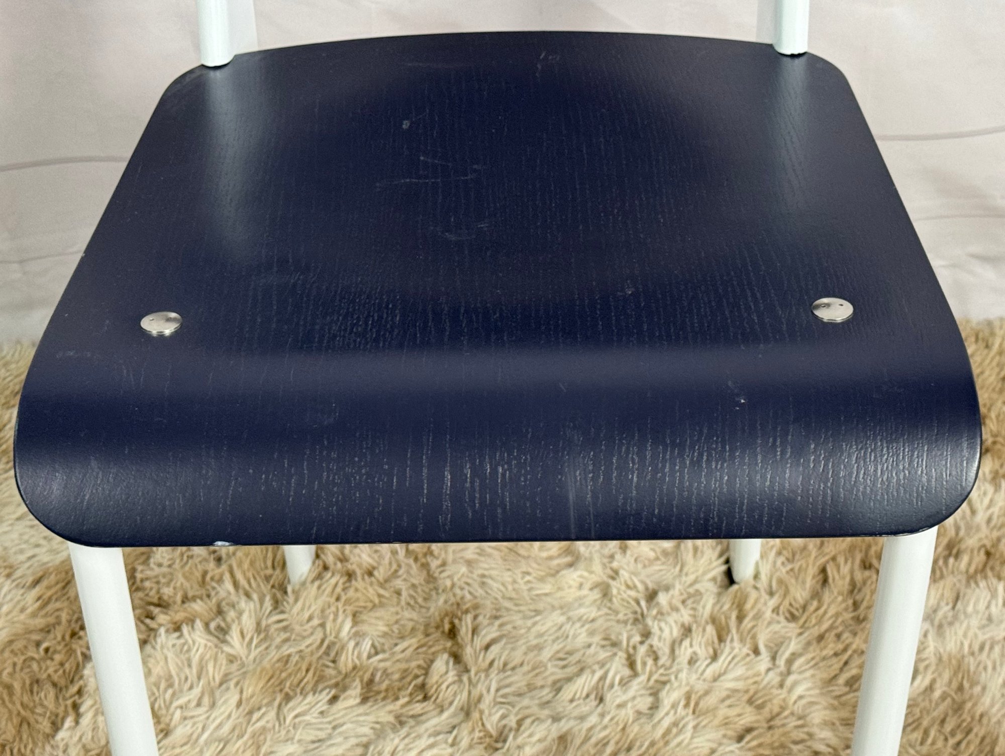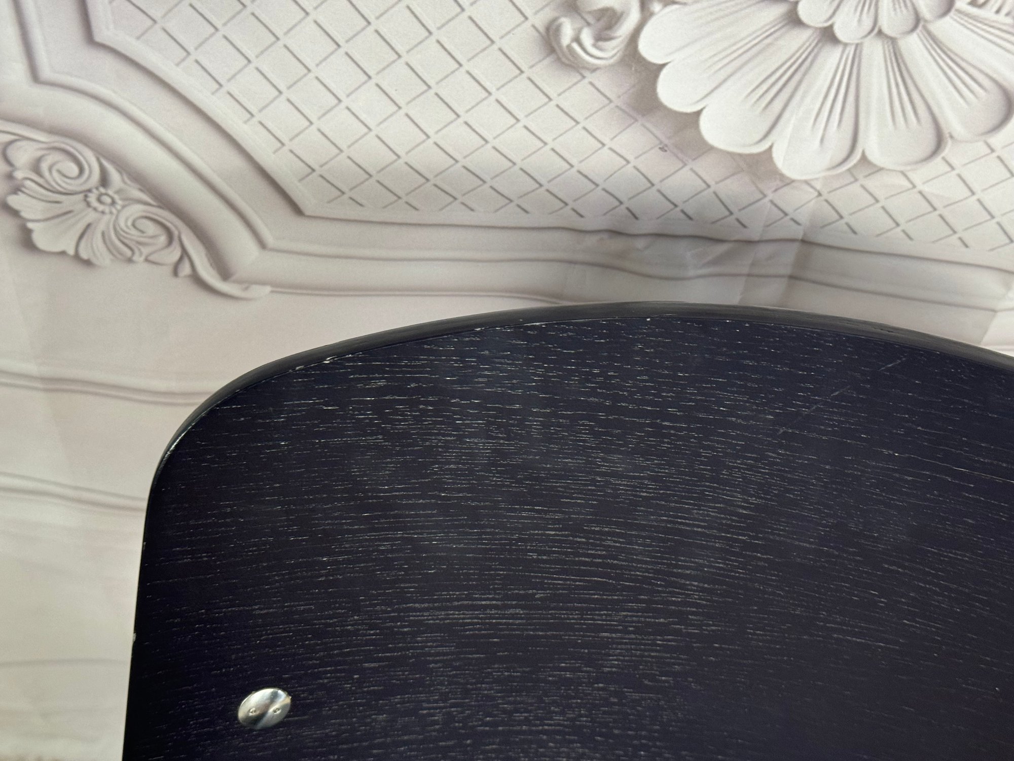 This REPLICA chair is unmarked and measures 32.25h x 15.75w x 17.75”d with a seat height of 18”.