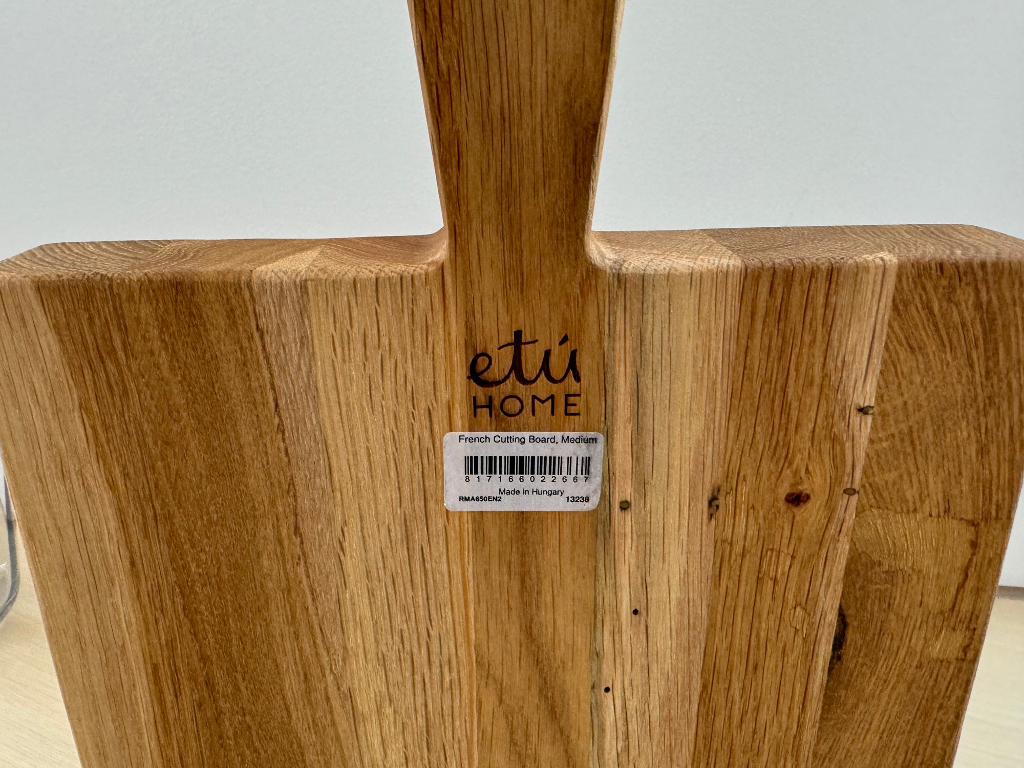 (1) Wooden Etu Home cutting board which measures 13”w by 10”d x 2”h