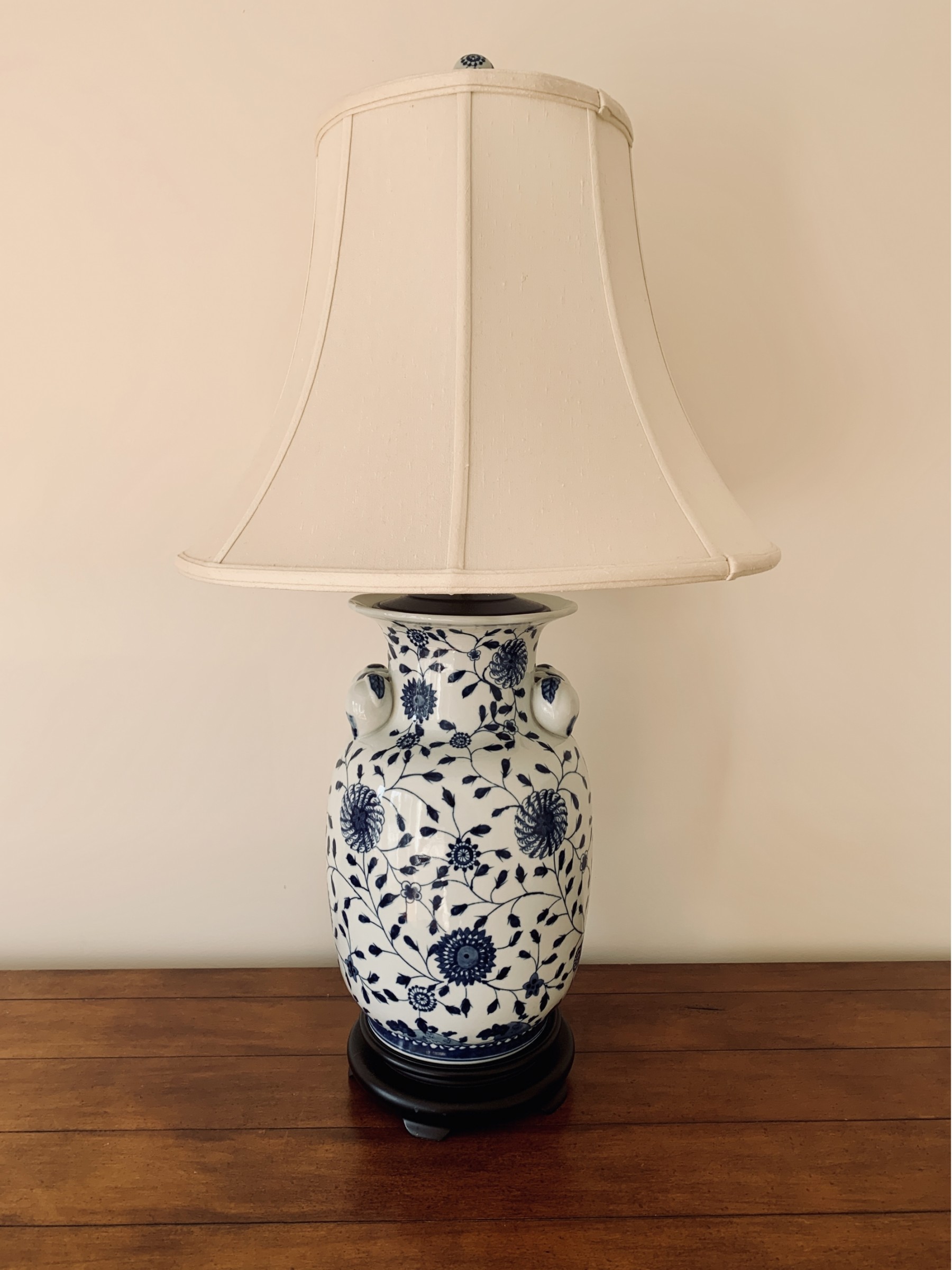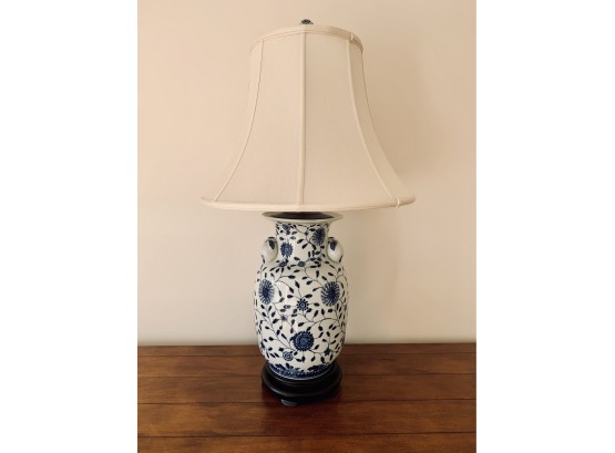 This lamp measures 18” wide at the shade by 33” tall.