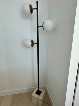 This beautiful lamp is verified to be working and measures 8” cube at the base. Each of the globes is 7.5” diameter and the total height is 72”.