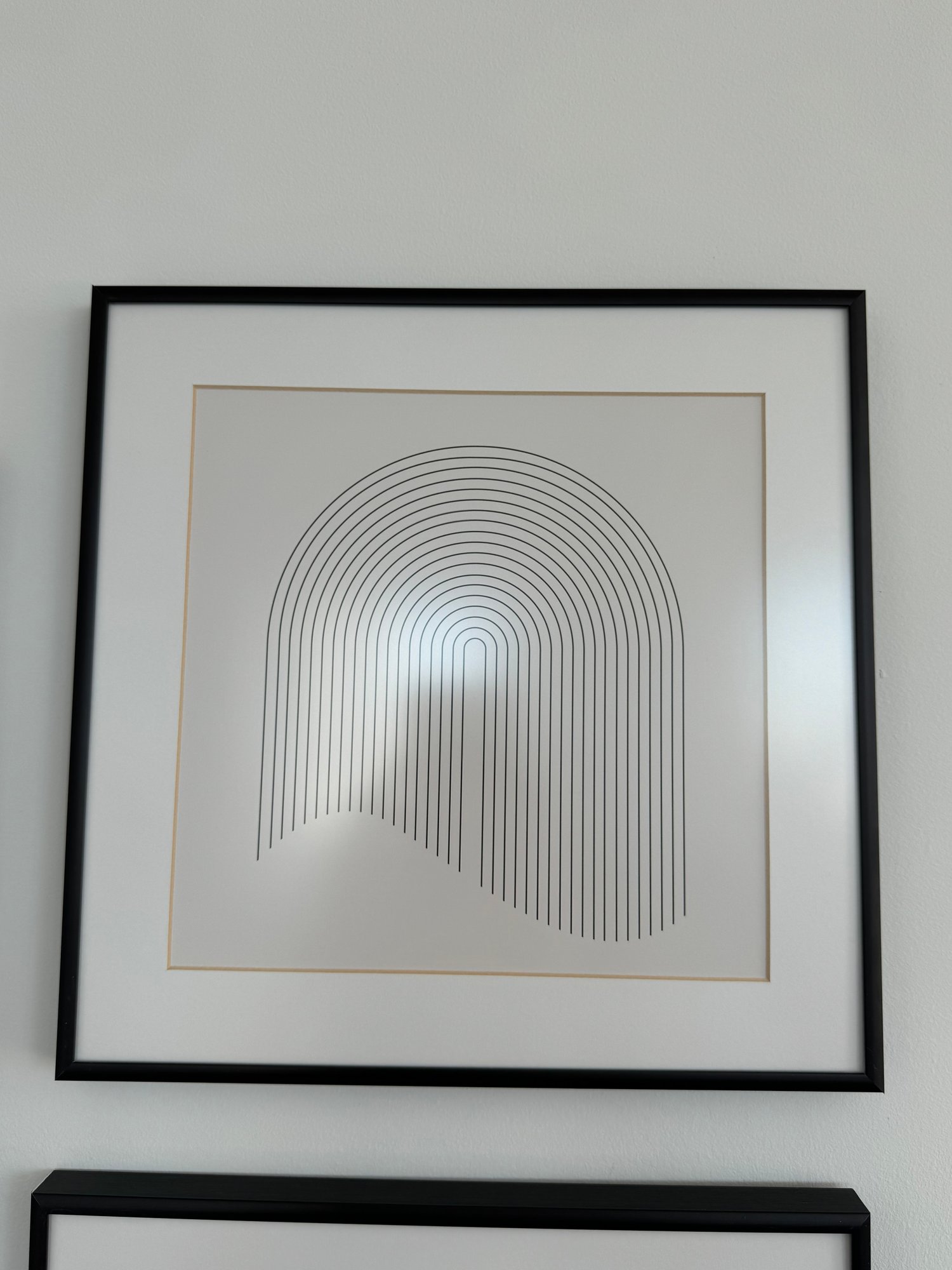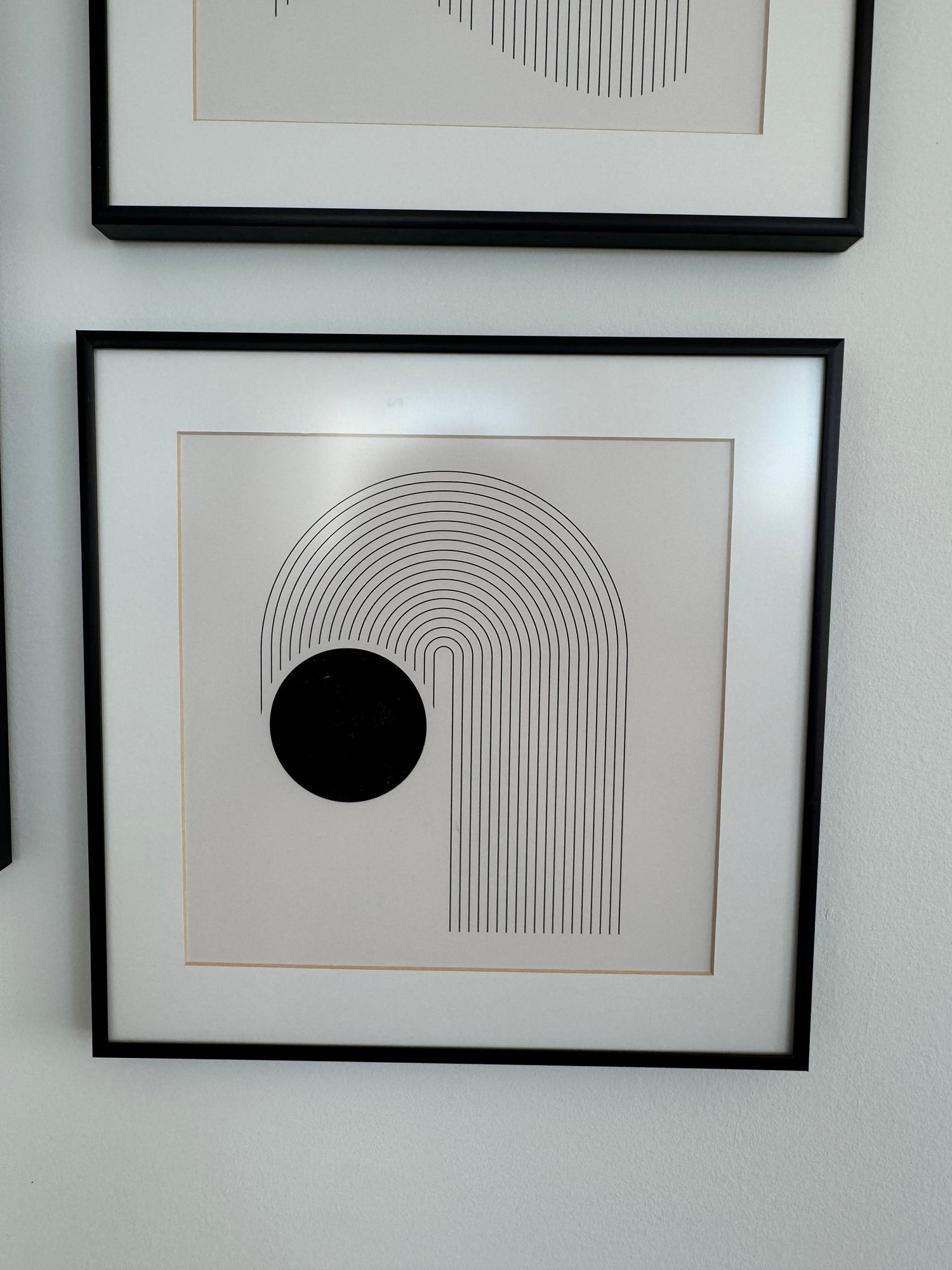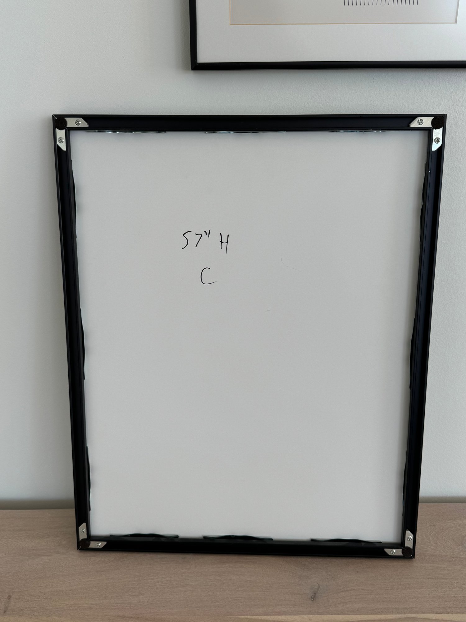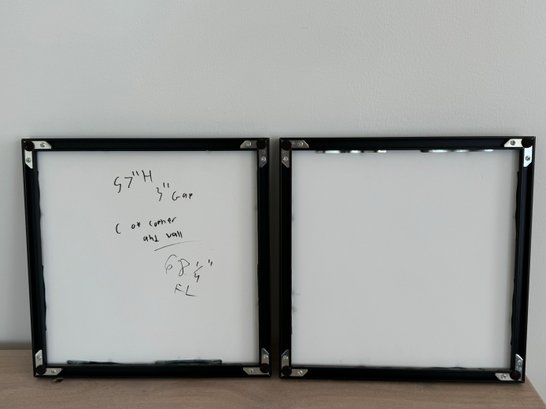 These pieces measure 12” square and 16” x 20” respectively. They are framed in black metal and have anti-reflective polycarbonate fronts.