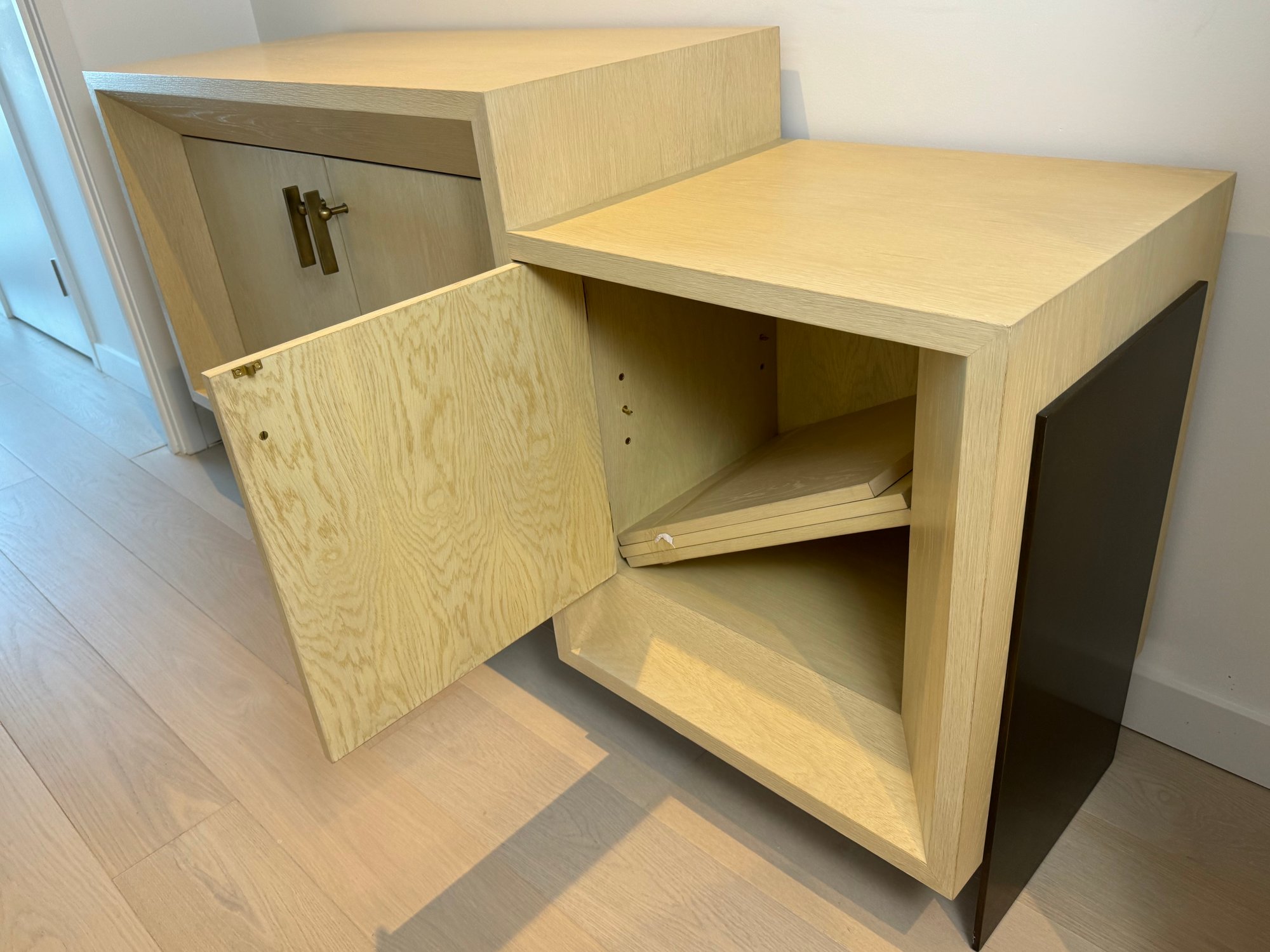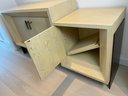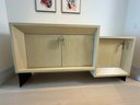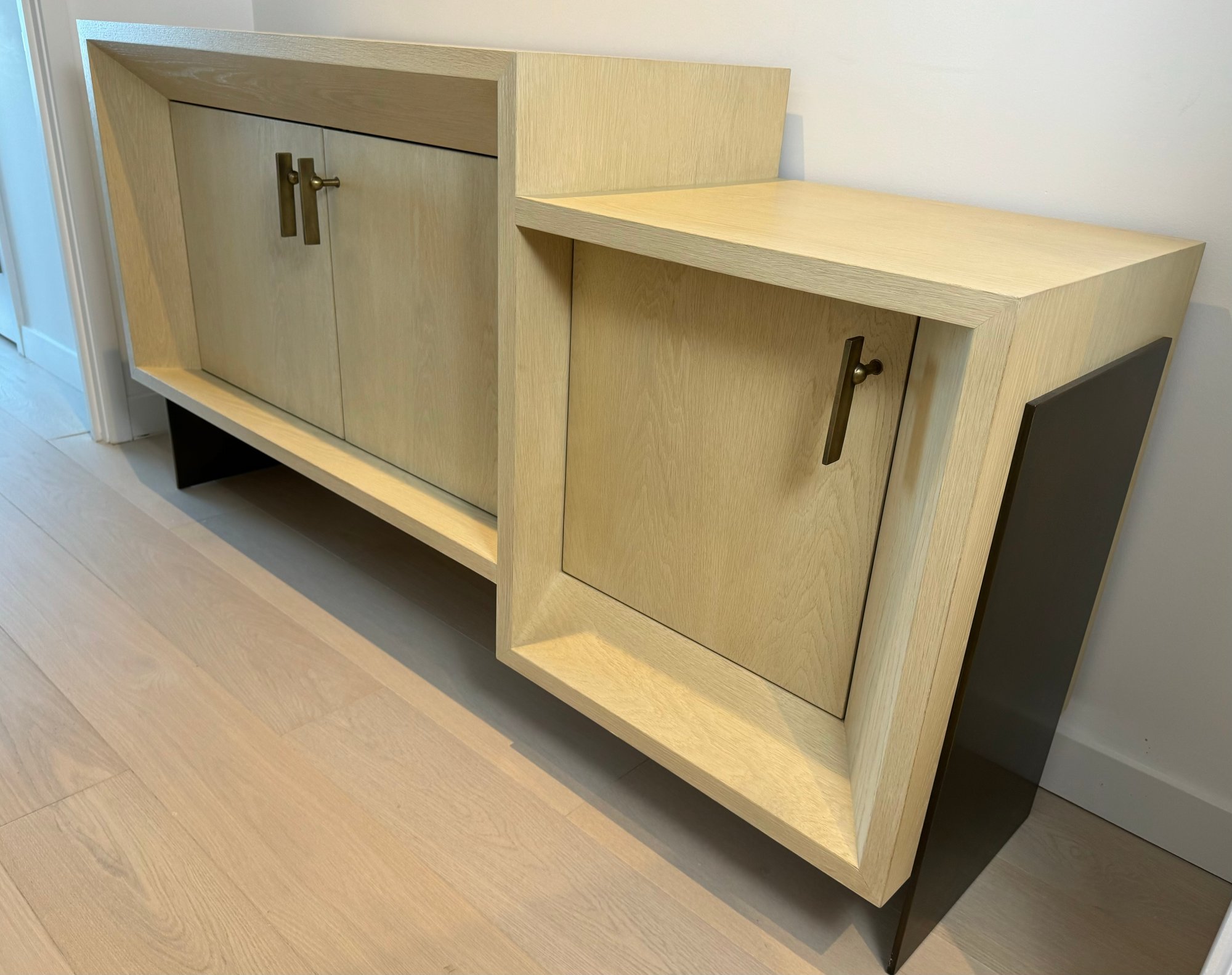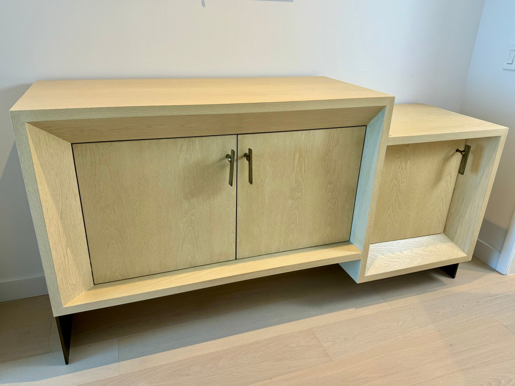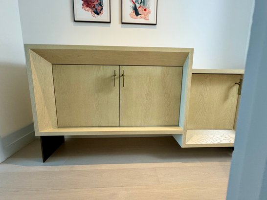 This two-tiered, stunning piece has removable, configurable shelves and measures