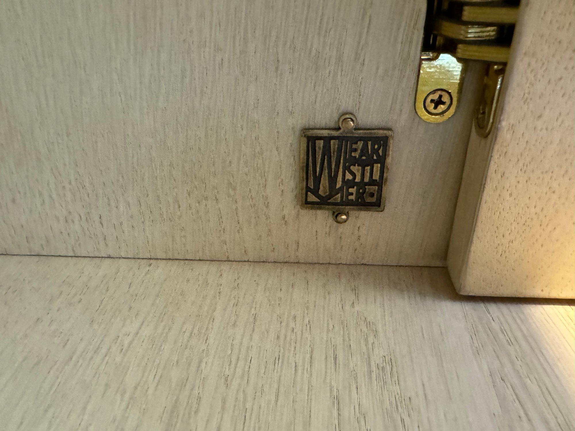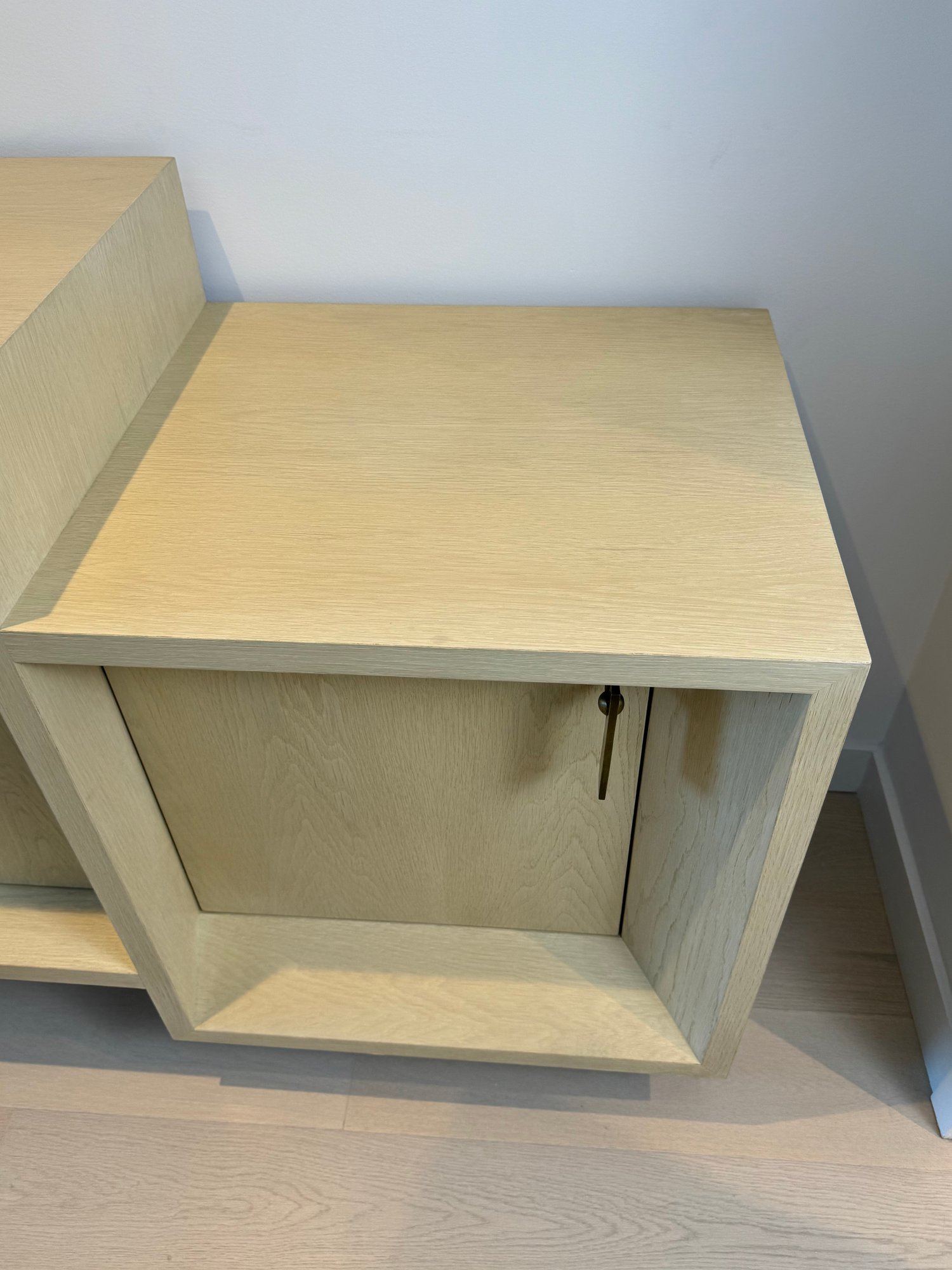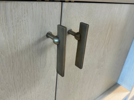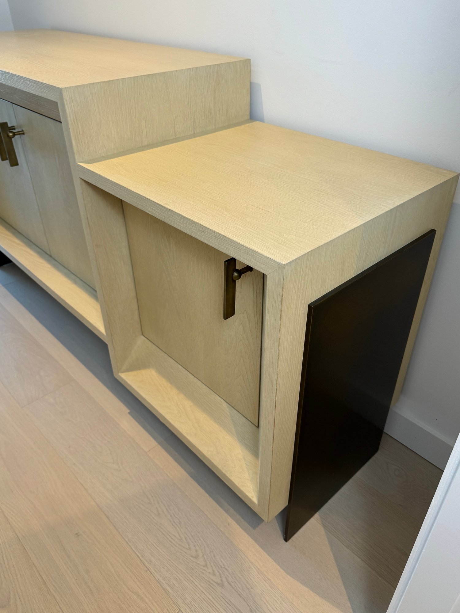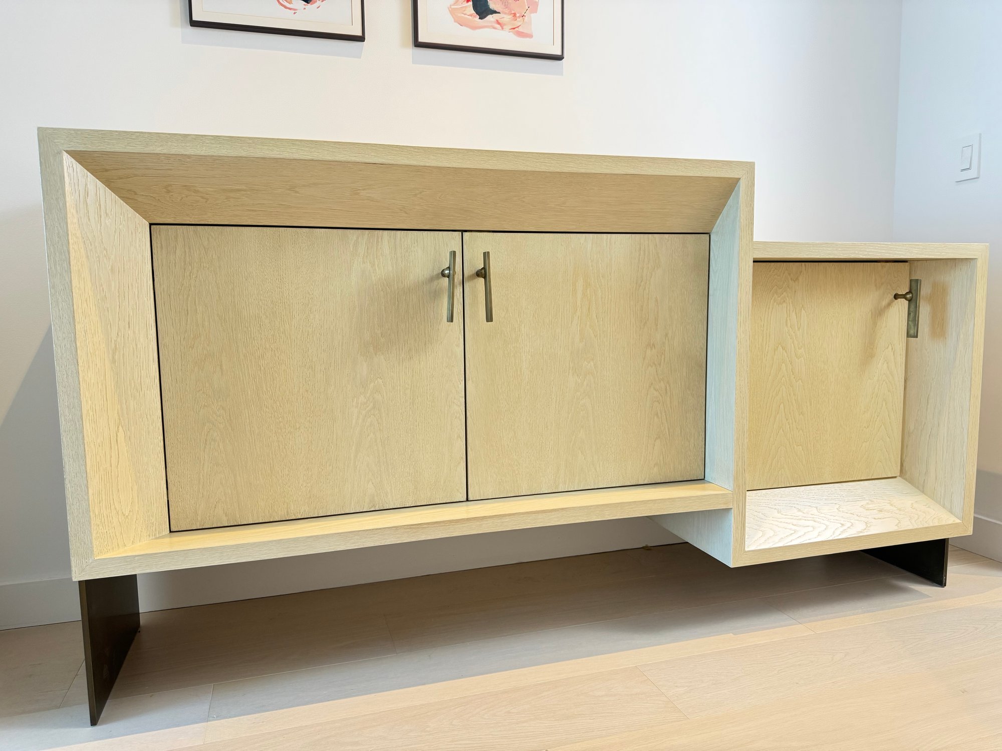 This two-tiered, stunning piece has removable, configurable shelves and measures