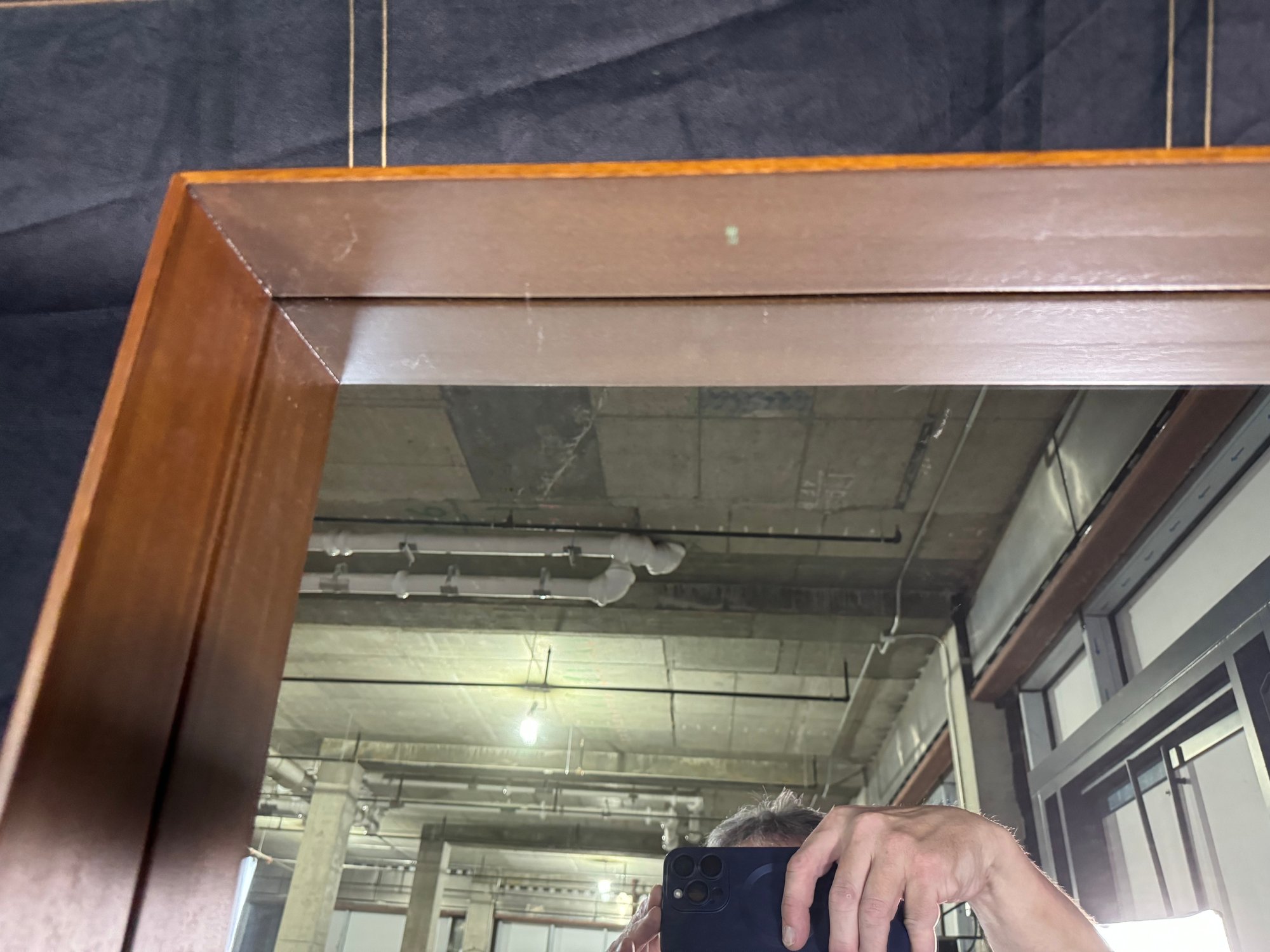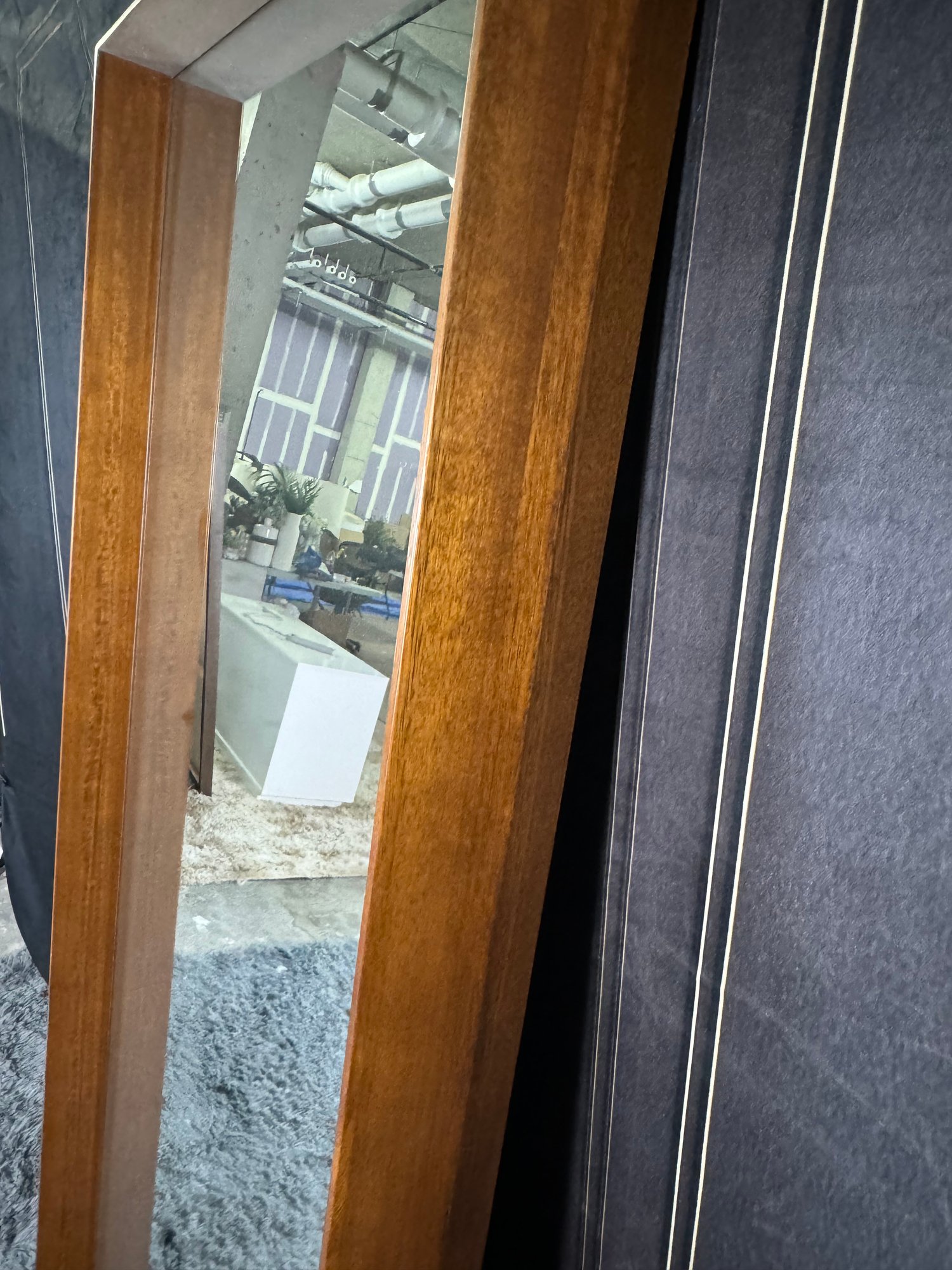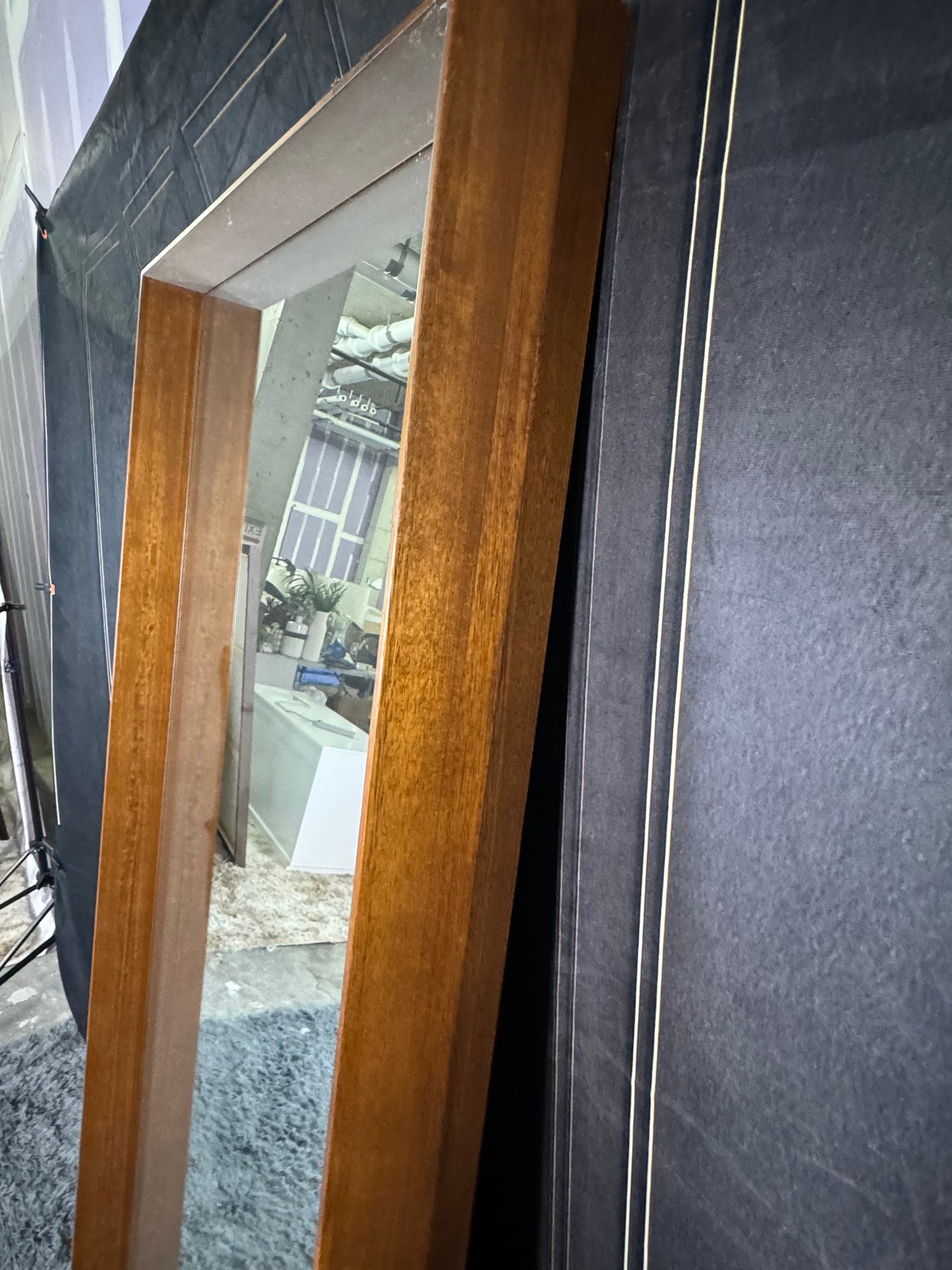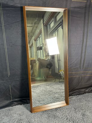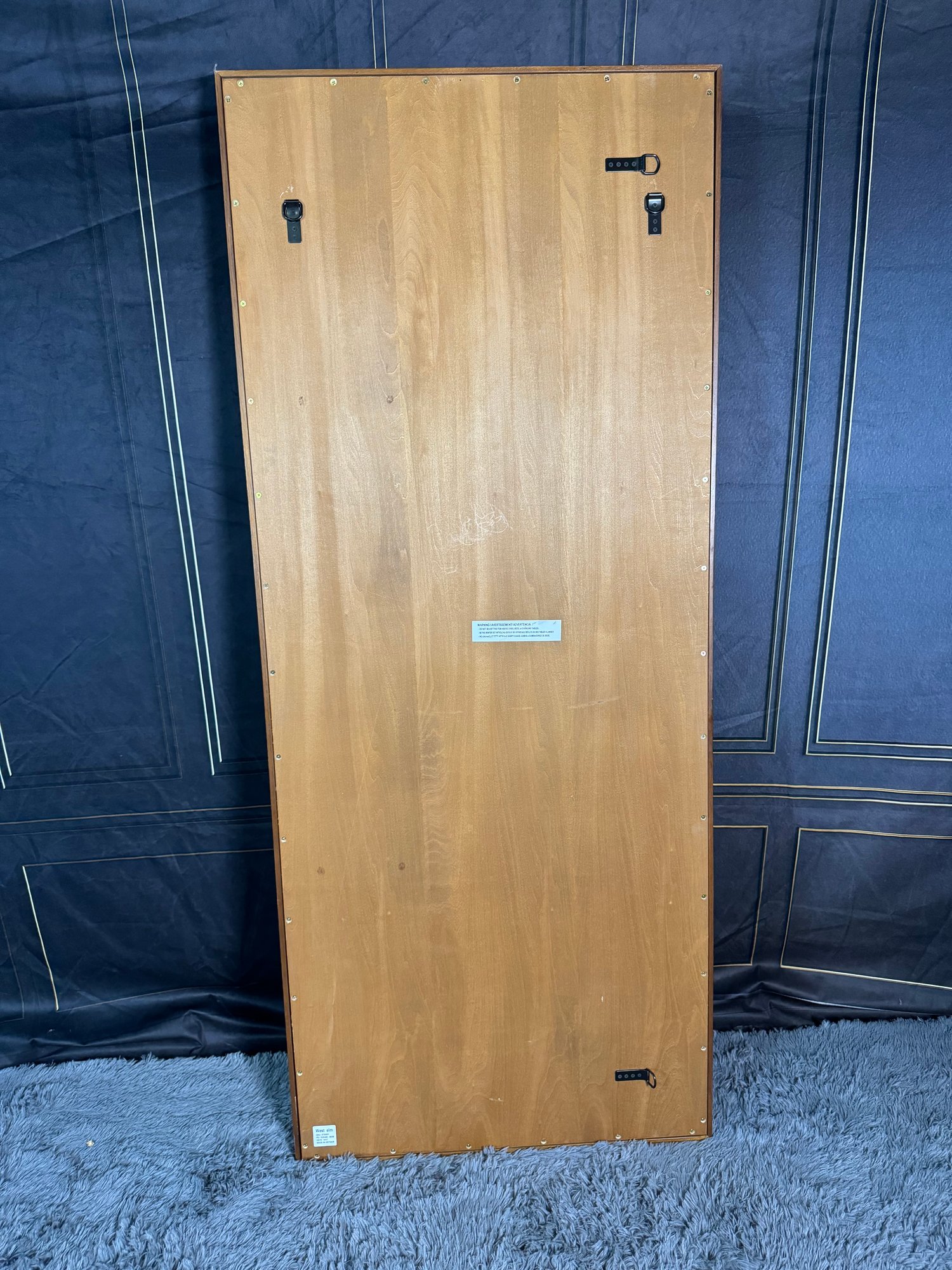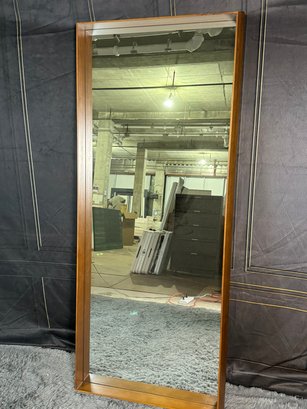 This lovely dark wood framed mirror can be hung in either portrait or landscape orientation. It measures 30” by 72”.