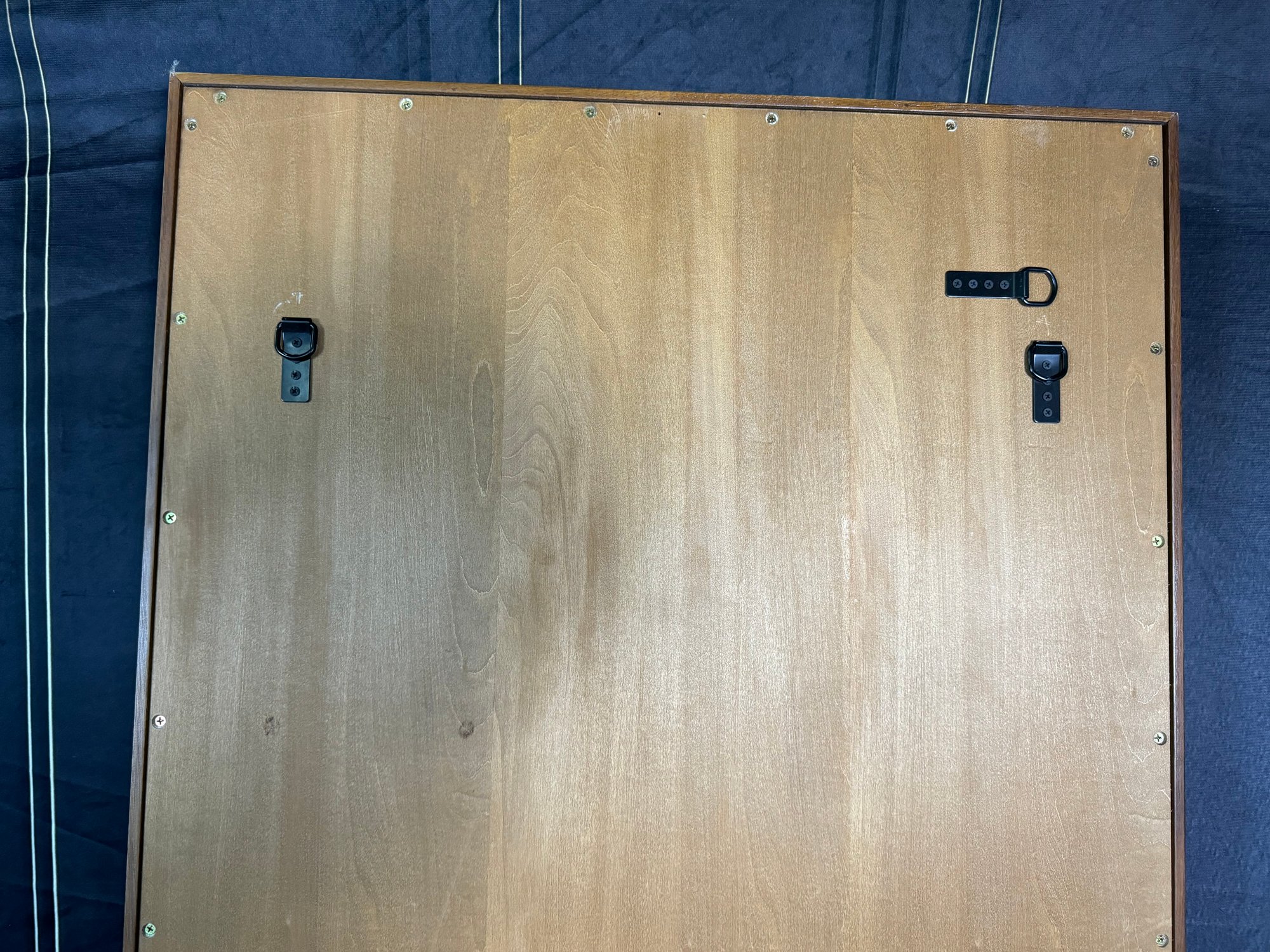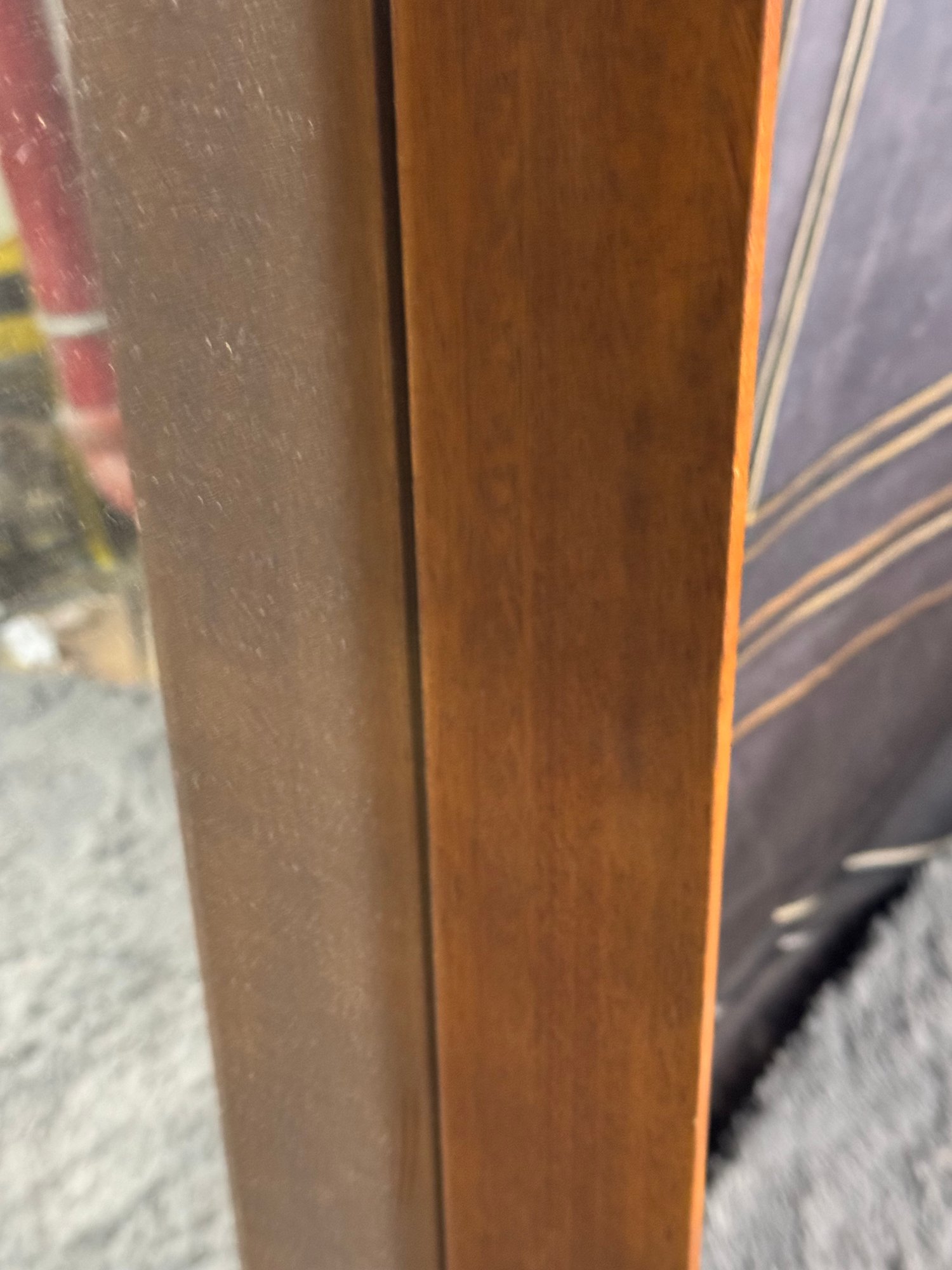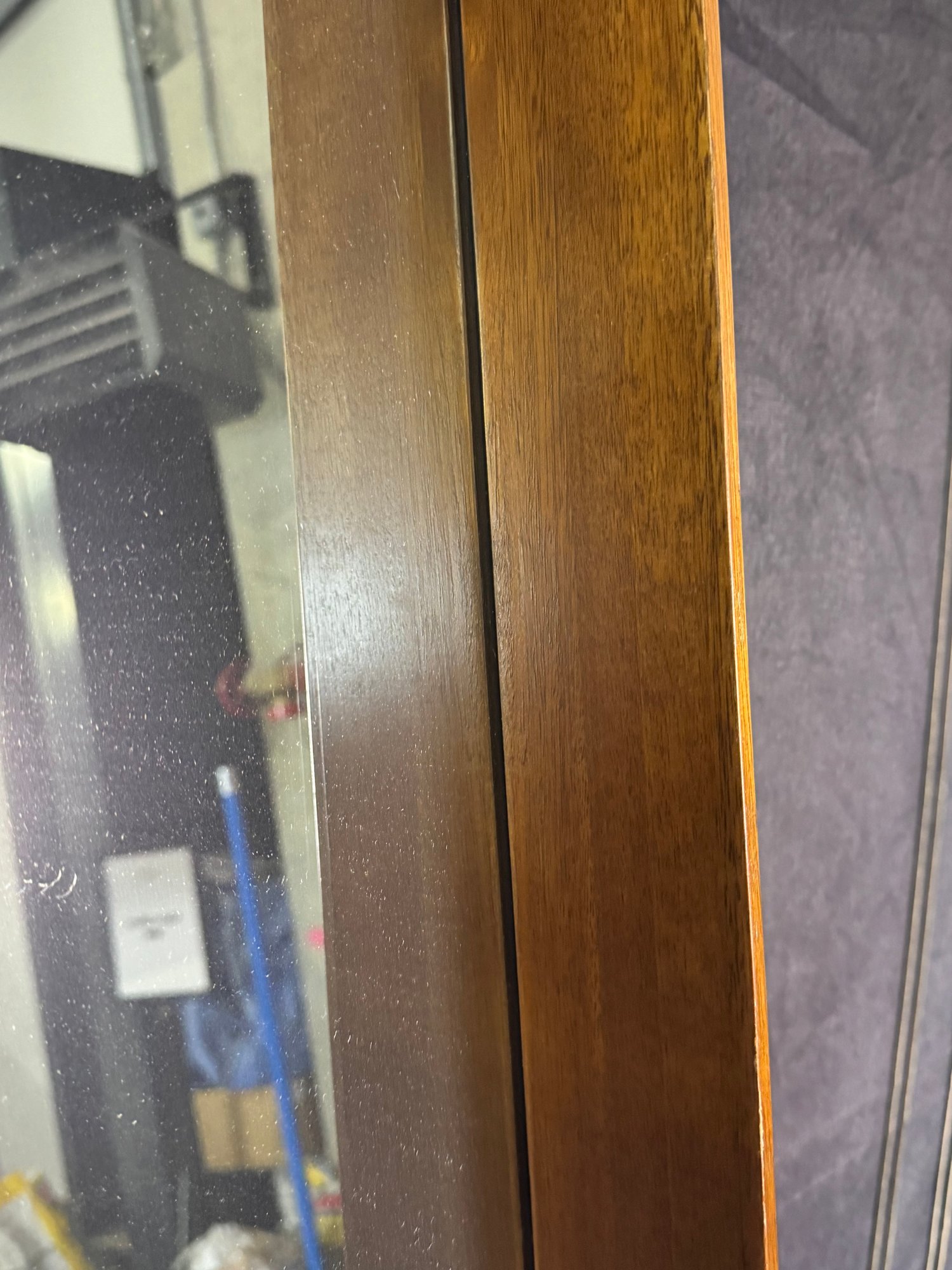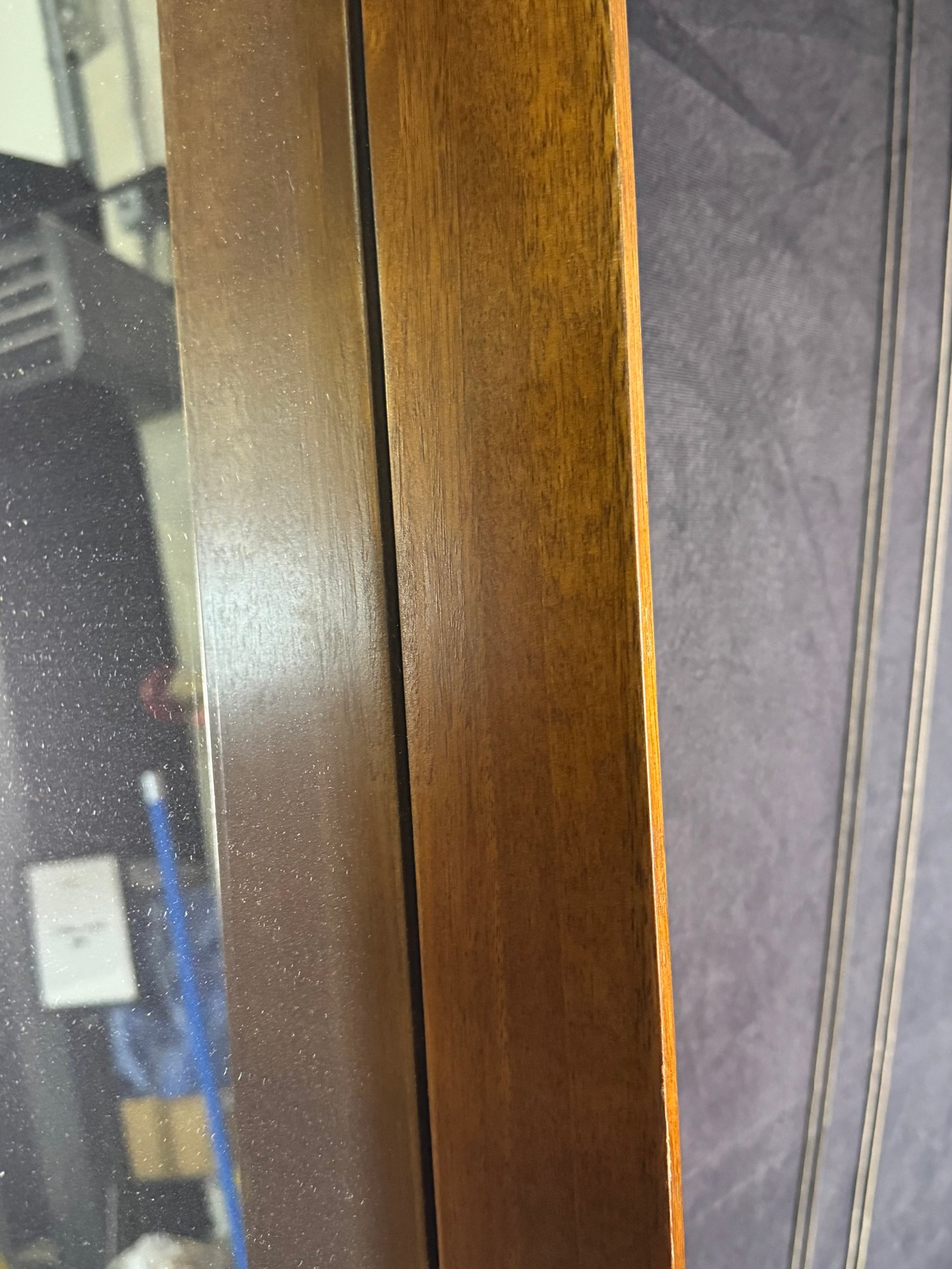 This lovely dark wood framed mirror can be hung in either portrait or landscape orientation. It measures 30” by 72”.