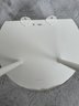 This table does not include mounting hardware (screws & wall anchors are all that is required) and measures 16” x 13” around by 17” tall.