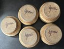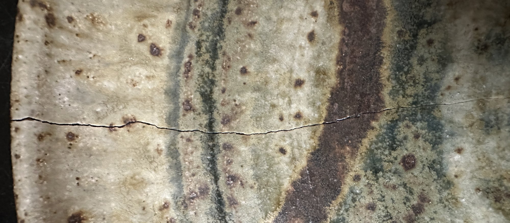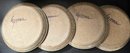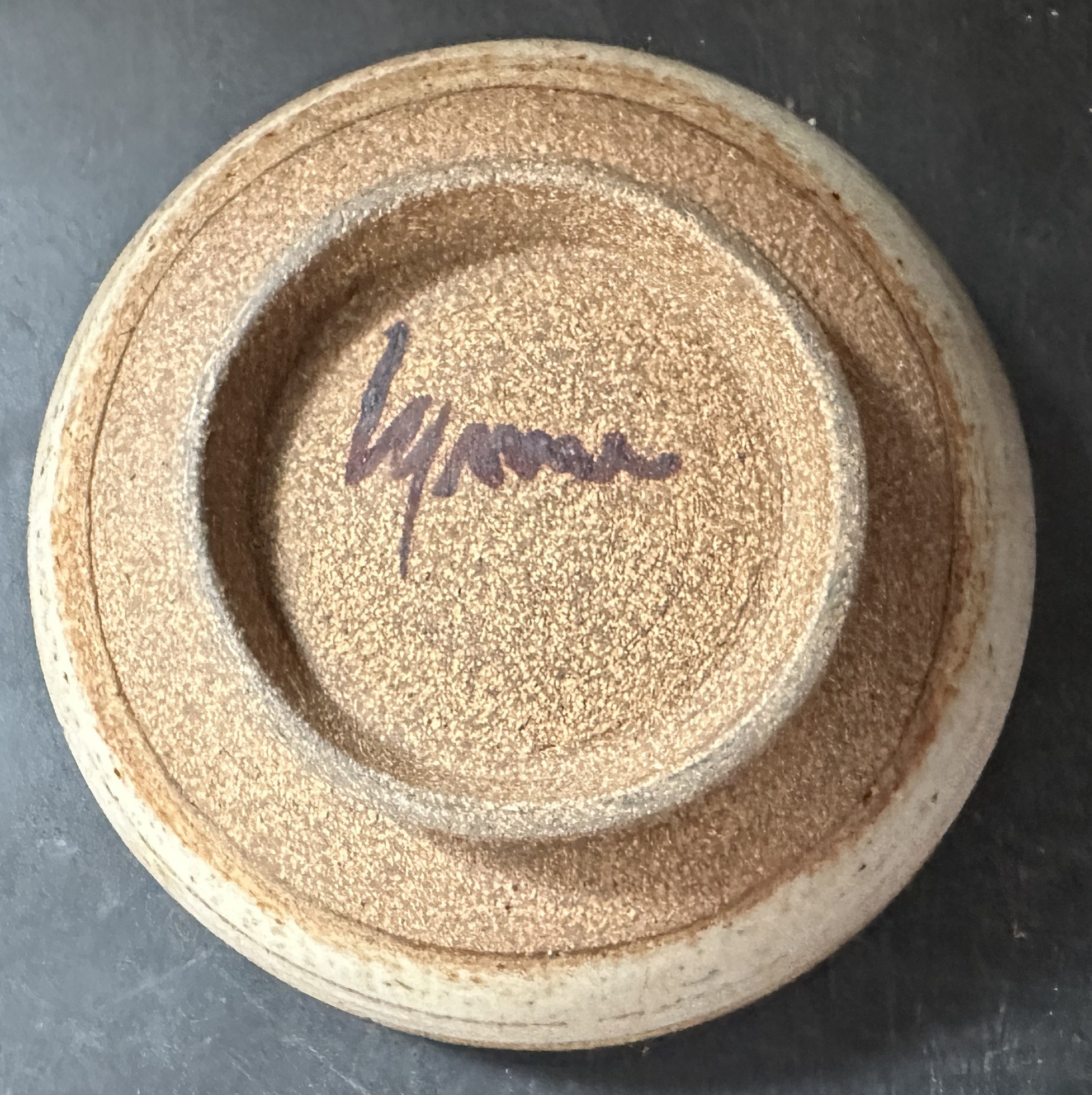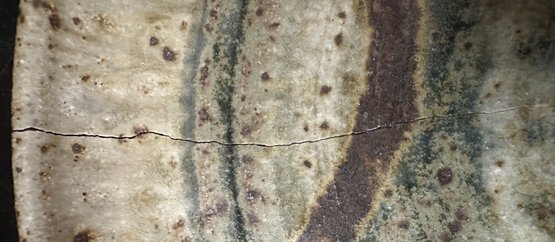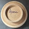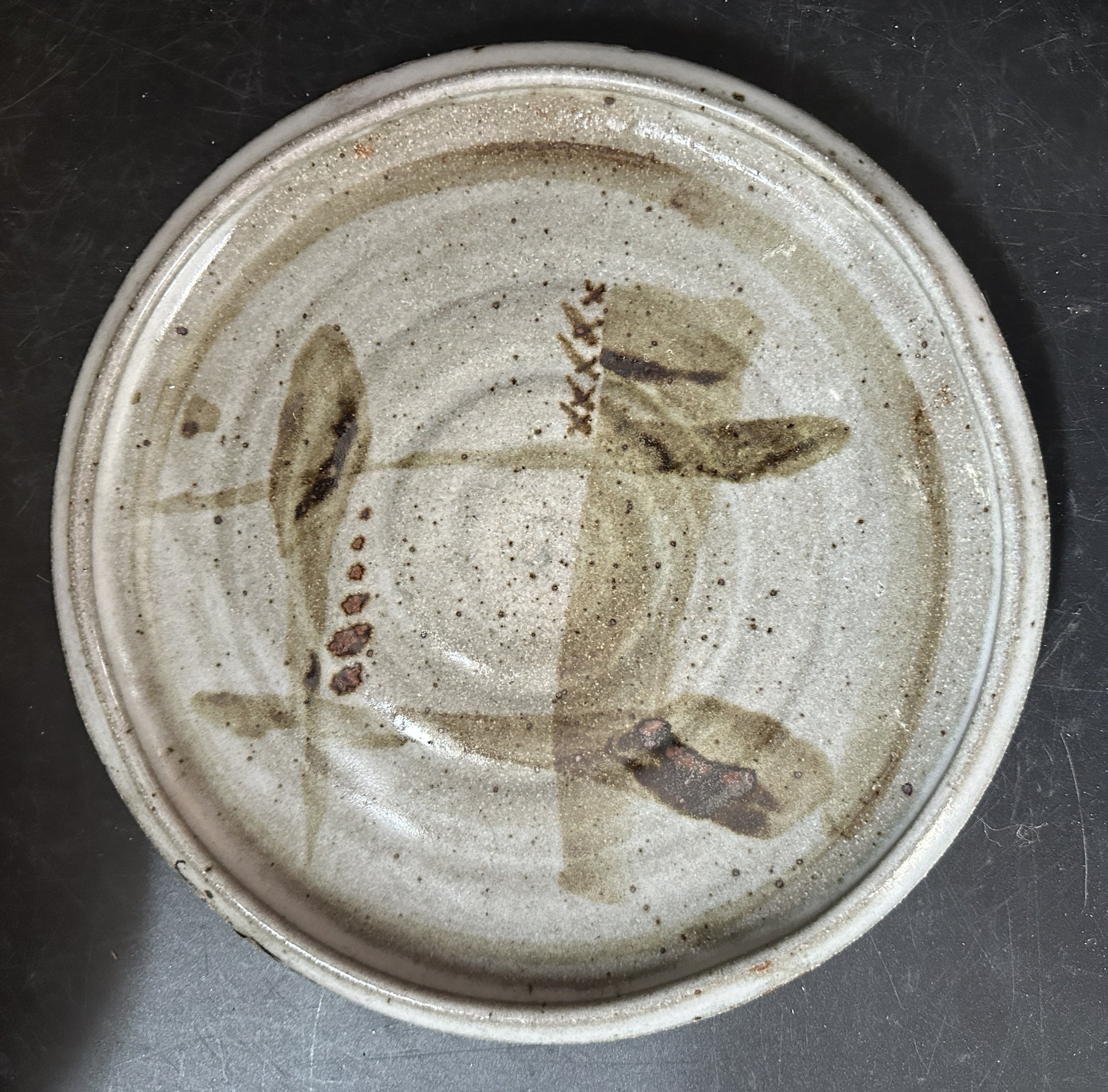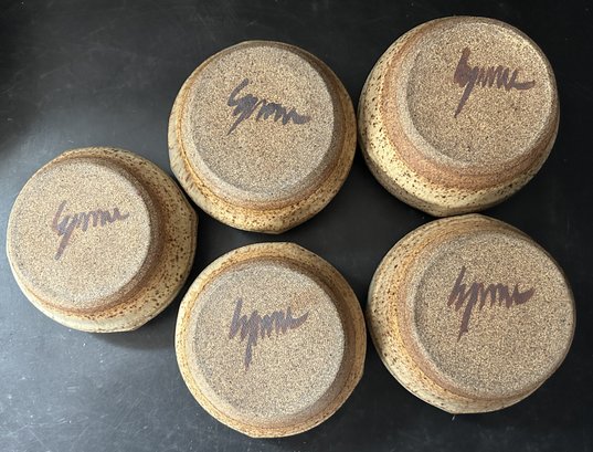 Large bowl is 9" D x 4.5"H; smaller bowls are 5.75"D x 3"H; 1 plate is 9.5" D; 4 plates are 10.5"D, one of these has a crack - see photo.