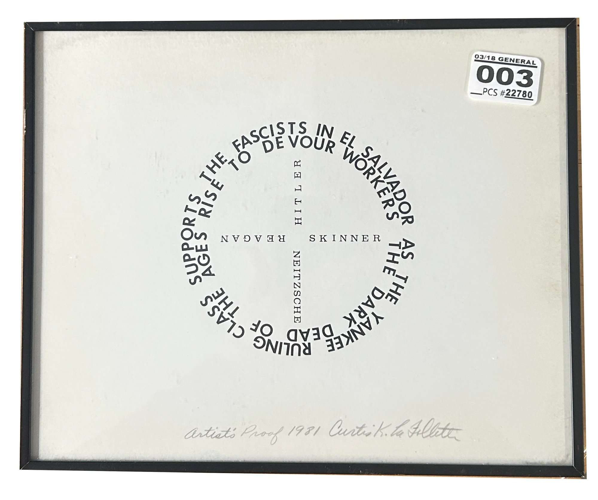 1981 Framed Artist Proof "Fascists" Signed Curtis K Follette, 9.75 X 8"H
