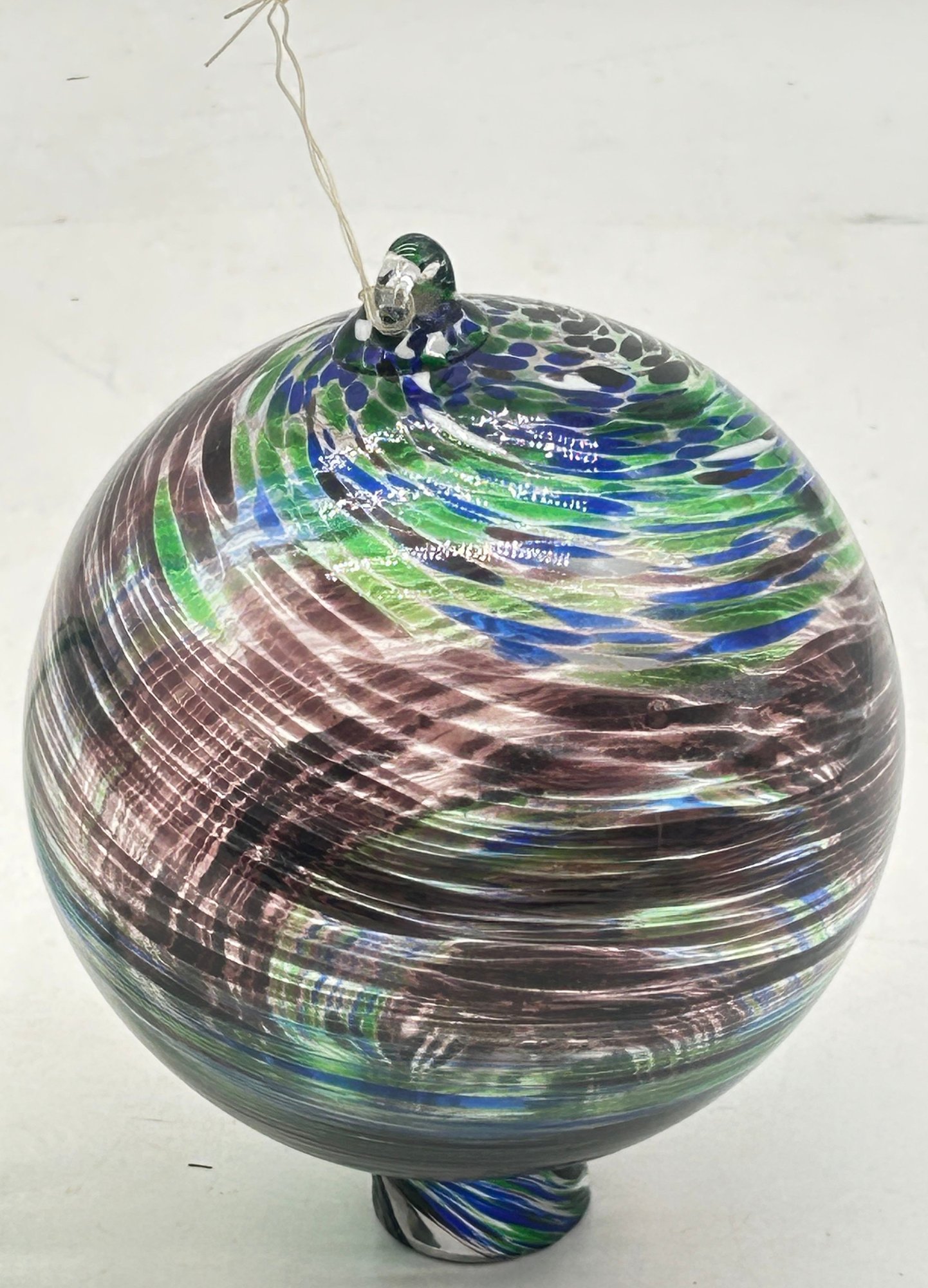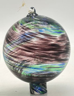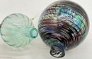 2 Pcs Mouth-Blown Art Glass Orbs, 1-With Hanger, Largest 5" Diam. X 6.25"H