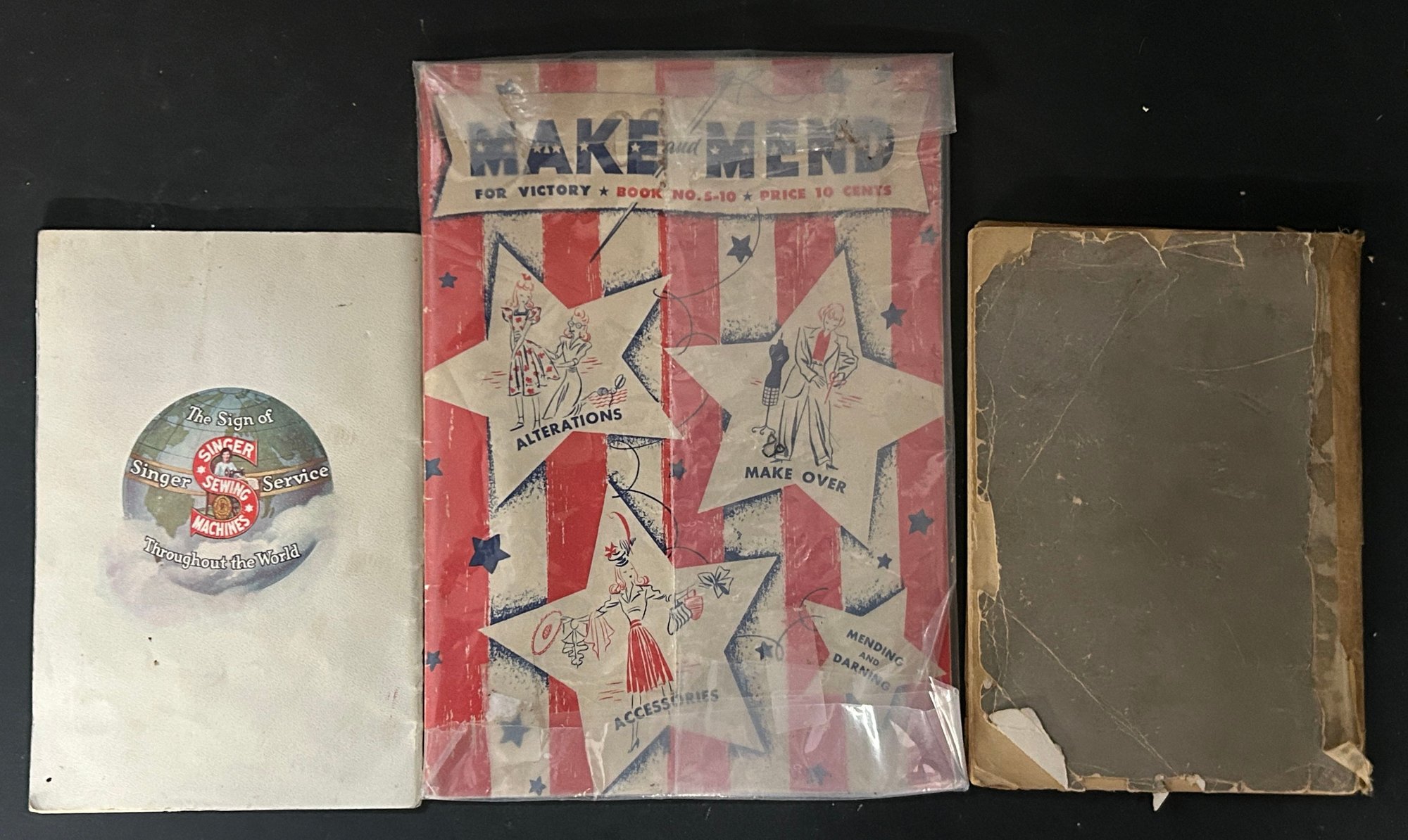 3 Pcs Vintage Pamphlet - Singer Short Cuts, Hemingway Treatise On Art Needle Work & Make & Mend Foir Victory