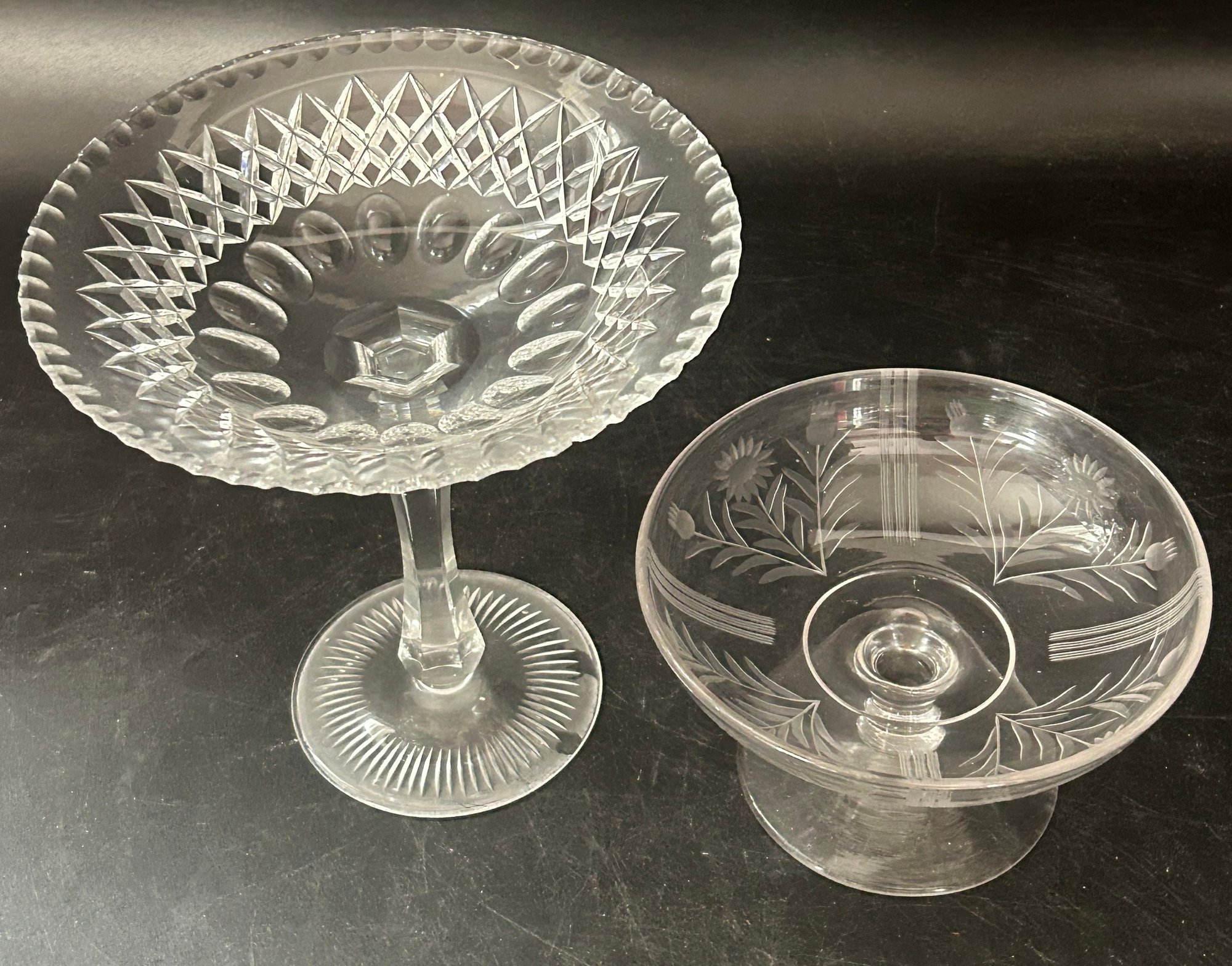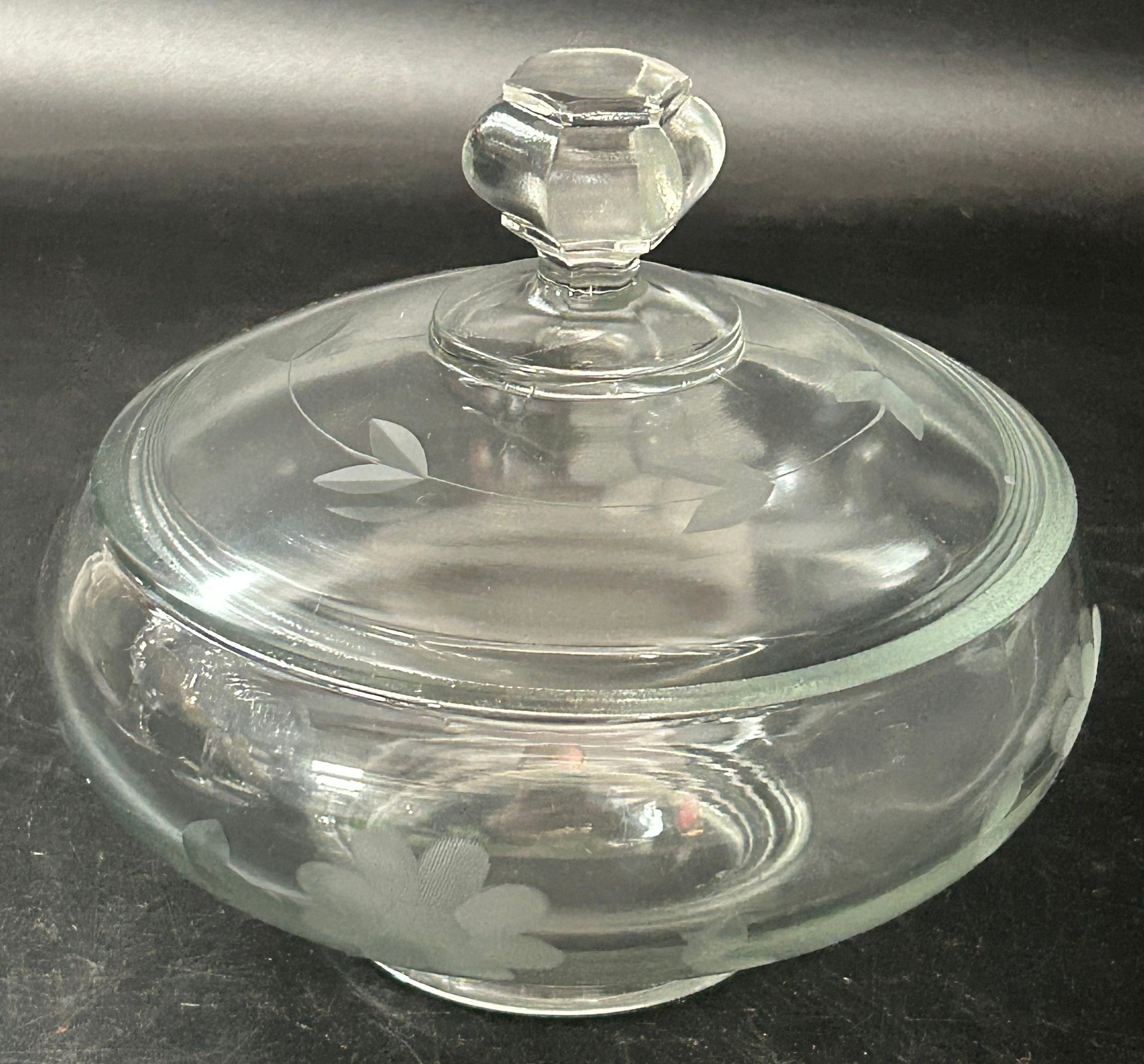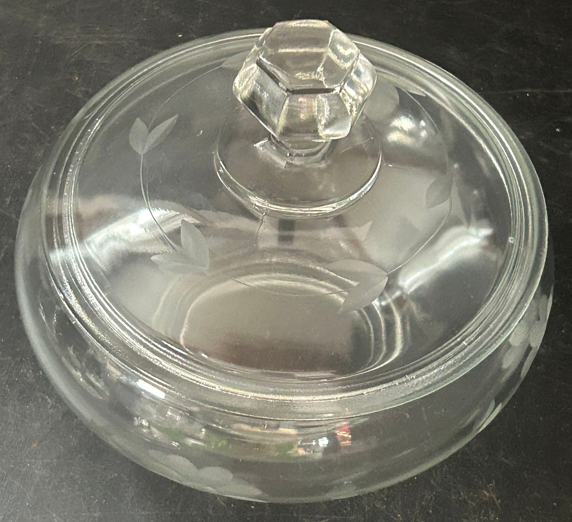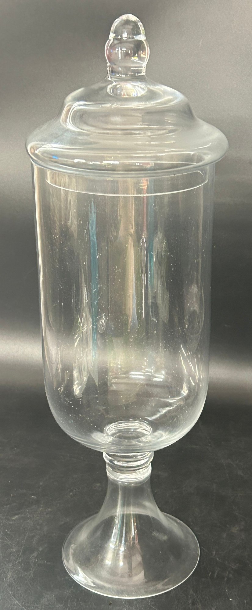 4 Pcs Clear Glass Candy Dish - 16"H Apothecary Jar, 2-Footed Compotes & Covered Etched Bowl