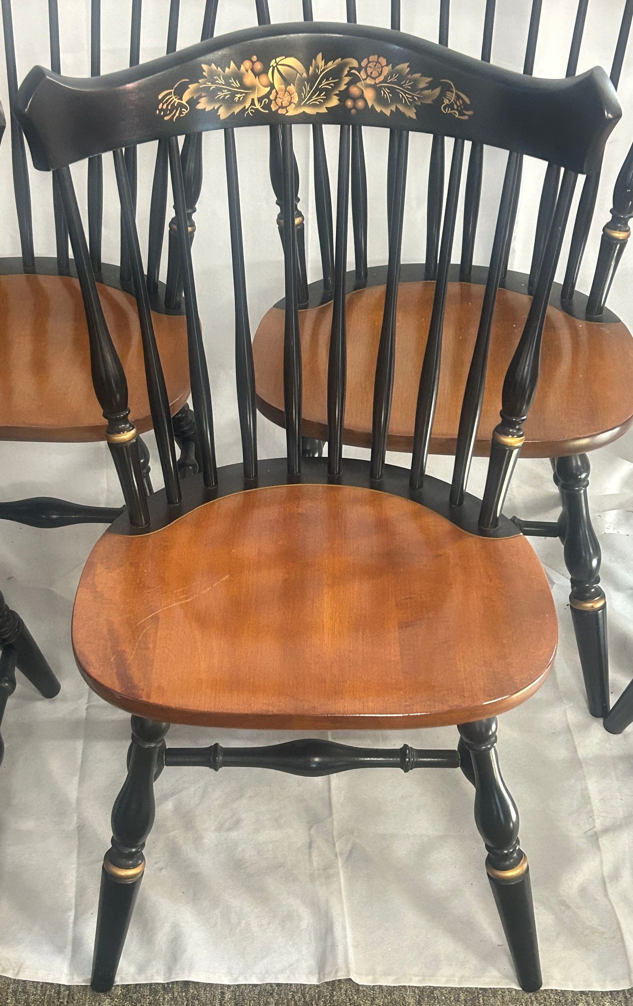 6 Pcs Hitchcock 2-Tone Stenciled Dining Room Chairs, Excellent Condition, Sturdy