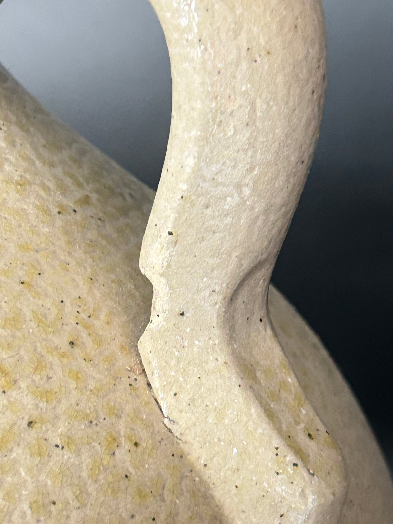 There is a chip to the handle and rim (see pics).