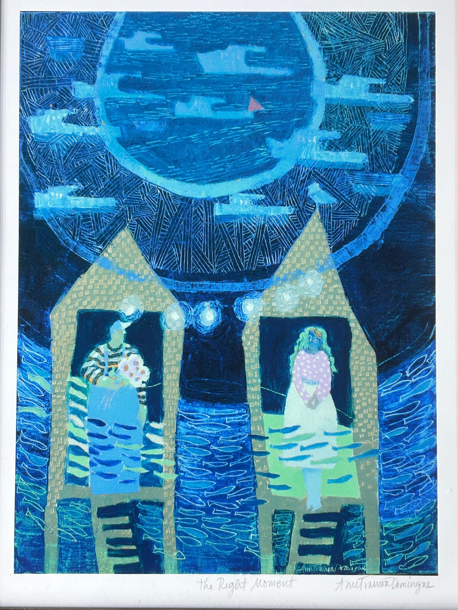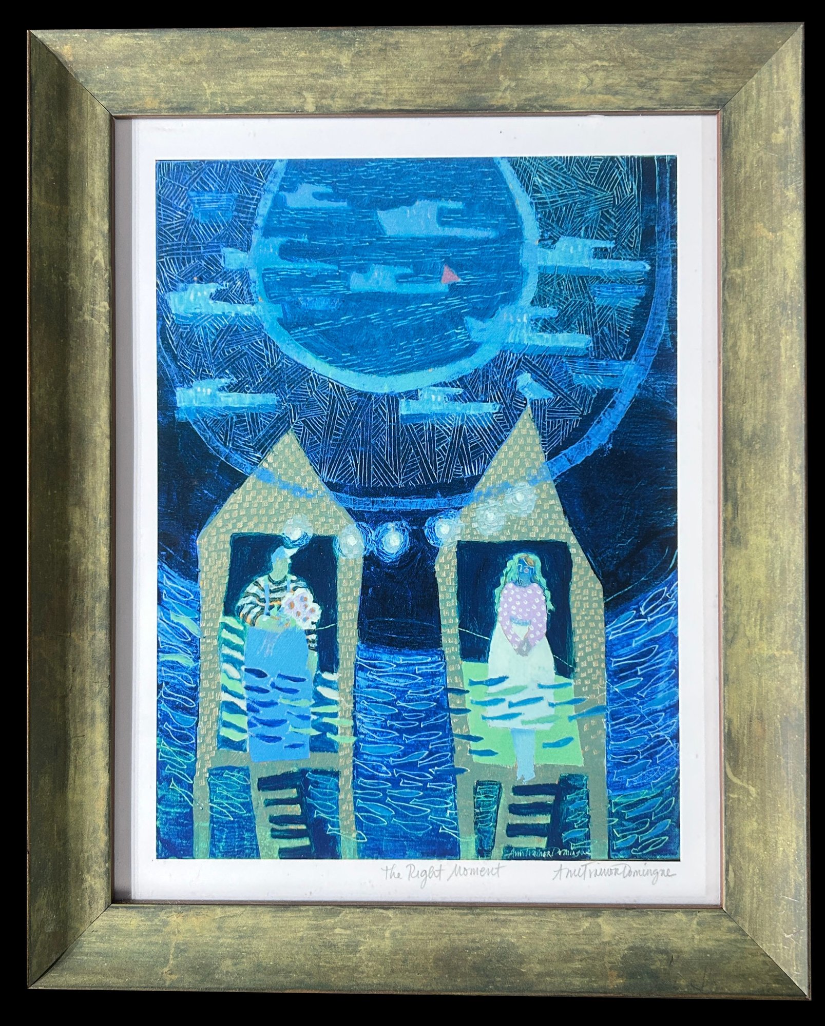 Framed Pencil Signed Print "The Right Moment" By Ann Trainor Domingue, 10.75" X 13.25"H