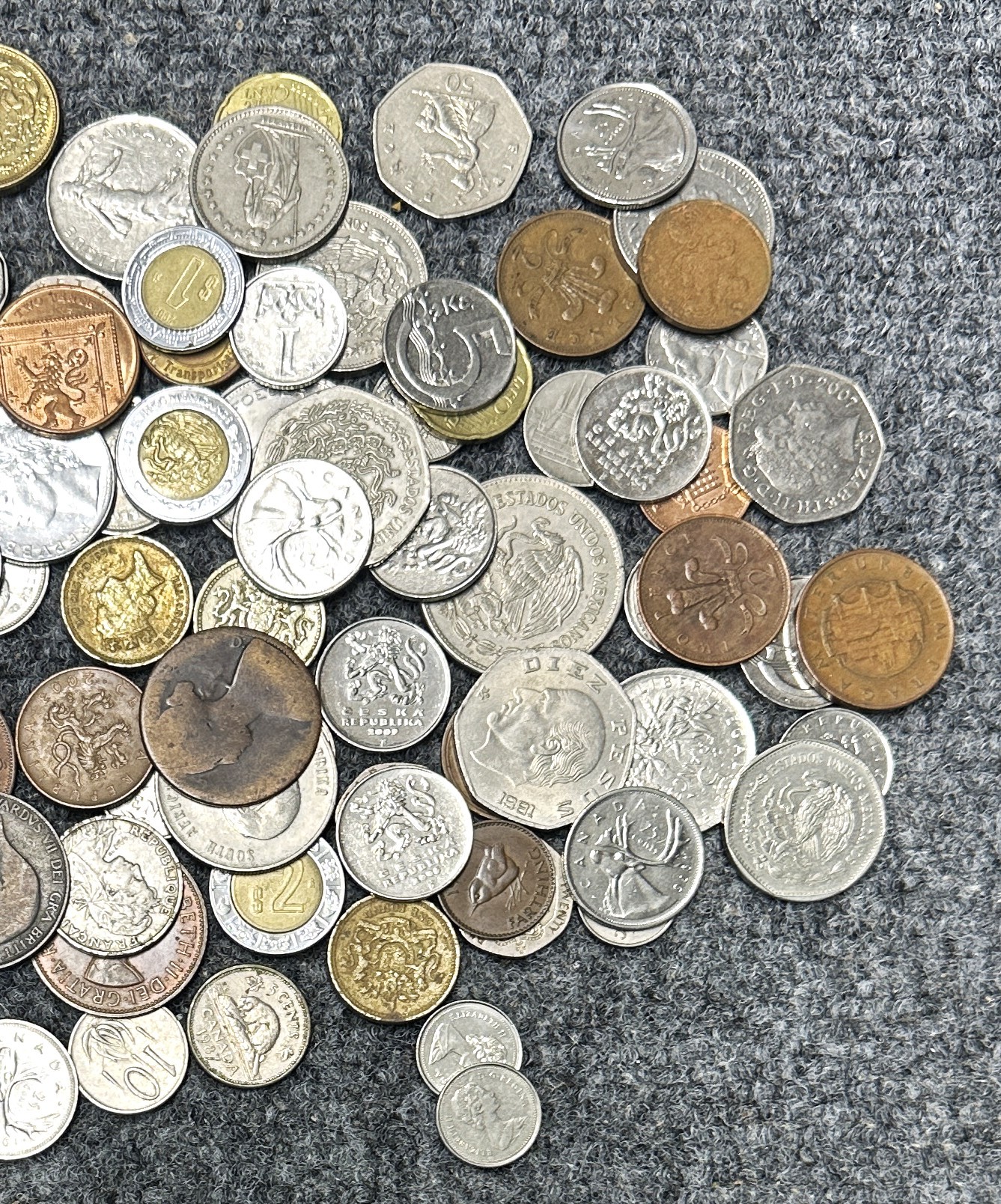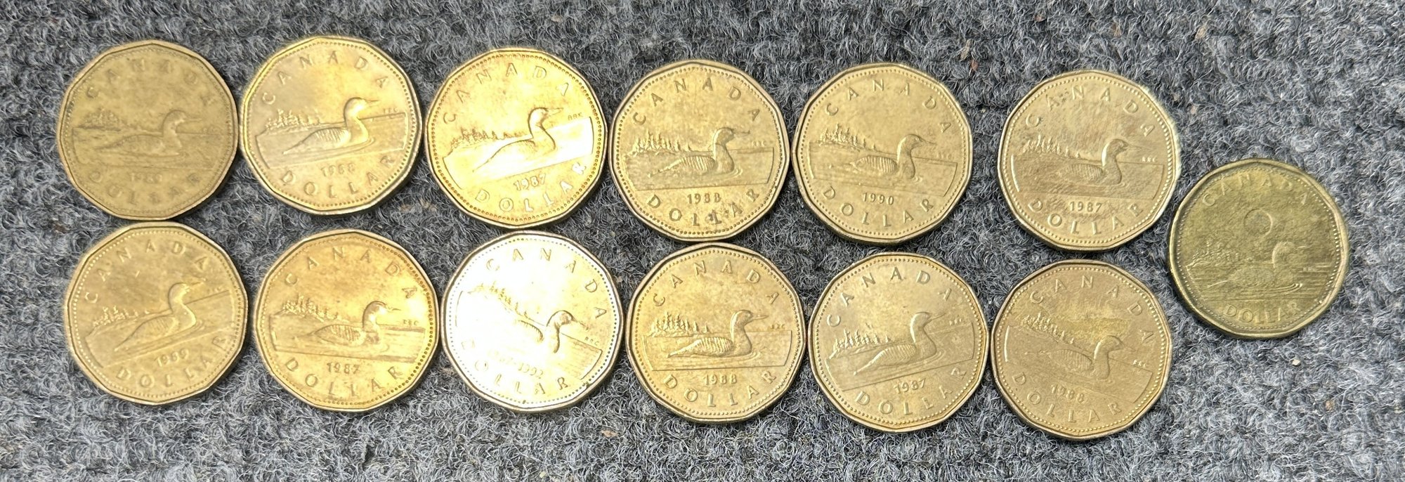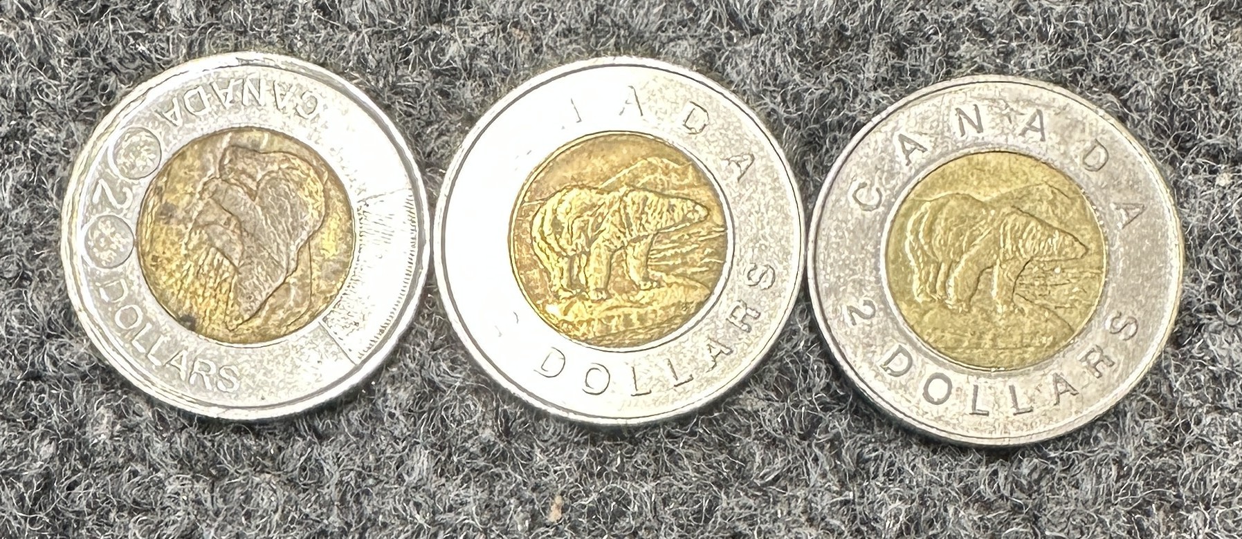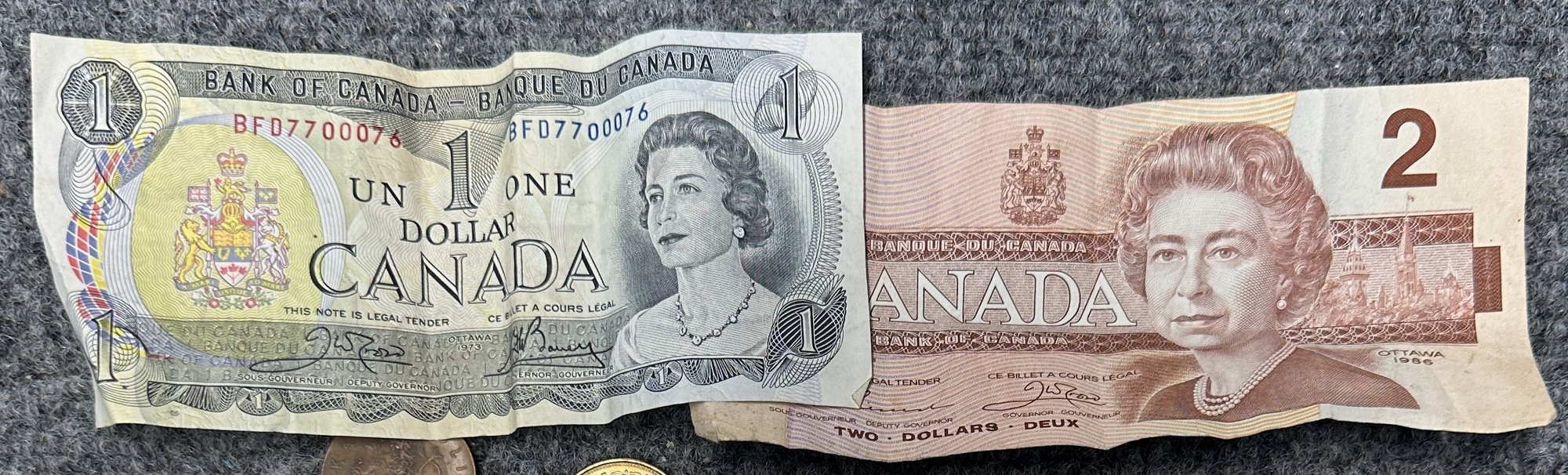 Lot Of Foreign Coins - 1 Lb 13 Oz - Includes 3 Canada 2$ Coins And 13 Canada 1$ Coins & 2 Canada Bills
