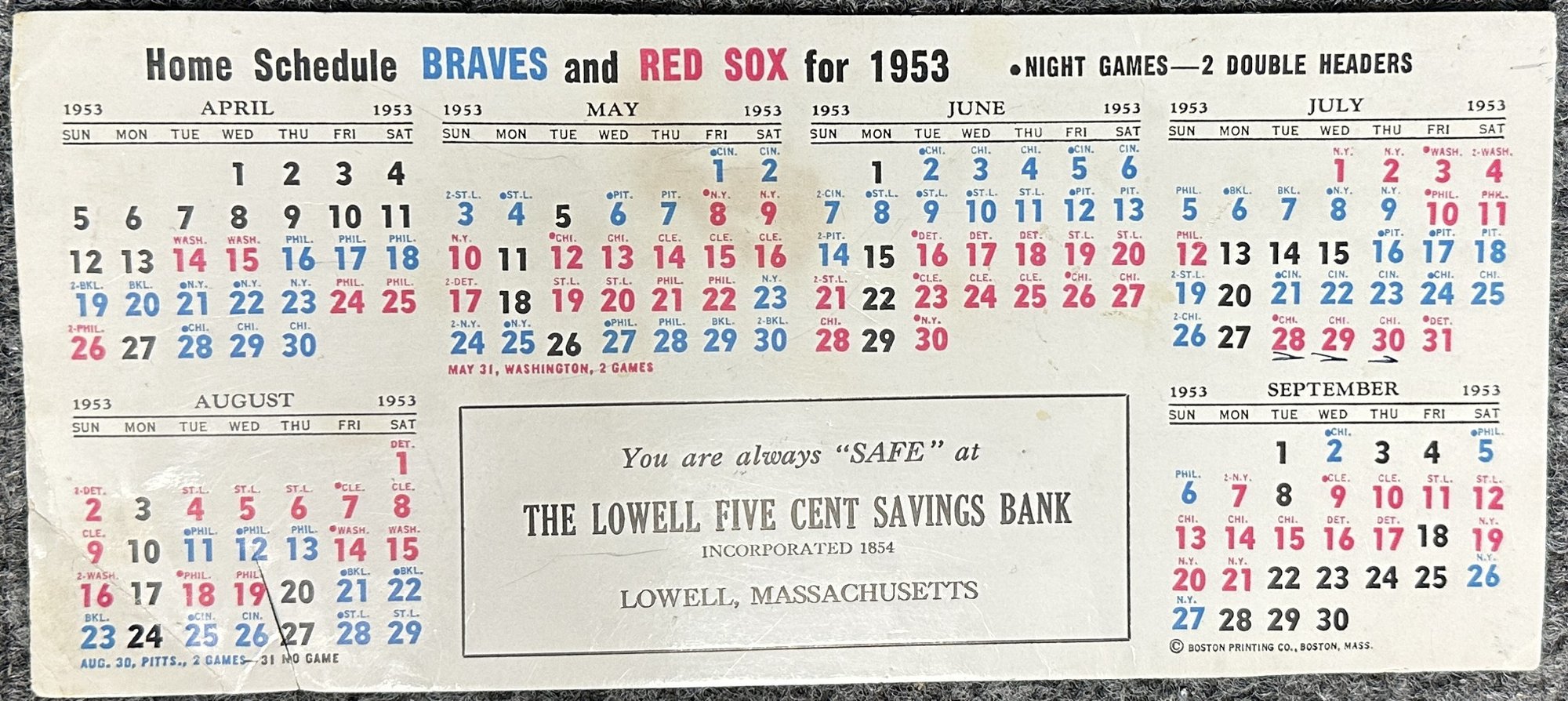 Group Of 30 Mixed Ticket Stubs And 1 Blotter From 1953 With Red Sox Schedule (sm. Cut On Bottom)