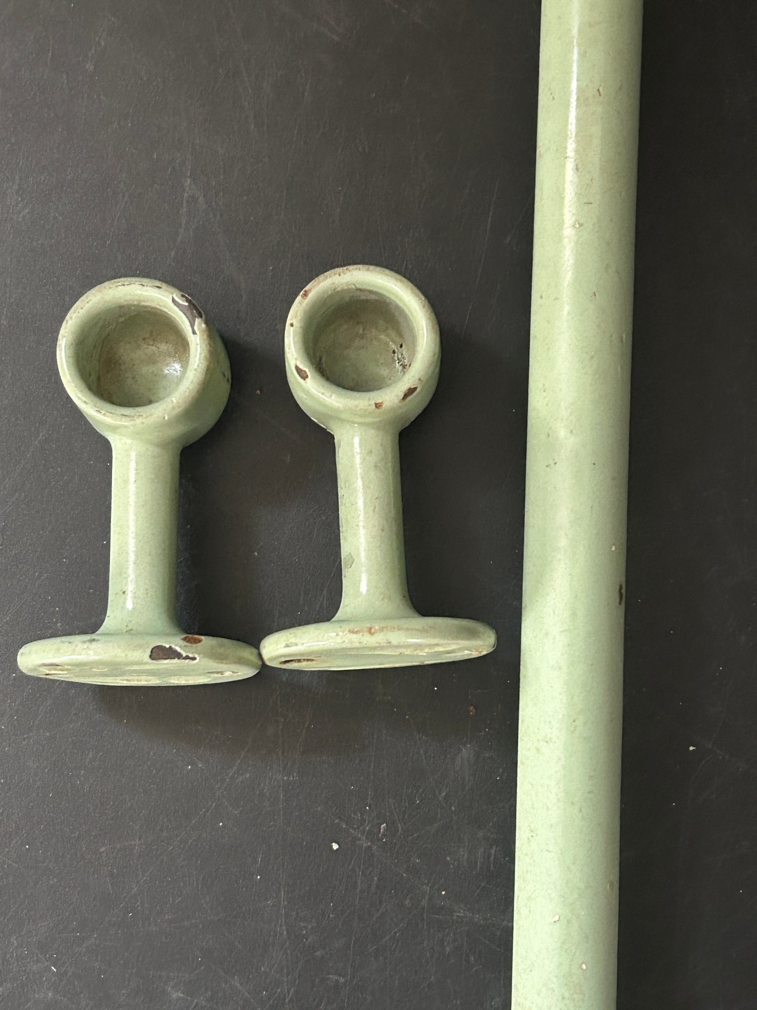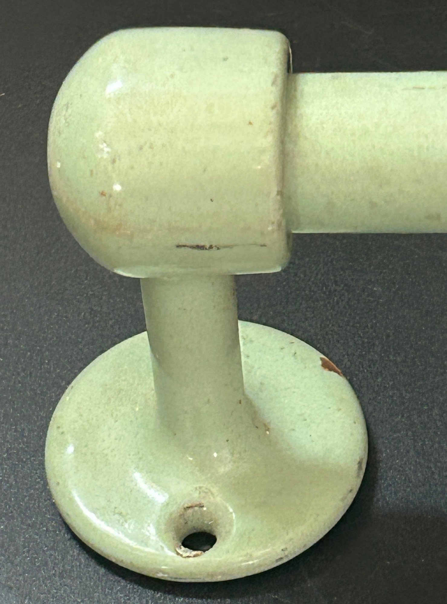 Vintage 1940s Enamel On Metal Pale Green Towel Rack, 25"L
