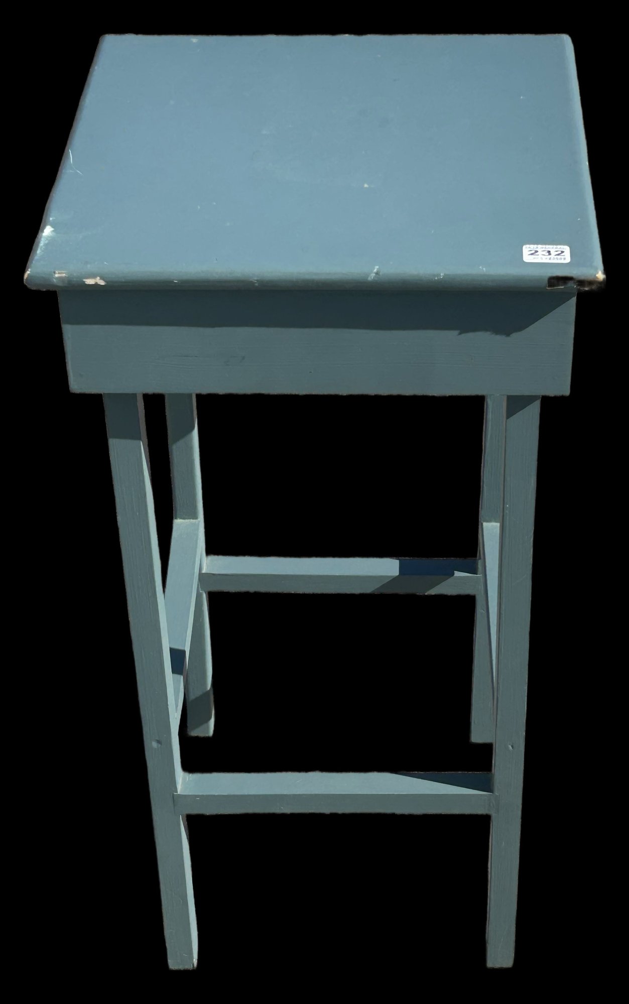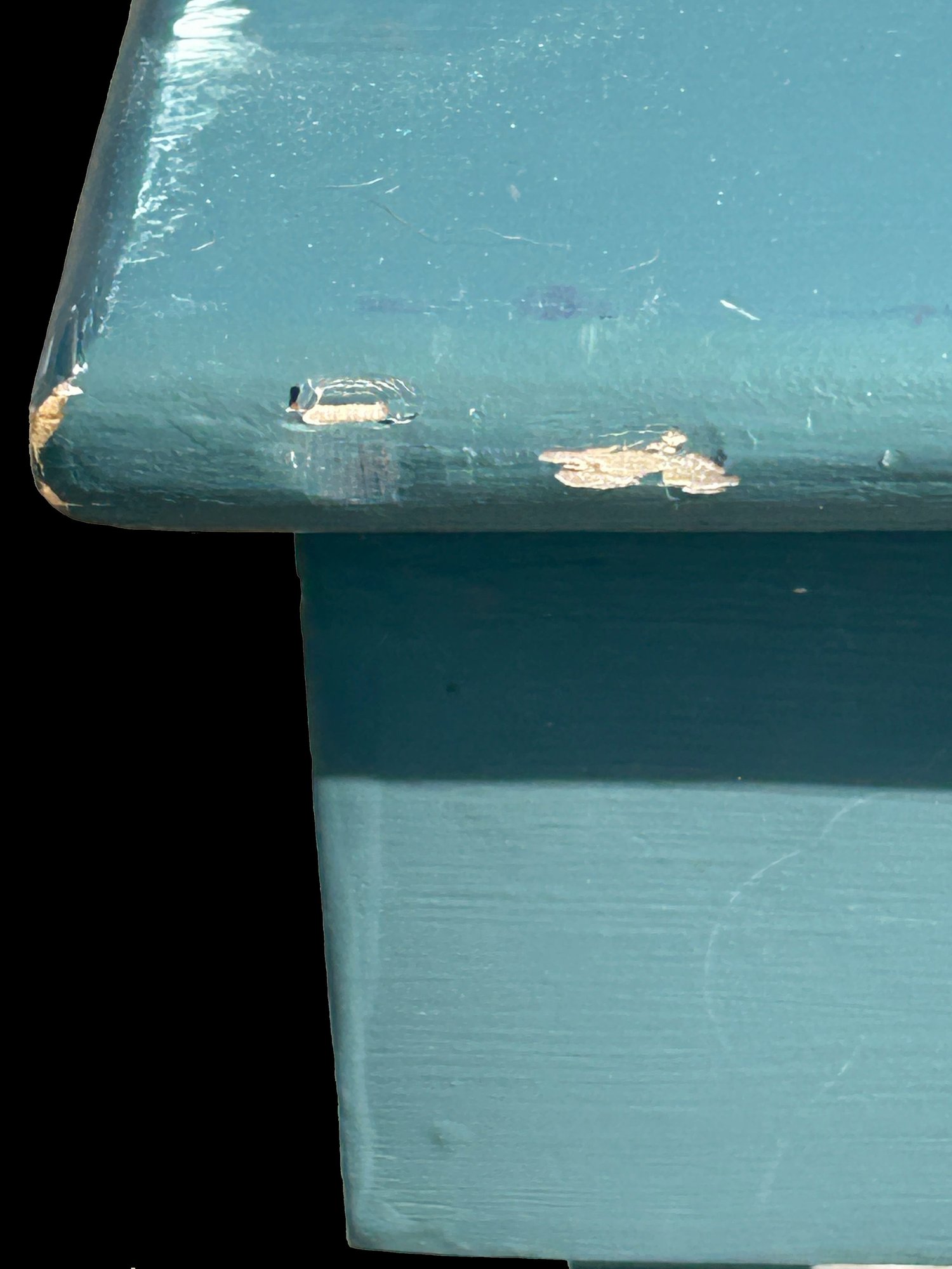 Vintage Teal Painted Wooden Lamp Stand, 15" Sq X 28.5"H