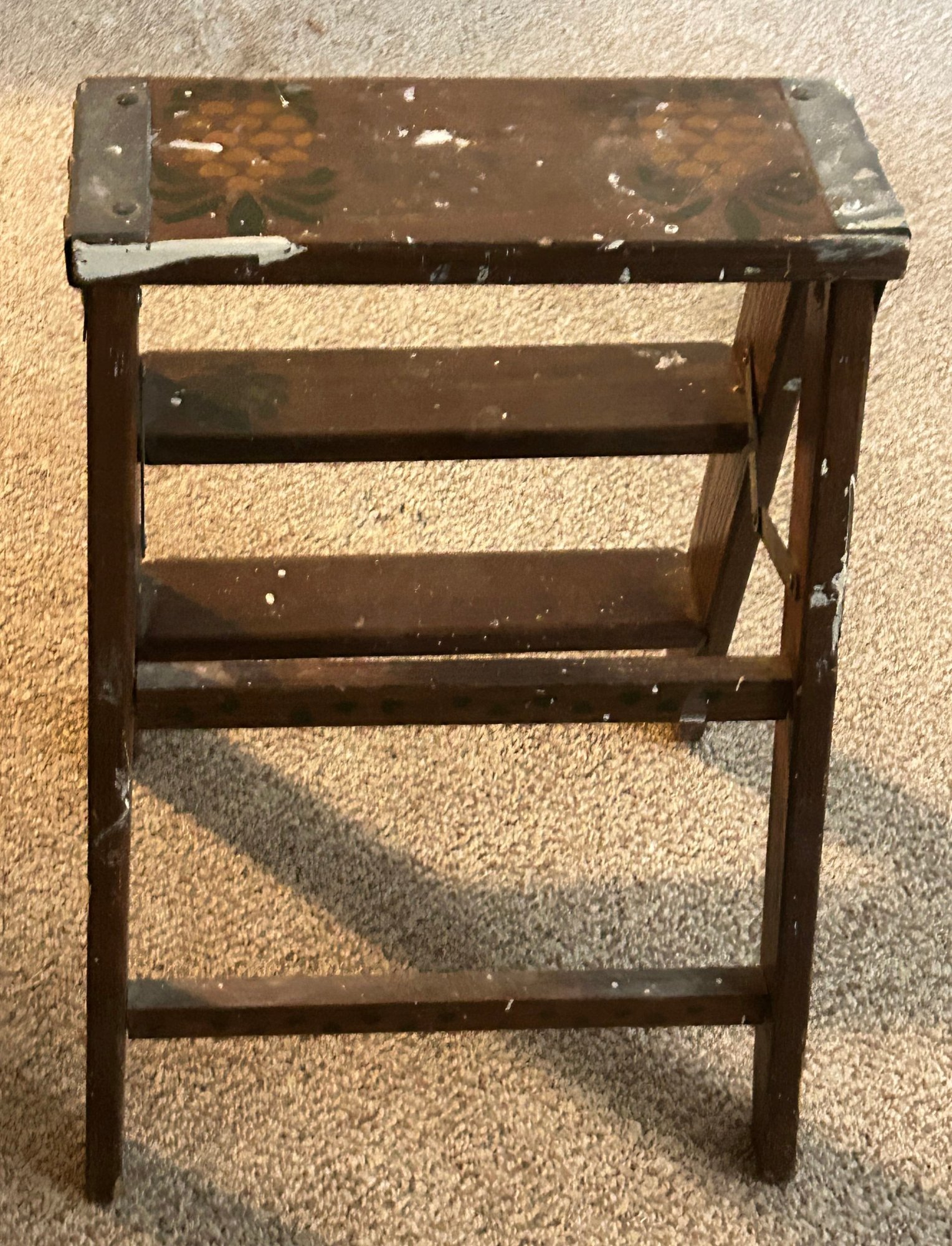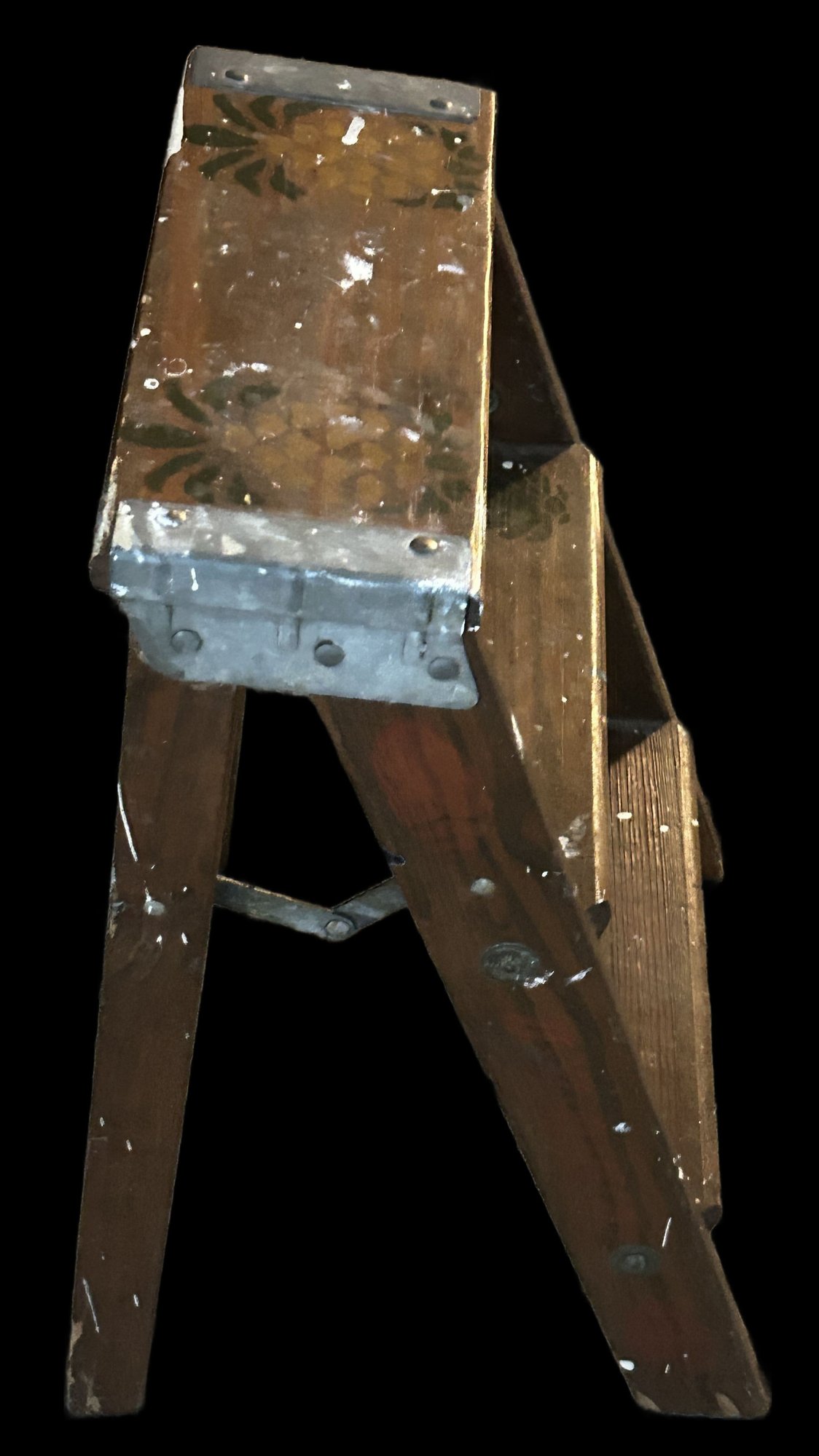 Vintage Wooden 2-Step Ladder With Pineapple Stencil, 13" X 18" X 22"H