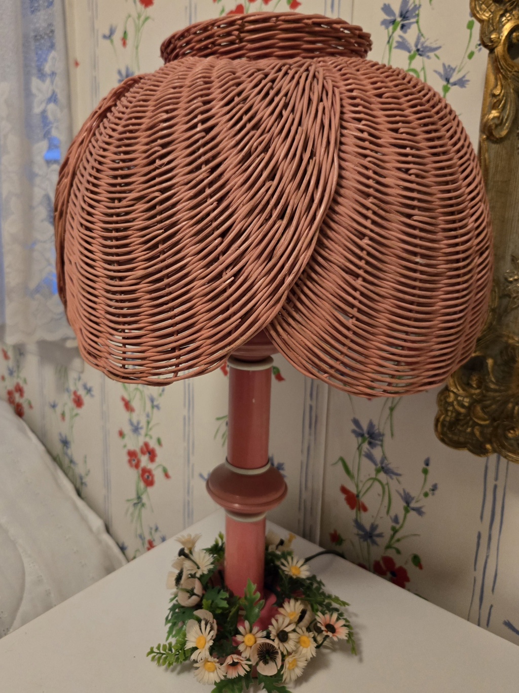 Rose Colored Rattan Lamp
