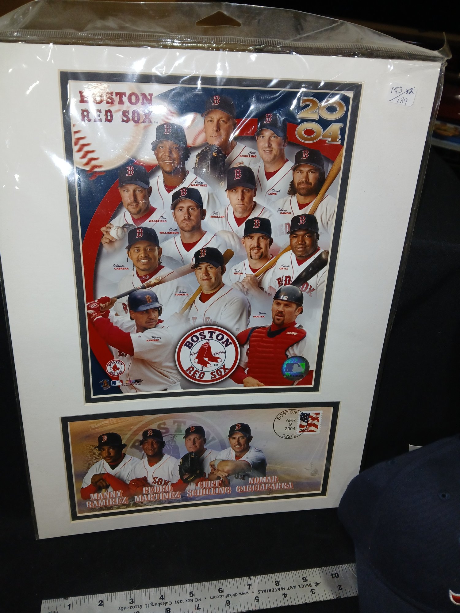 2004 Red Sox Starters Photo and First day cover (framable) & Red Sox Hat - official MLB