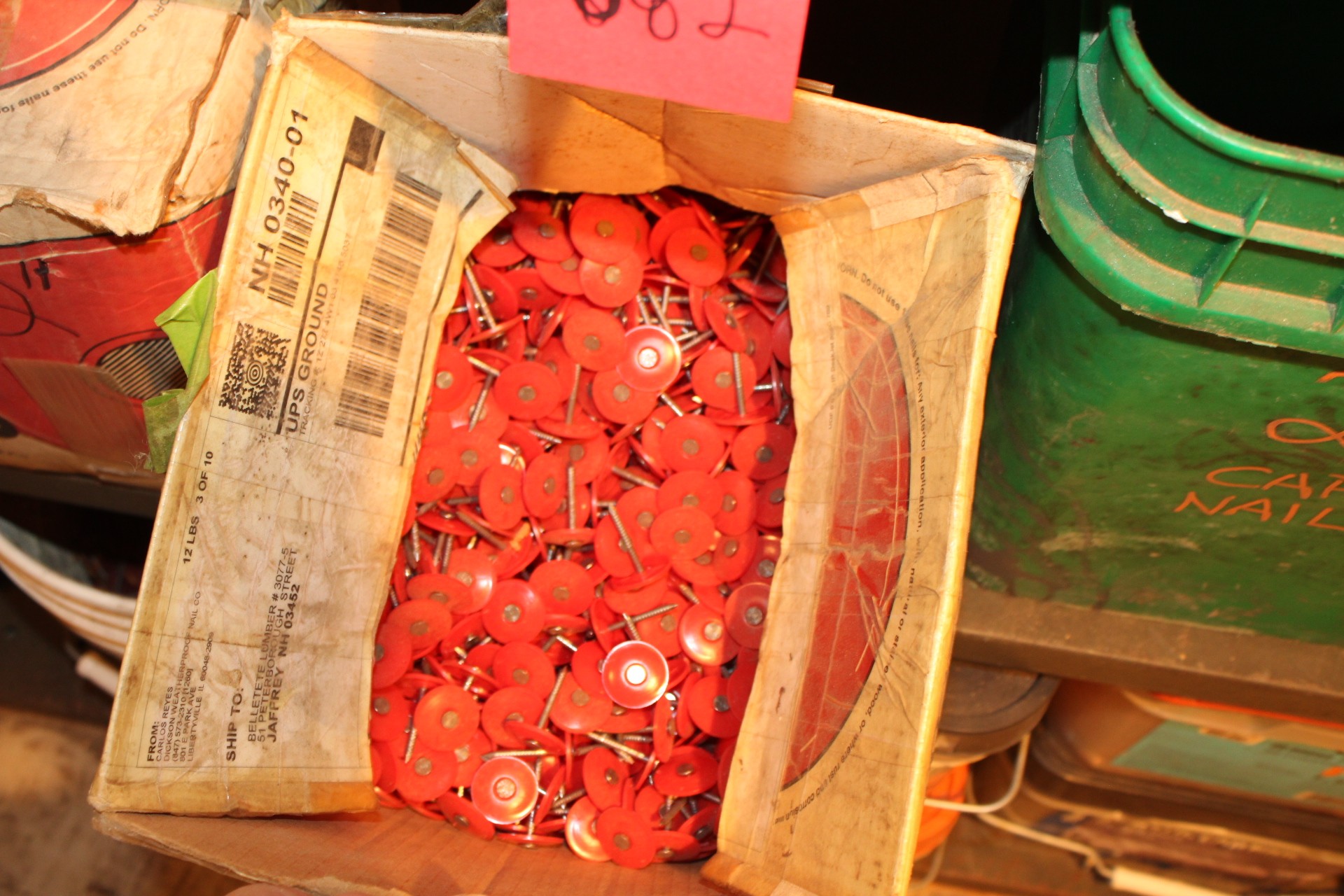 2in red cap nails 3 cases some green cap