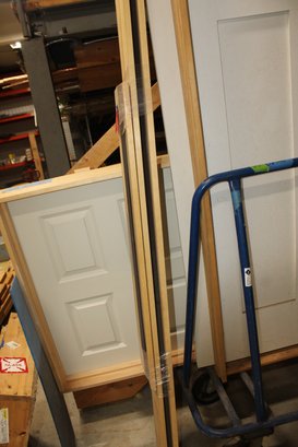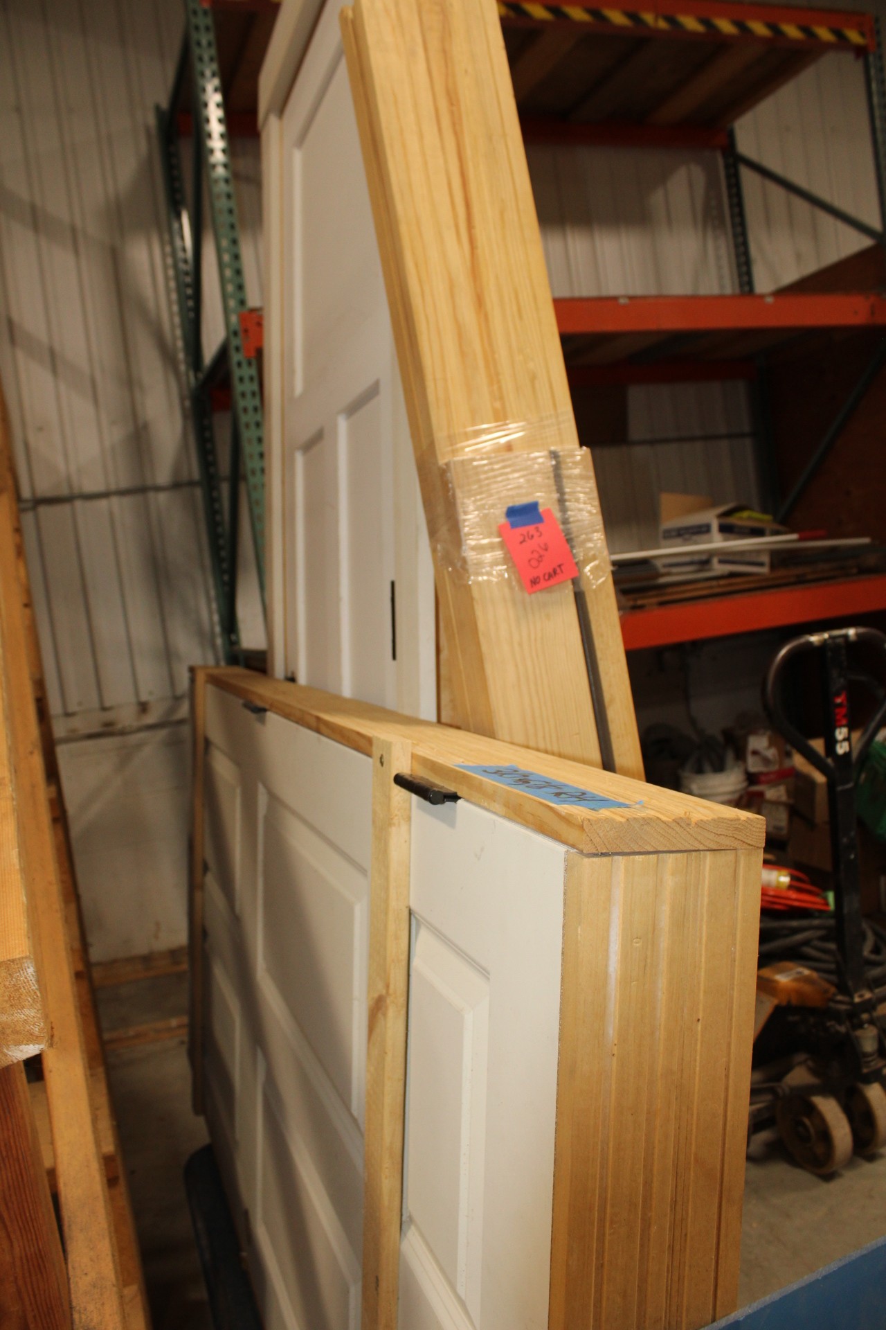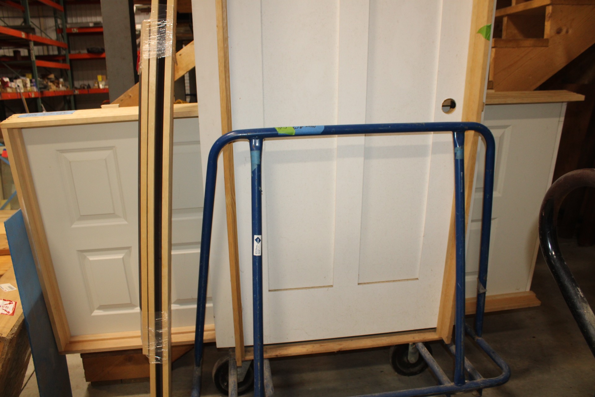 3 exerior doors and frames 36x78, 32x80 misc sizes , cart not included