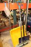 3 snow shovels and roof rake