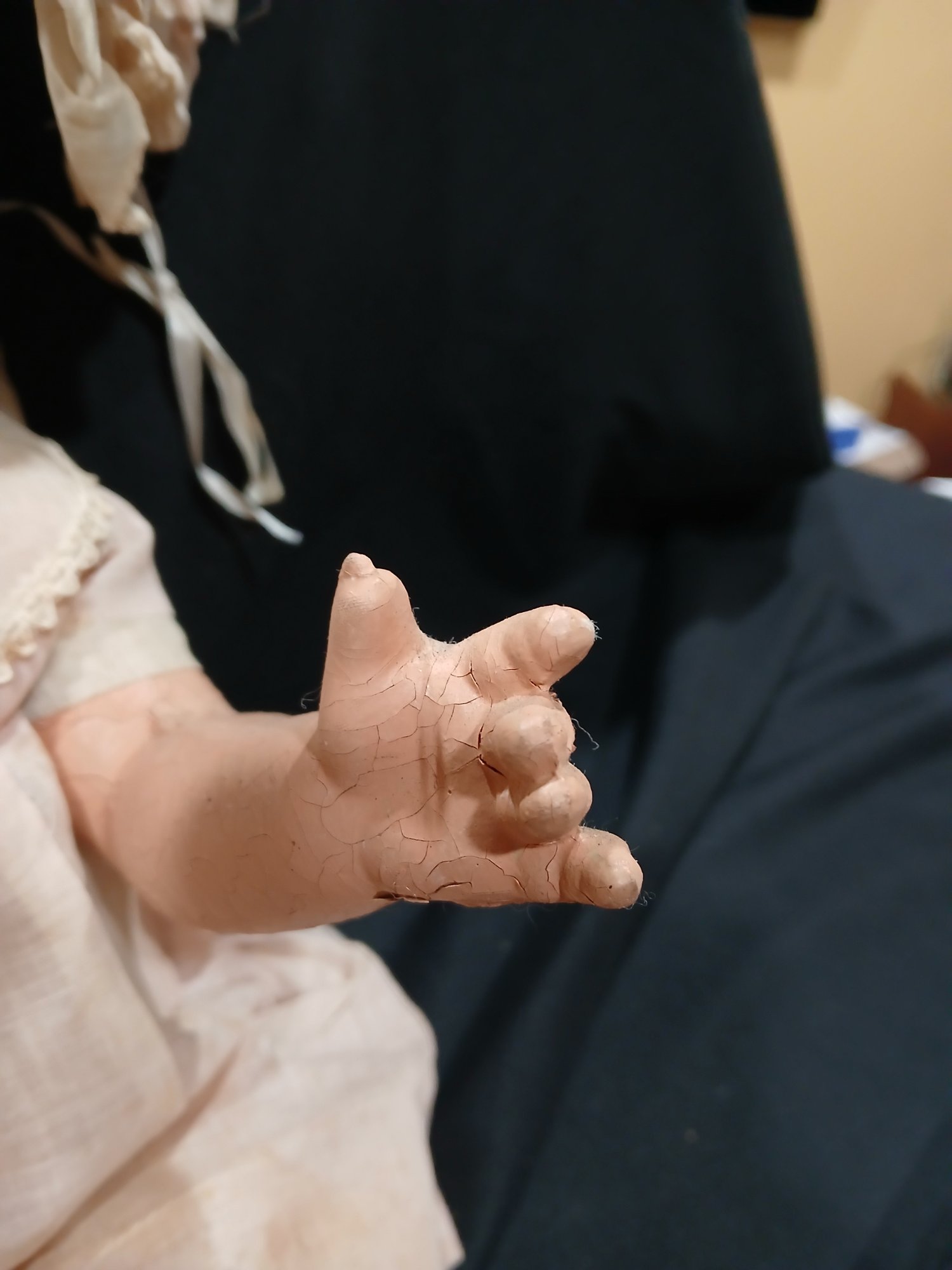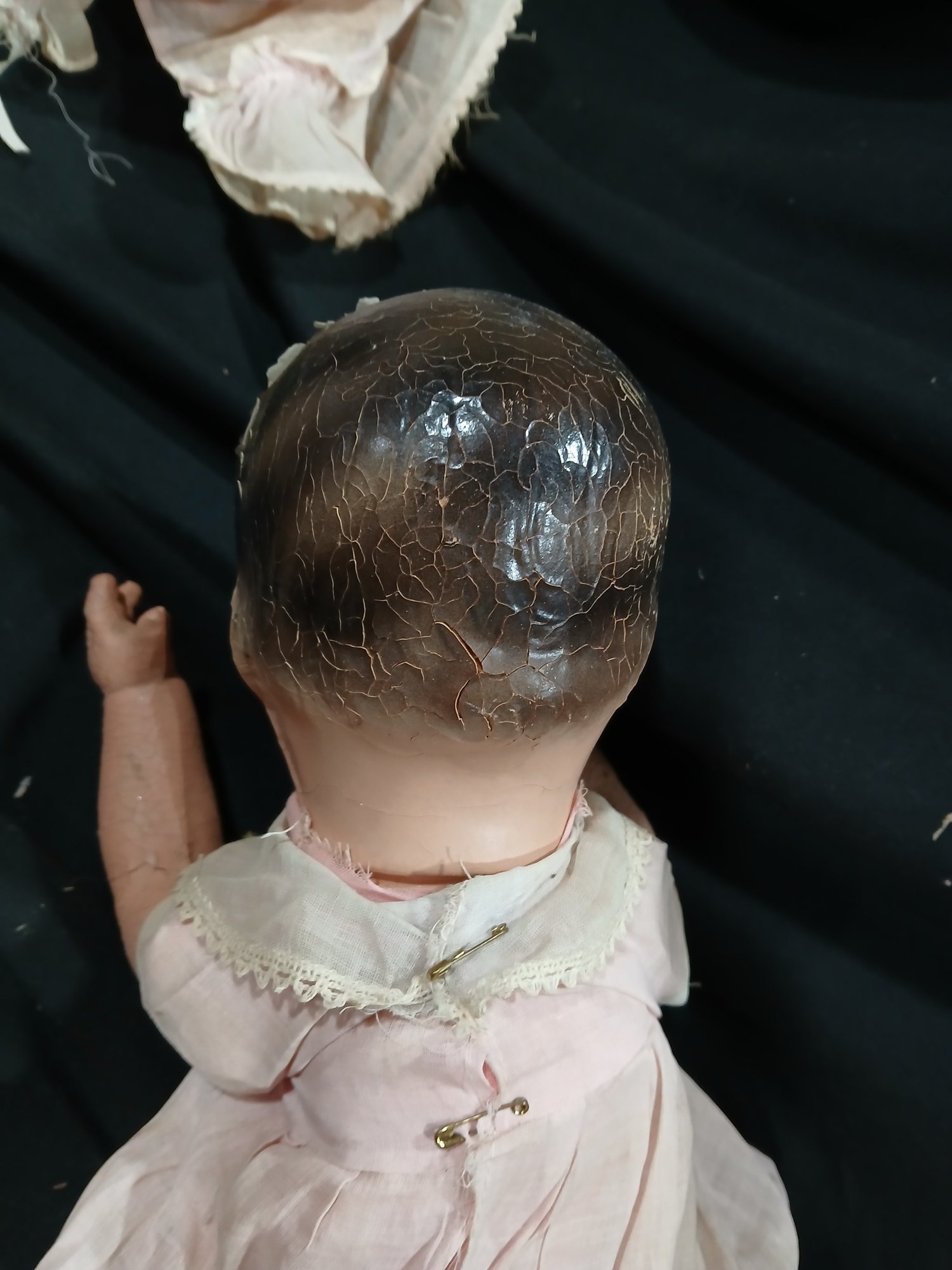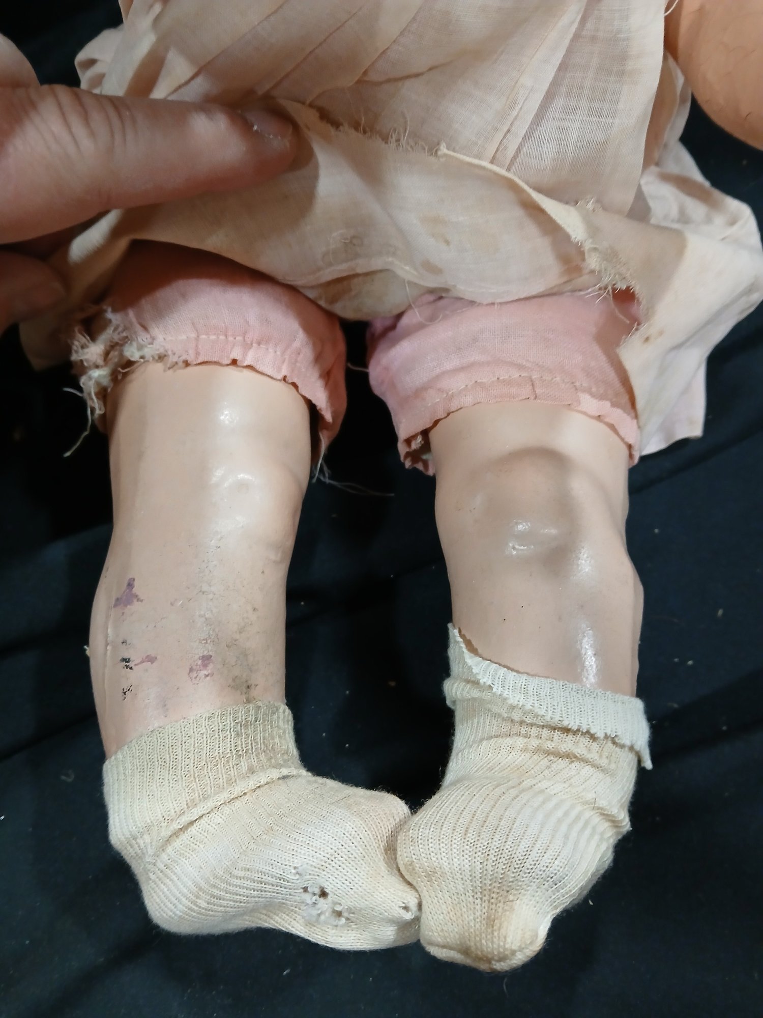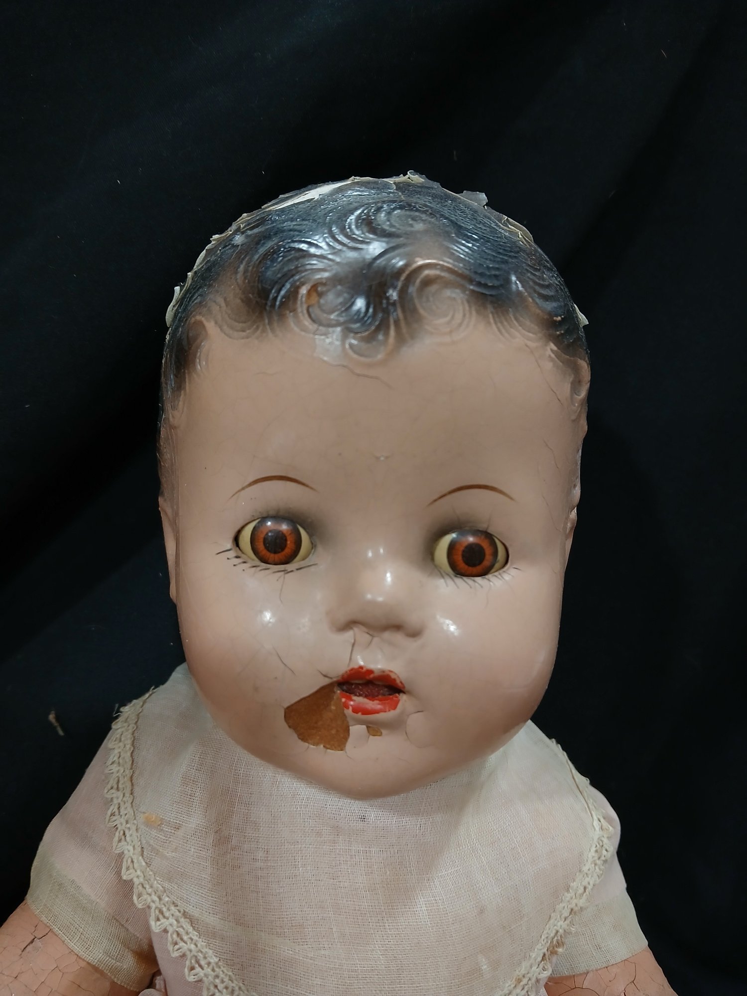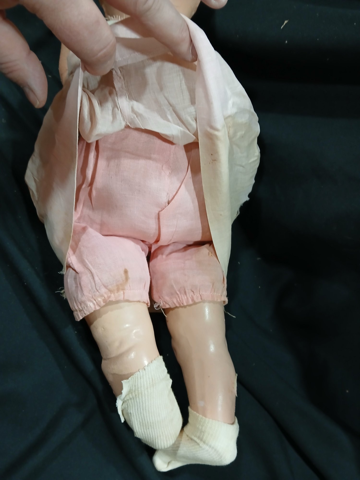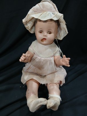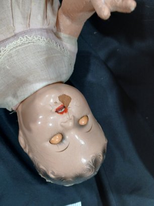 Antique Doll-Composition Head, legs, arms, Original Clothing,rolling eyes, Fabric Abdomen, Approx 18"