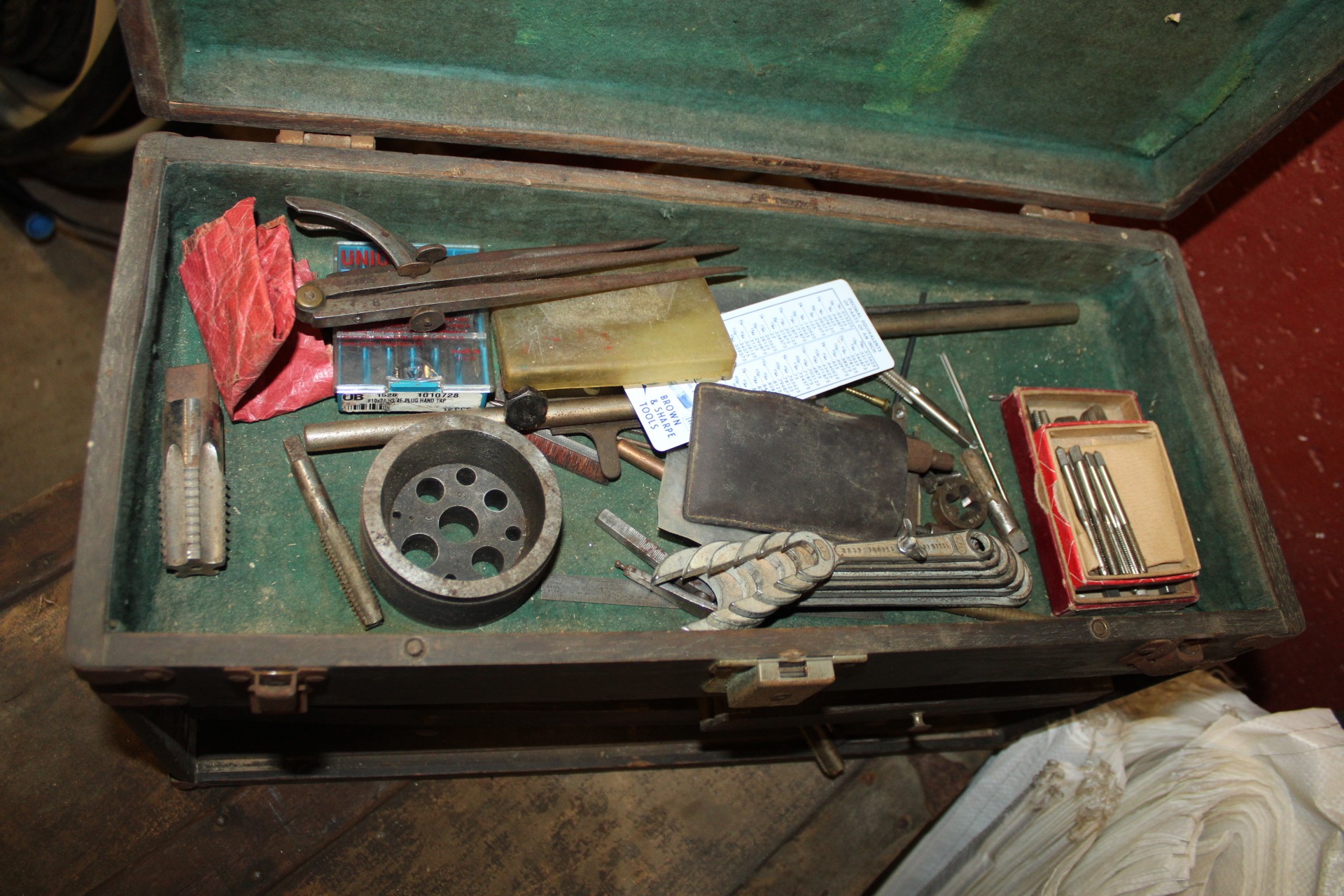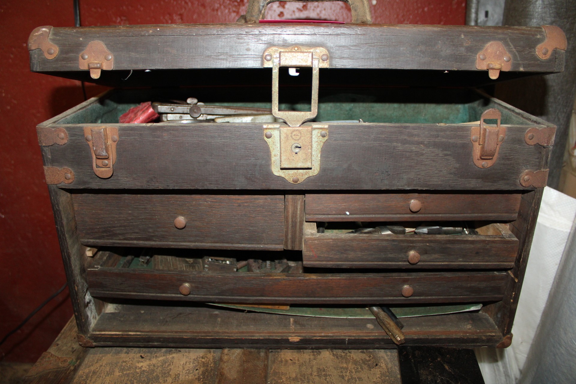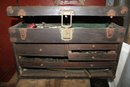 Antique machinist toolbox with some tools, and antique trunk