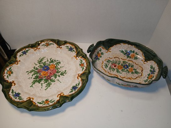 beautiful italian pottery platter and bowl, numbered. see pics