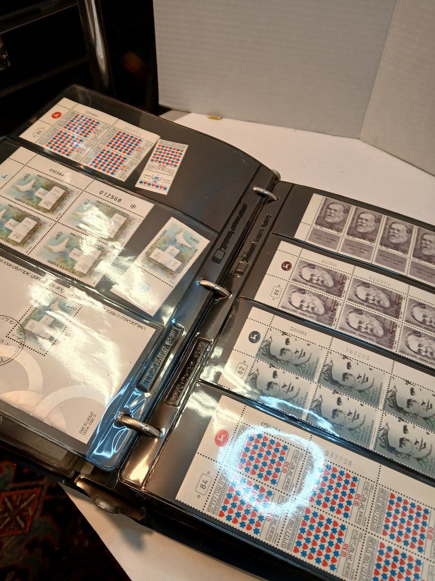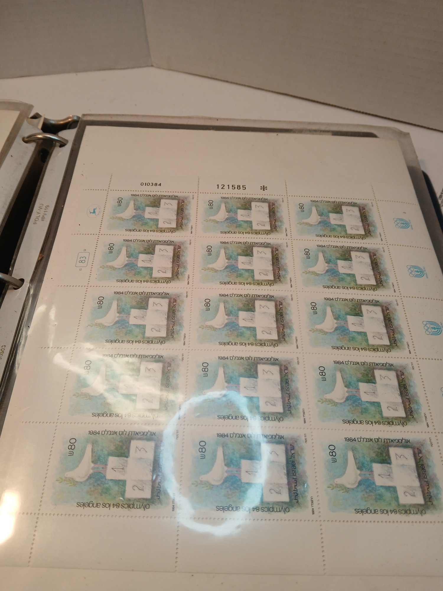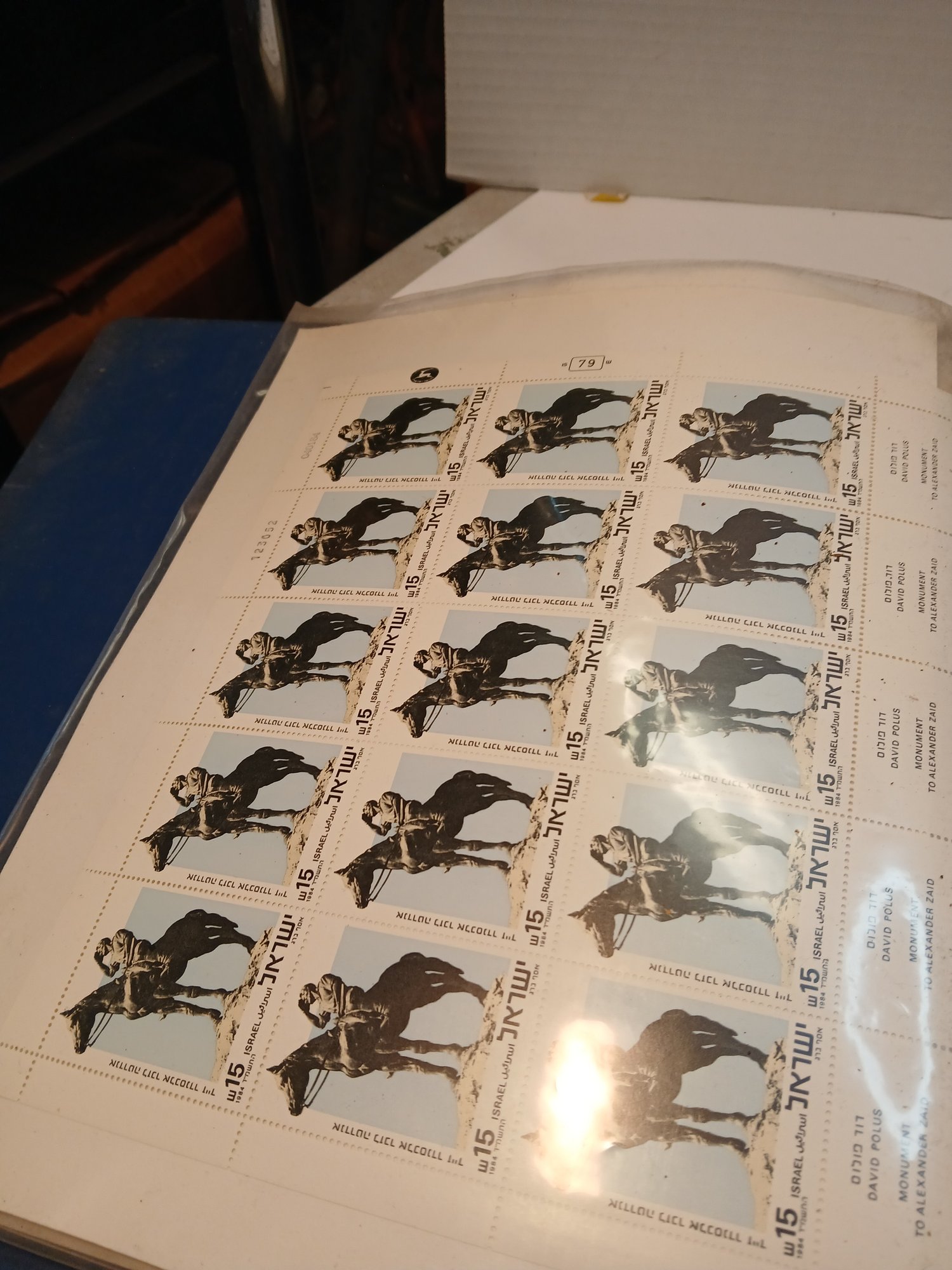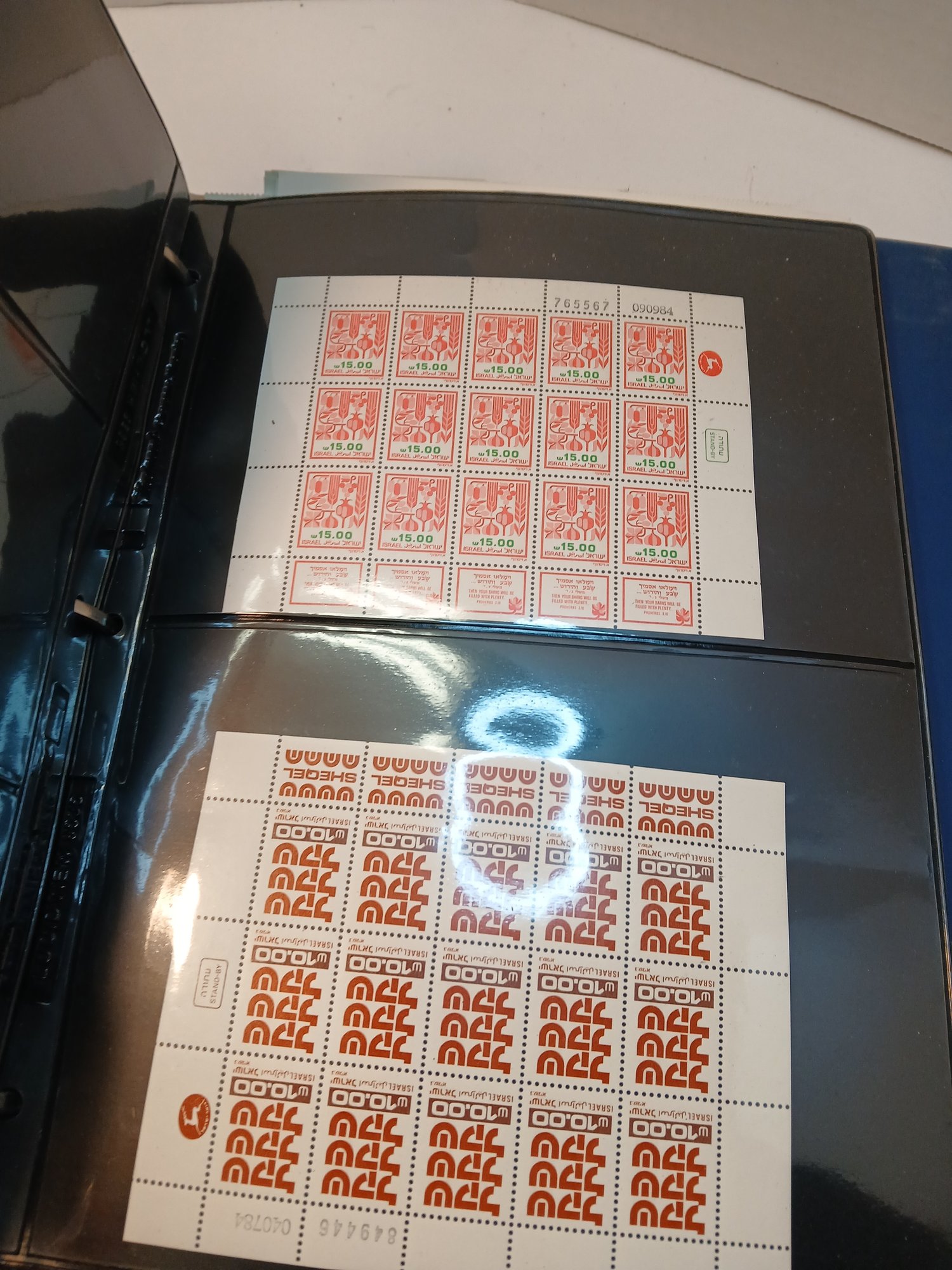 big blue binder mostly full of israeli stamps, various dates and subject matter