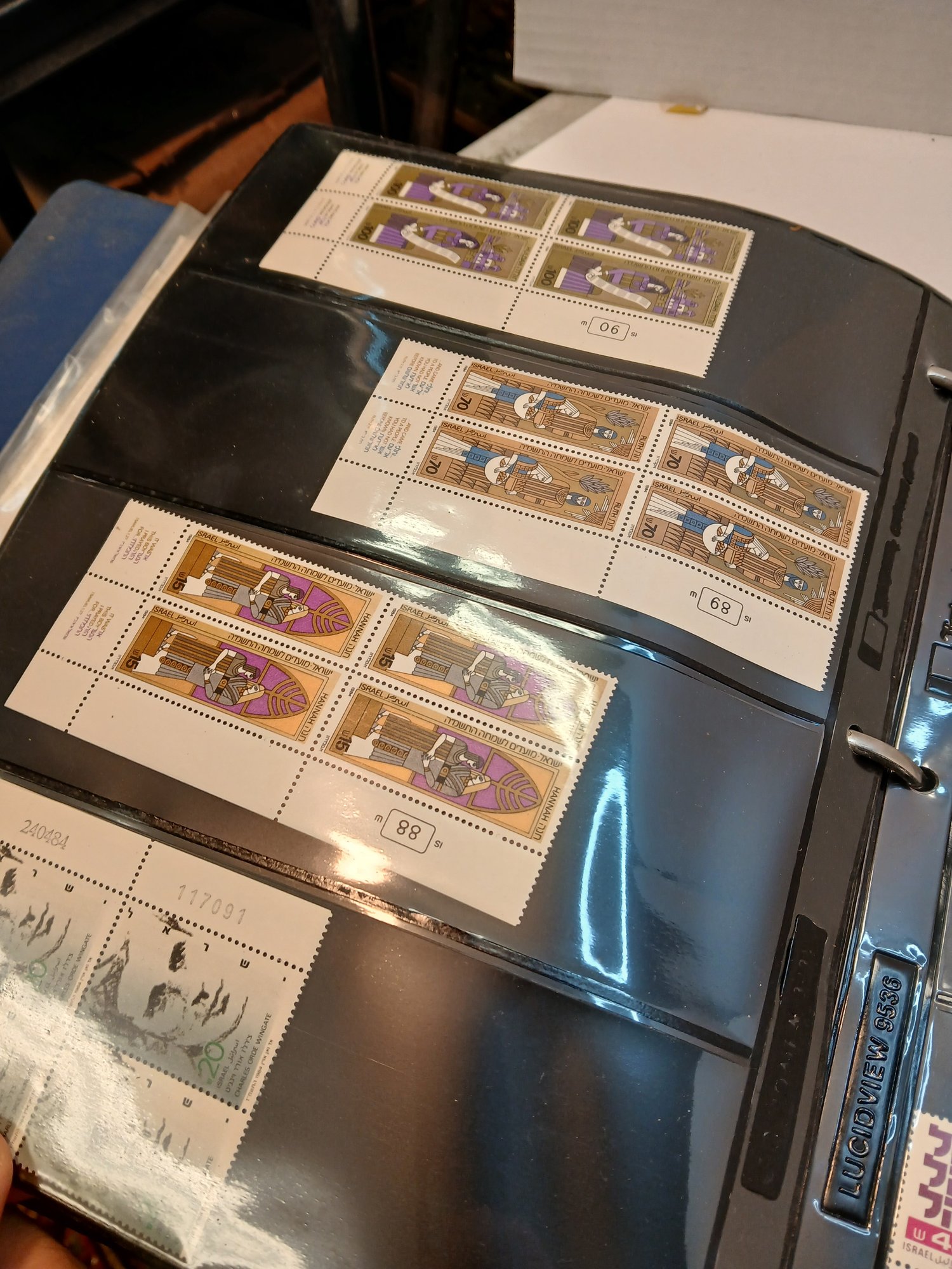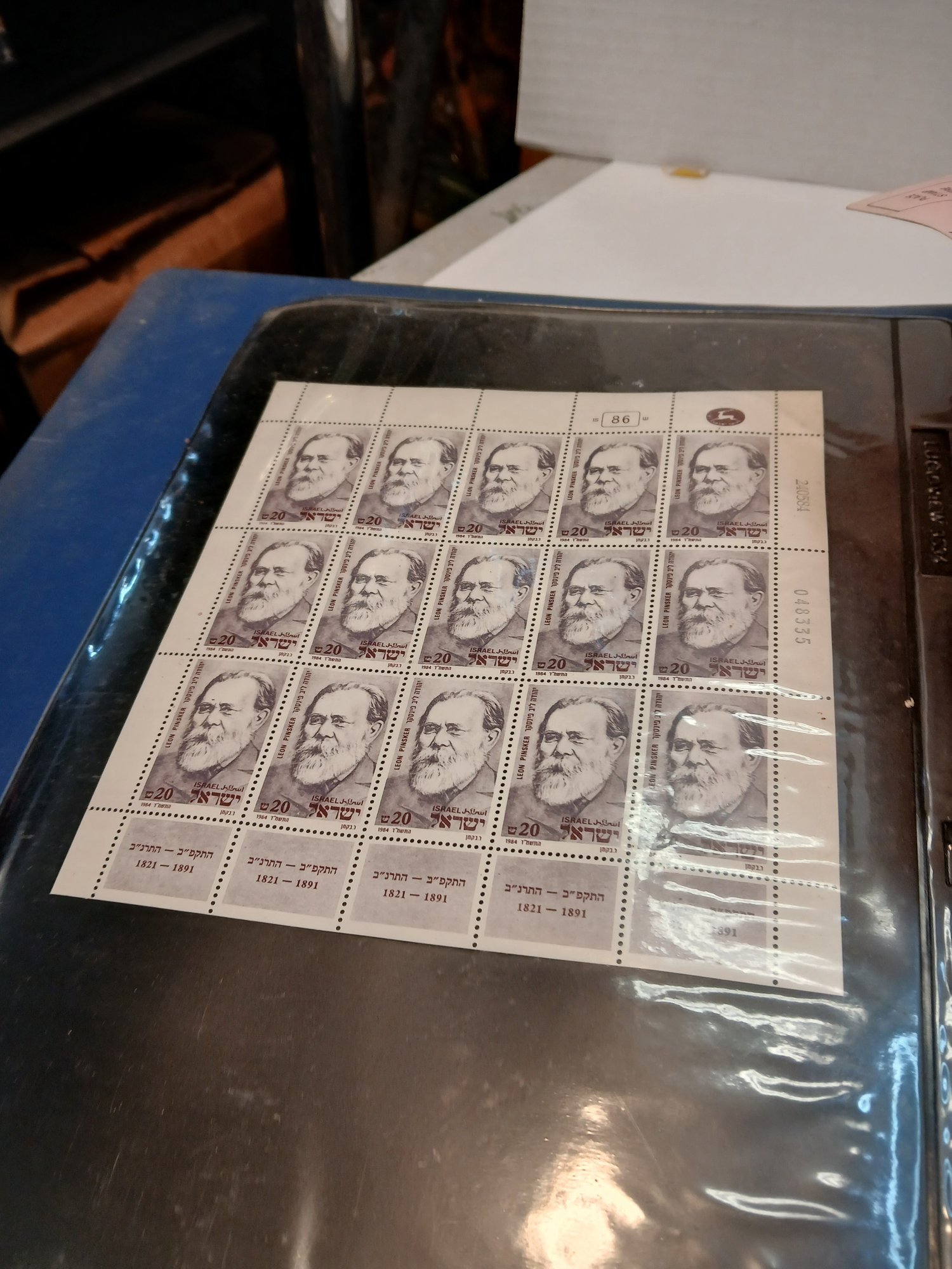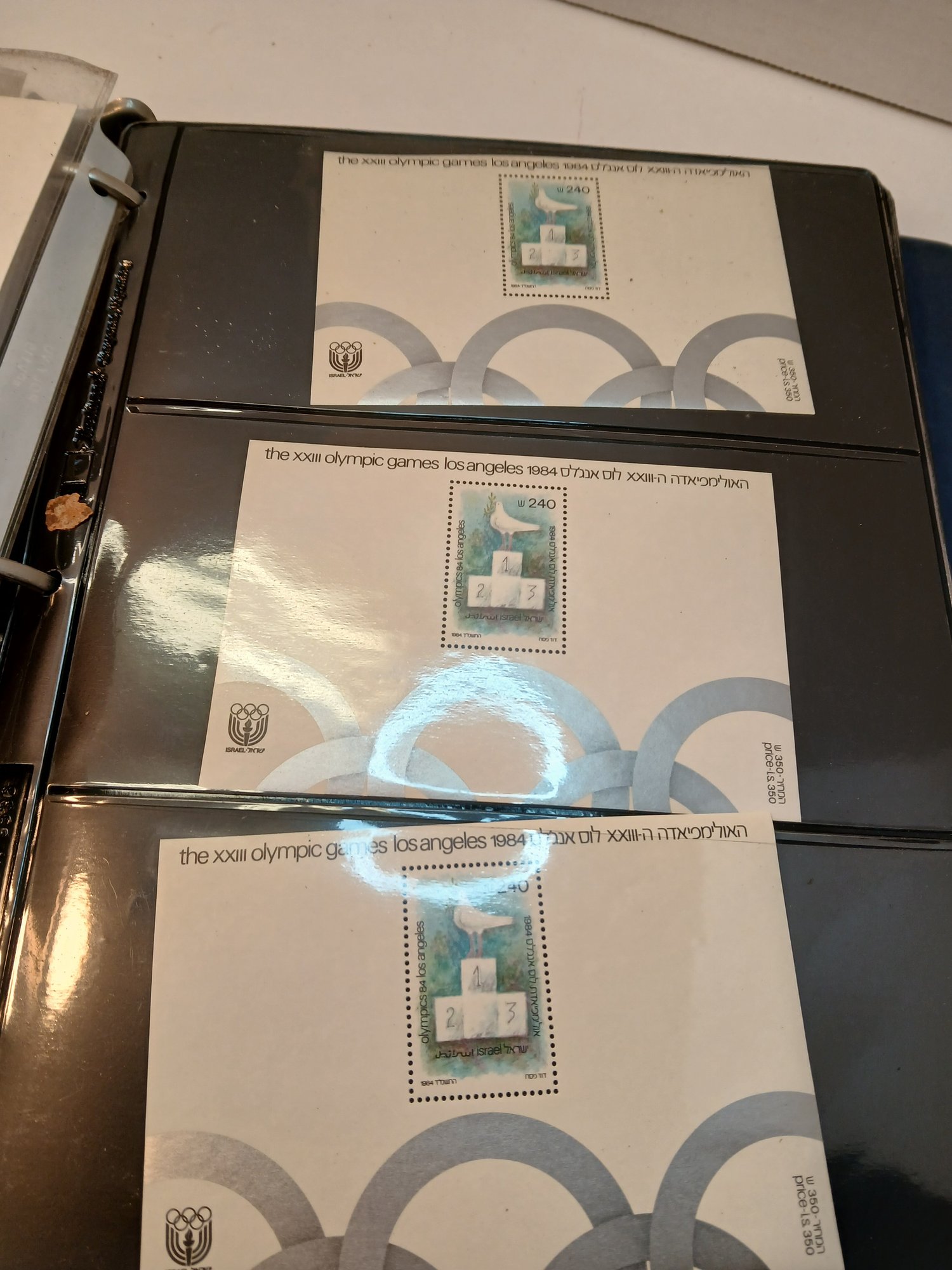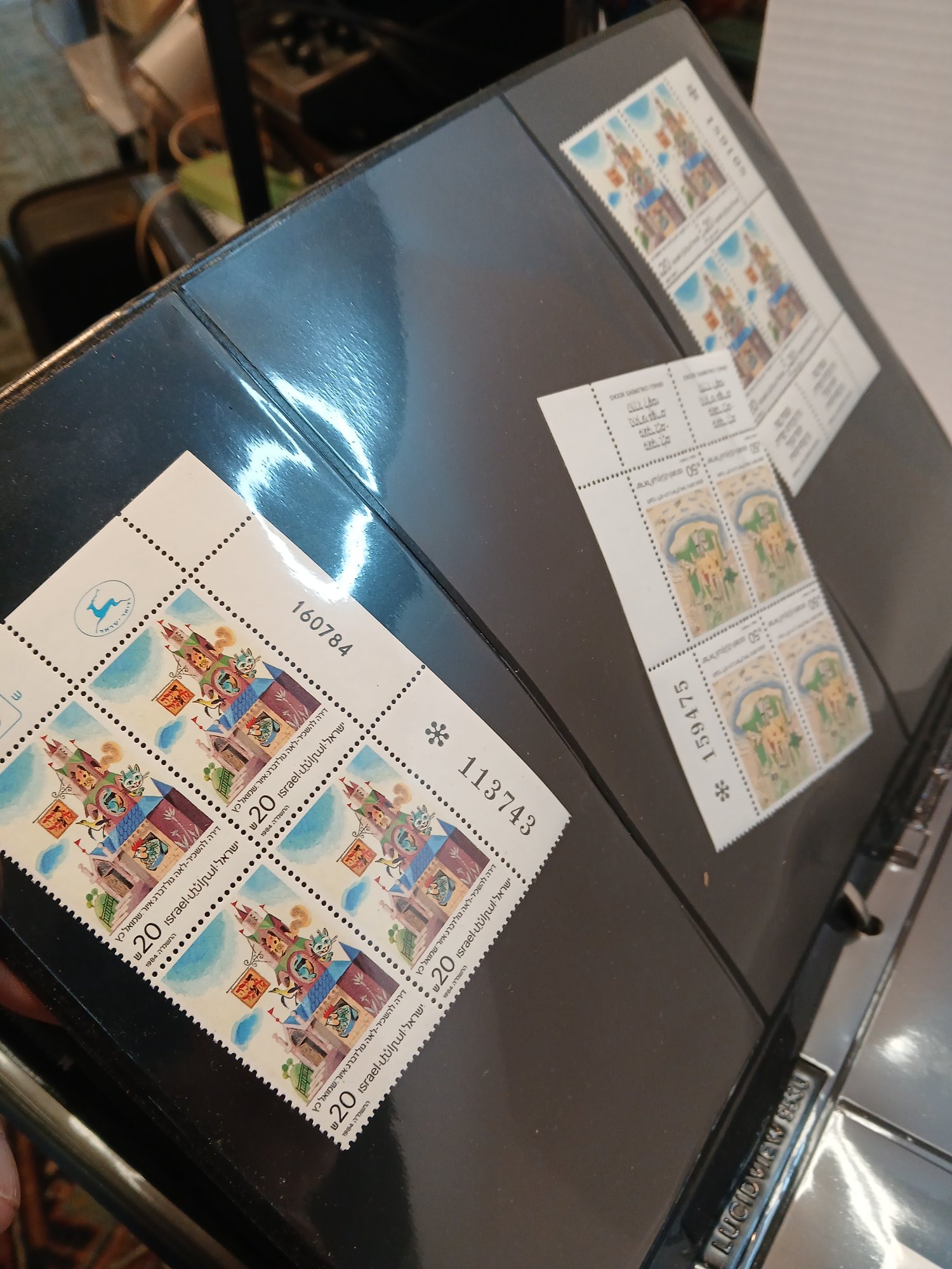 big blue binder mostly full of israeli stamps, various dates and subject matter