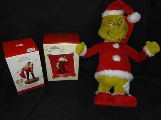 Christmas Theme - Grinch in Santa costume (electronic) & 2 Hallmark keepsakes