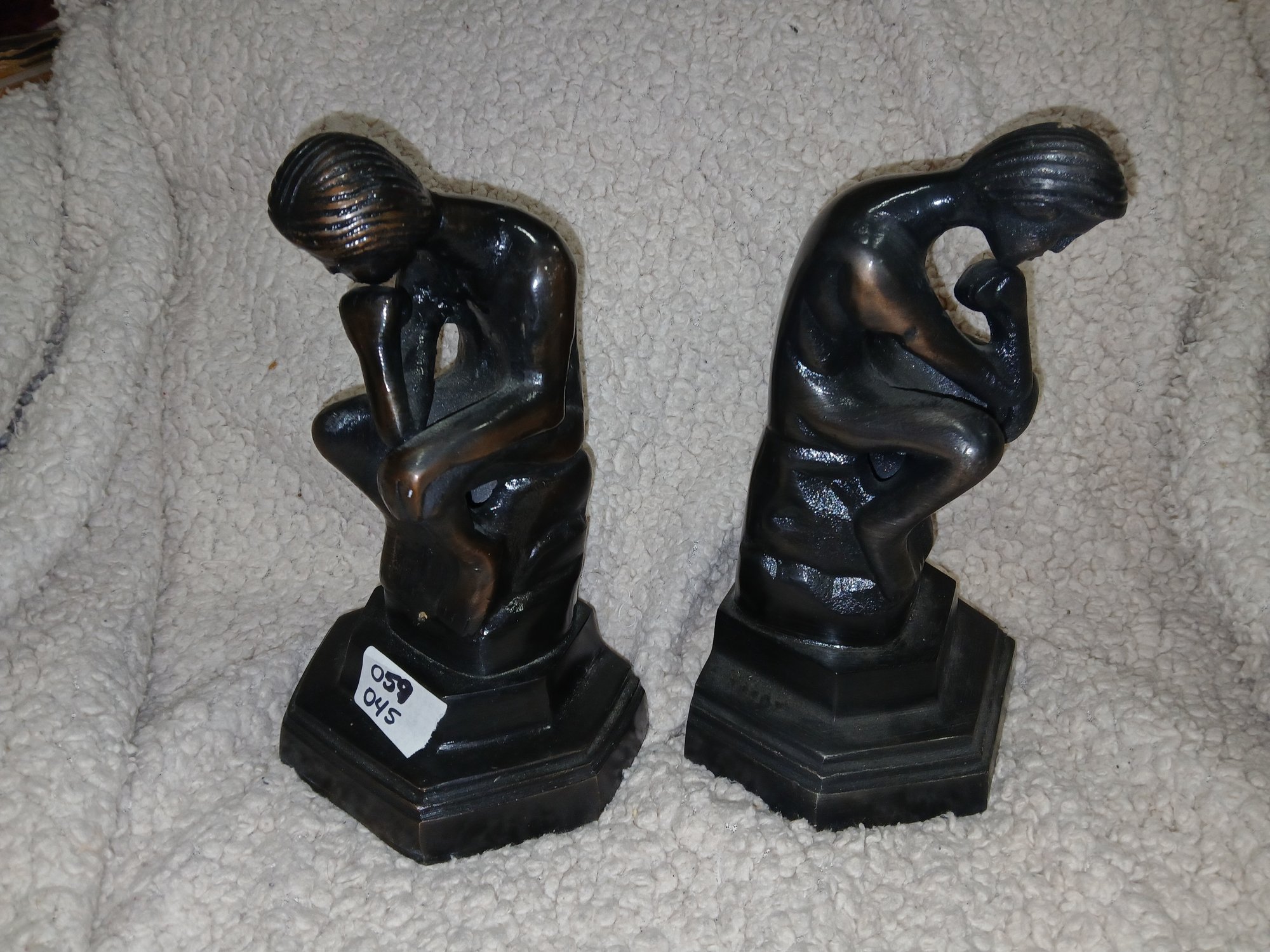 Cool Figurine Bookend - Metal - Where do you do your best thinking? 9"x 4.5" x5"