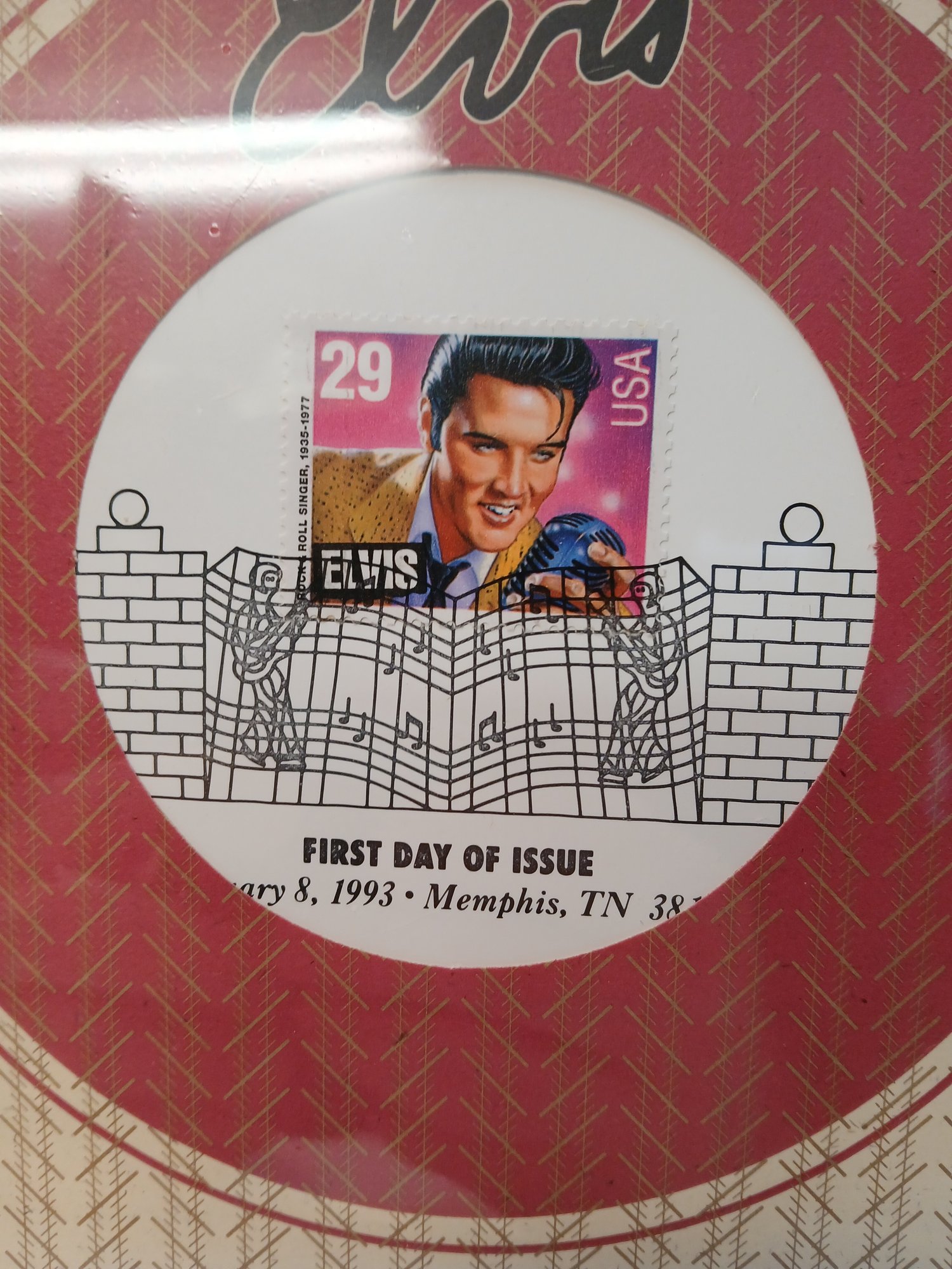 new old stock legends of american music, elvis 29 cent stamp, first day issue, matted, sealed