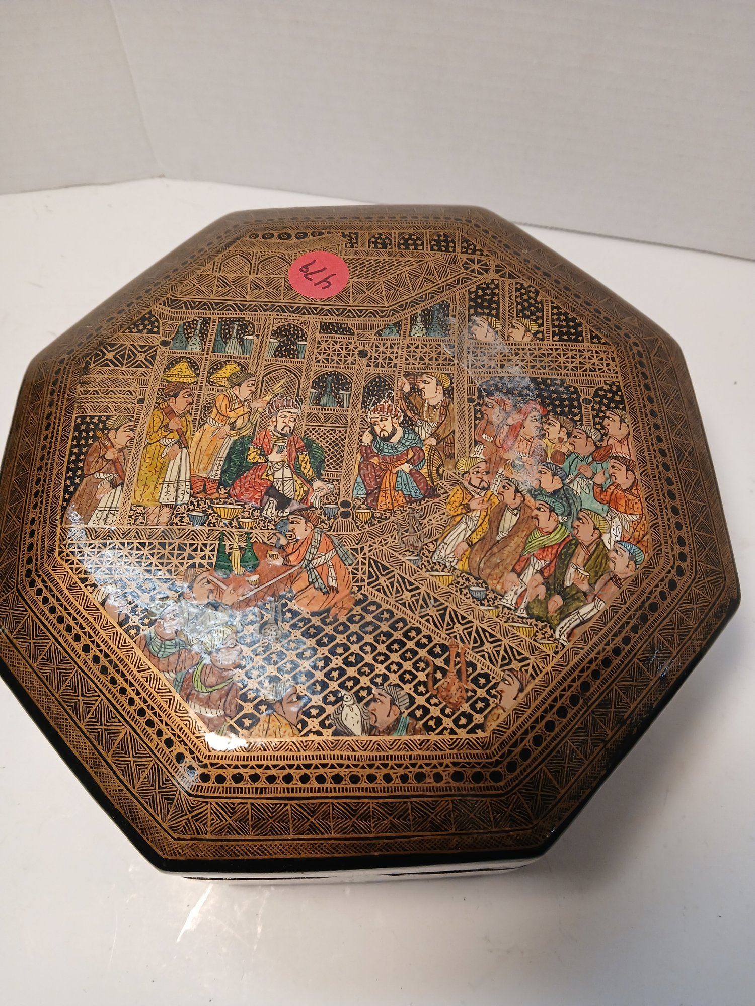 handmade, hand painted, box with lid, H.M. sadiq. made in kashmir, see pics