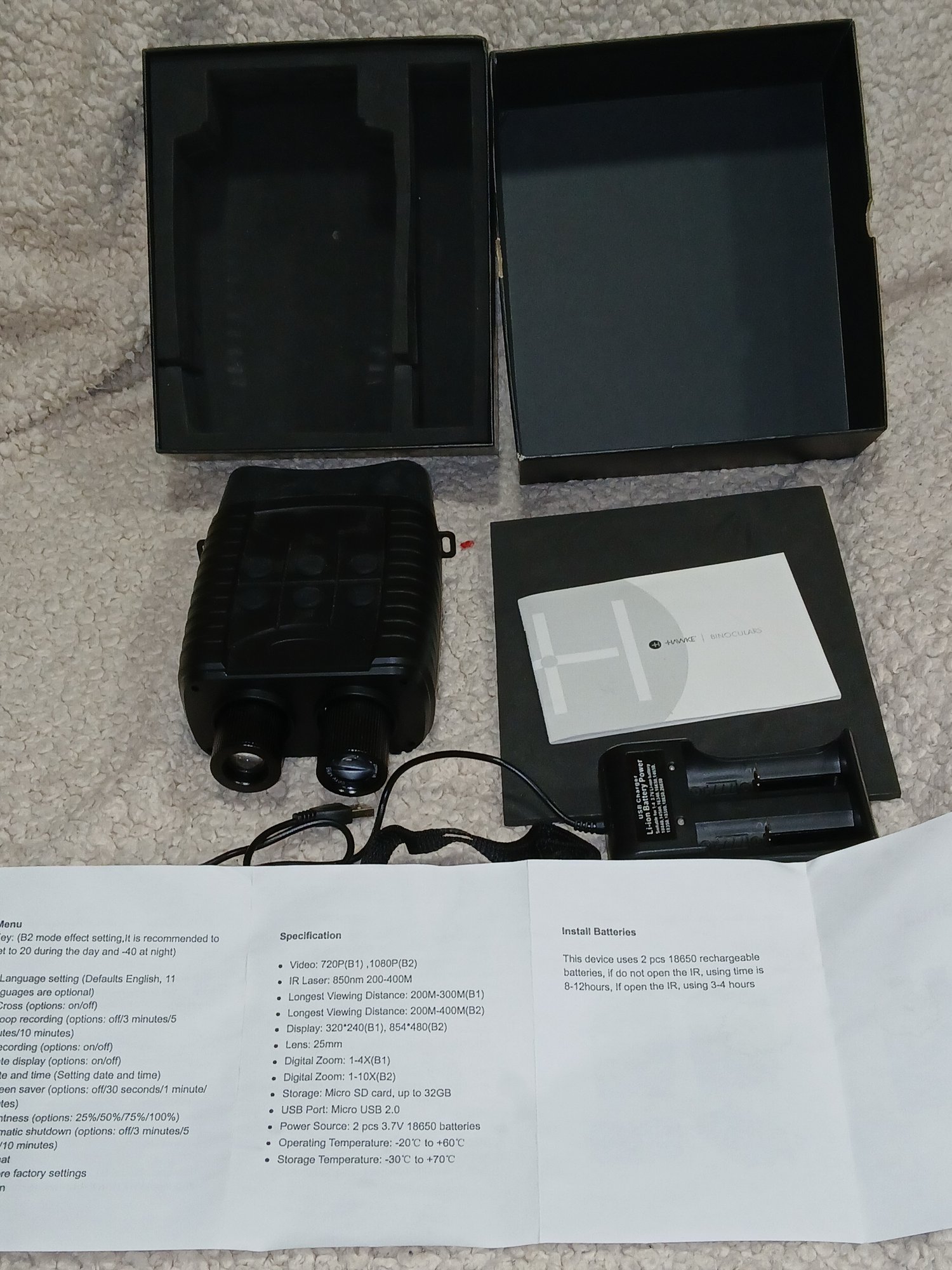 Hawke Night Vision Binoculars 720 P-1080-P 4x,10x USB Micro SD up to 32gb in orig box
