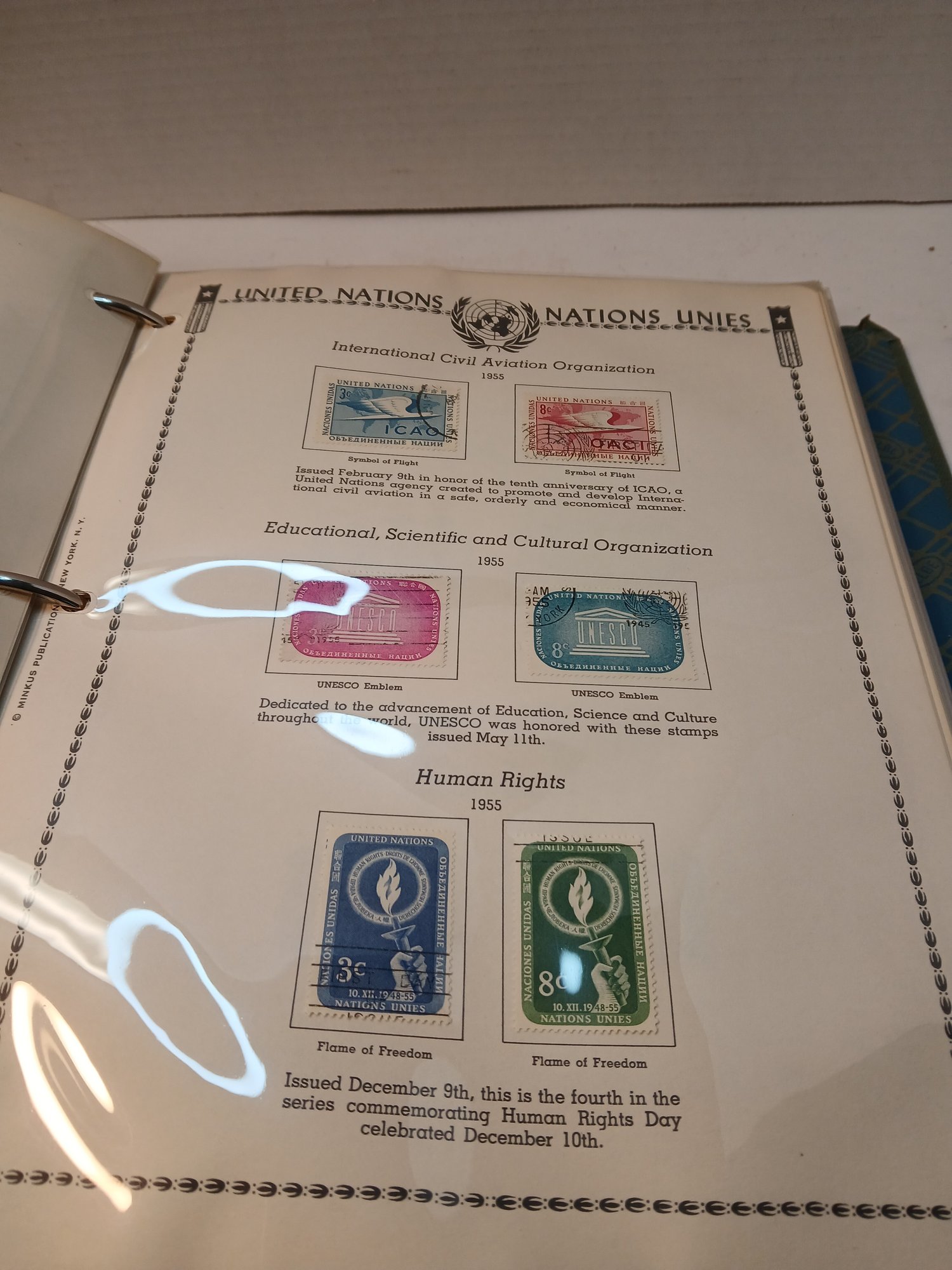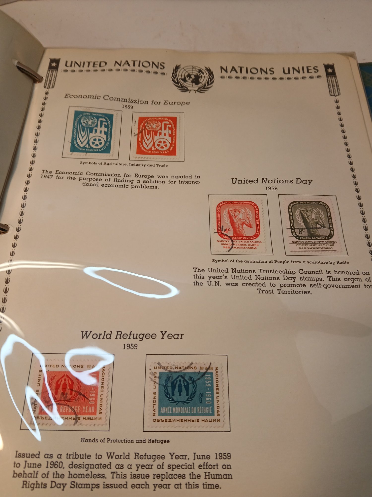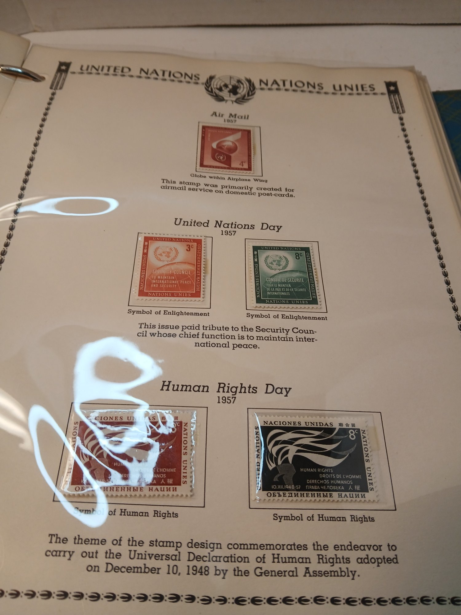 Large Binder united nations stamp album, air mail, first day issues 1951-1959